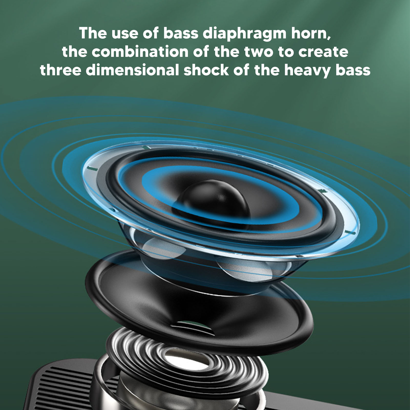 1、Anti Slip: Anti slip and anti scratch, suitable for a variety of environments, the bottom of the silicone anti slip, to prevent the surging bass vibration of the second noise. 2、LED Display: The mini Bluetooth speaker has an LCD LED display, which is clear and bright and easy to view. 3、Heavy Bass: The bass diaphragm horn is used, and the combination of the two creates a three dimensional and shocking bass. 4、Multiple Playback Modes: Multiple playback modes, easy to connect. Not only Bluetooth connection, but also Memory Card playback. 5、Alarm Clock Function: Built in humanized alarm clock function, you can set two alarm clocks, every morning feel different warmth.