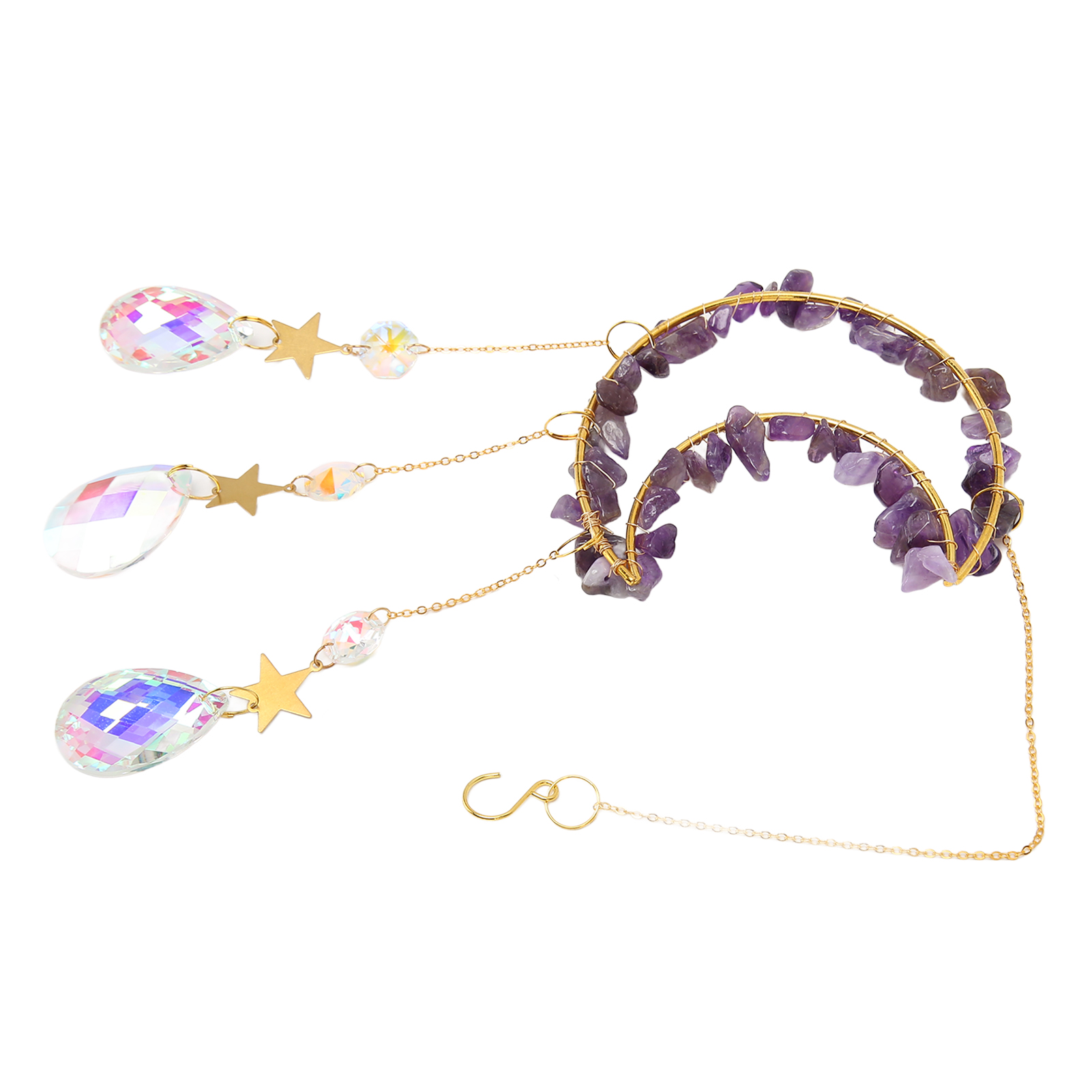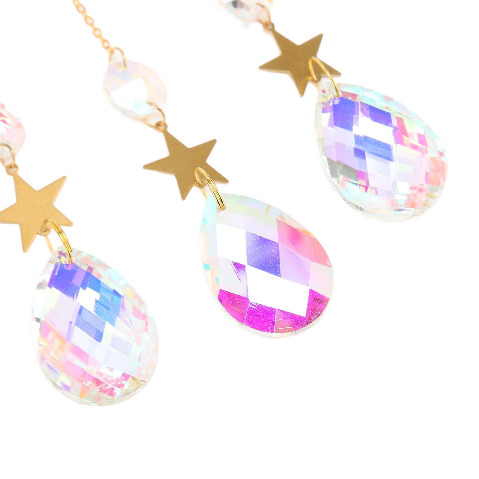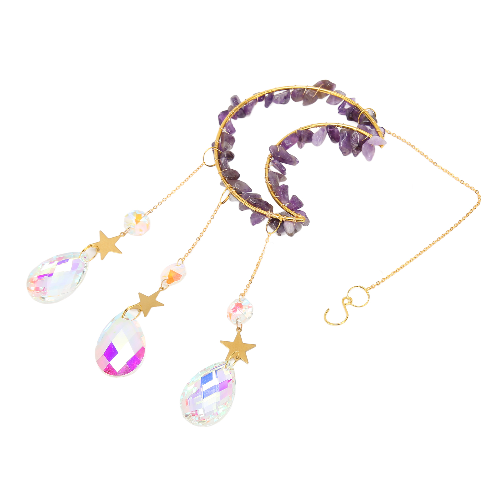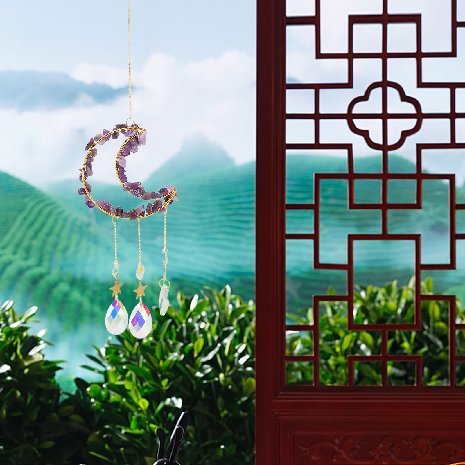 1、Catch Sunlight: Window ornament catches the sunlight when hung on the windows, creating dazzling rainbows around your room. 2、Beautiful: Crystals suncatcher can add beautiful shiny details to every corner around your house to attract and surprise your guests. 3、Decorative: Moon suncatcher is best decorated when in direct sunlight and is a sparkling decorative item for indoor and outdoor use. 4、Multi Scene Applicable: Moon suncatcher crystal prism is suitable for fitting home decoration, garden, window decoration and many other scenes. 5、Perfect Gift: Crystals suncatcher is a perfect gift for weddings, birthdays, anniversaries, Valentine's Day, Mother's Day, housewarming, Thanksgiving, Christmas.