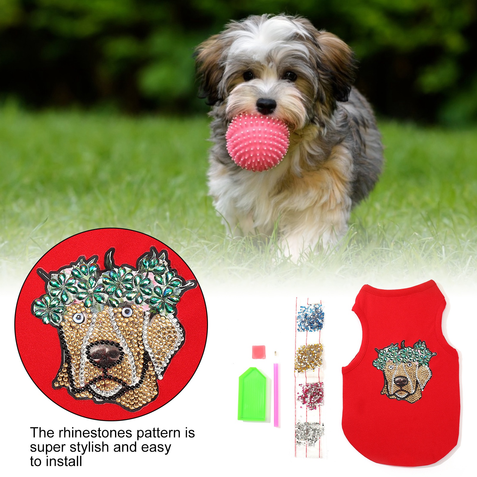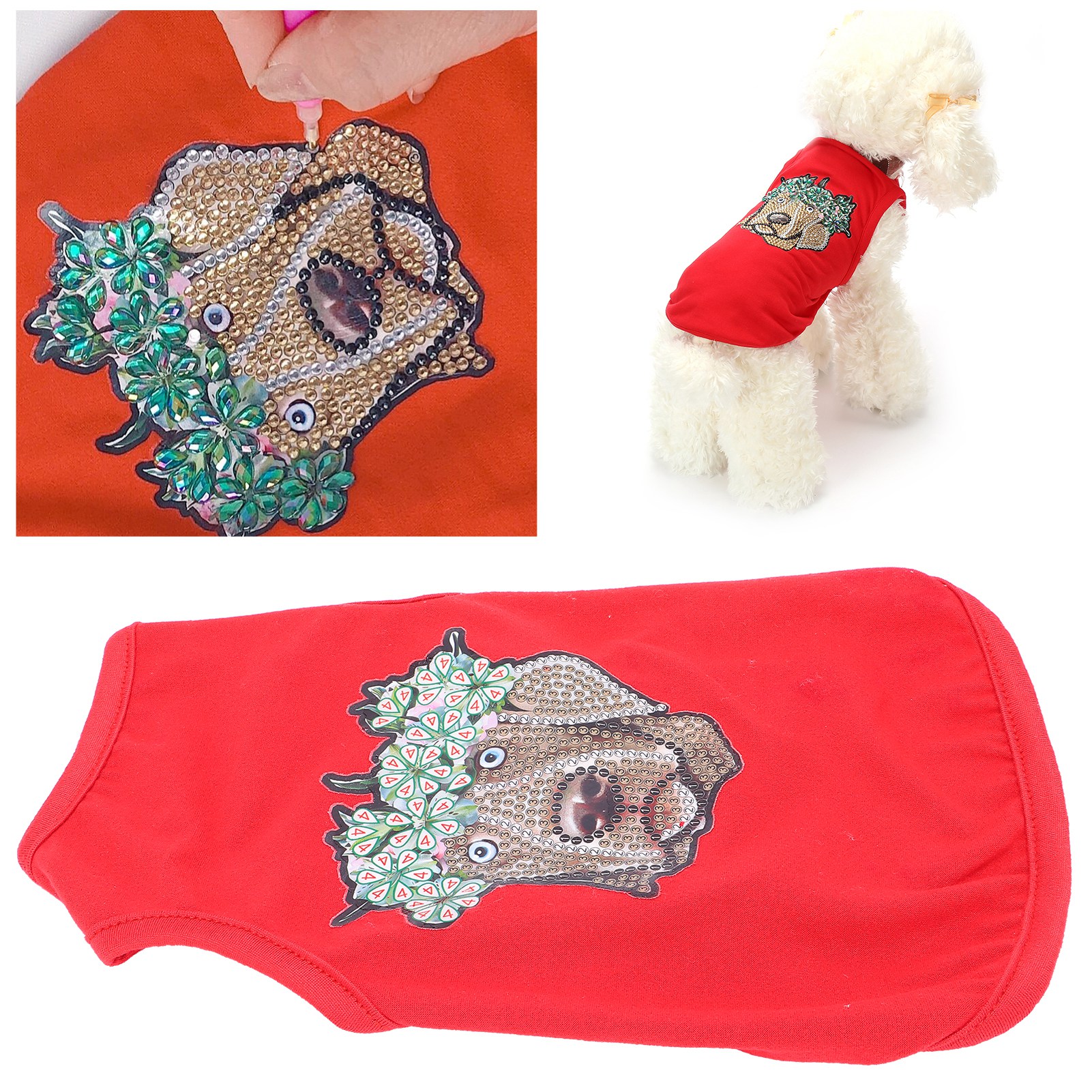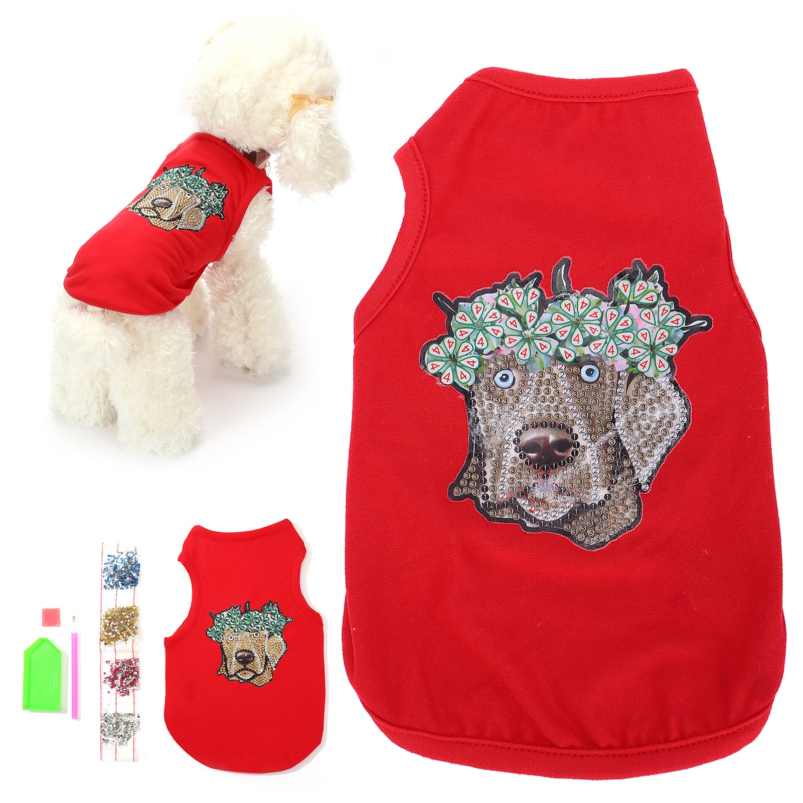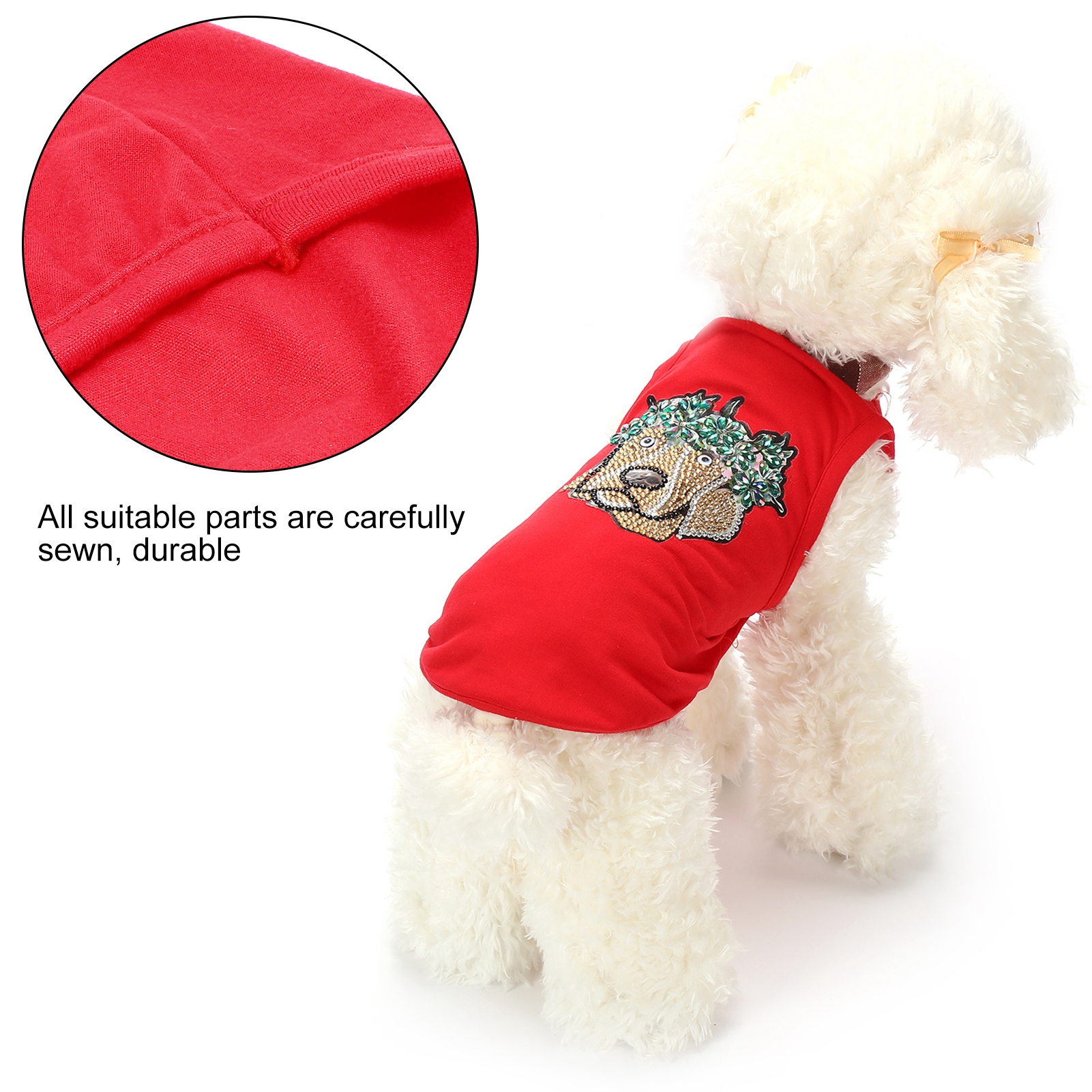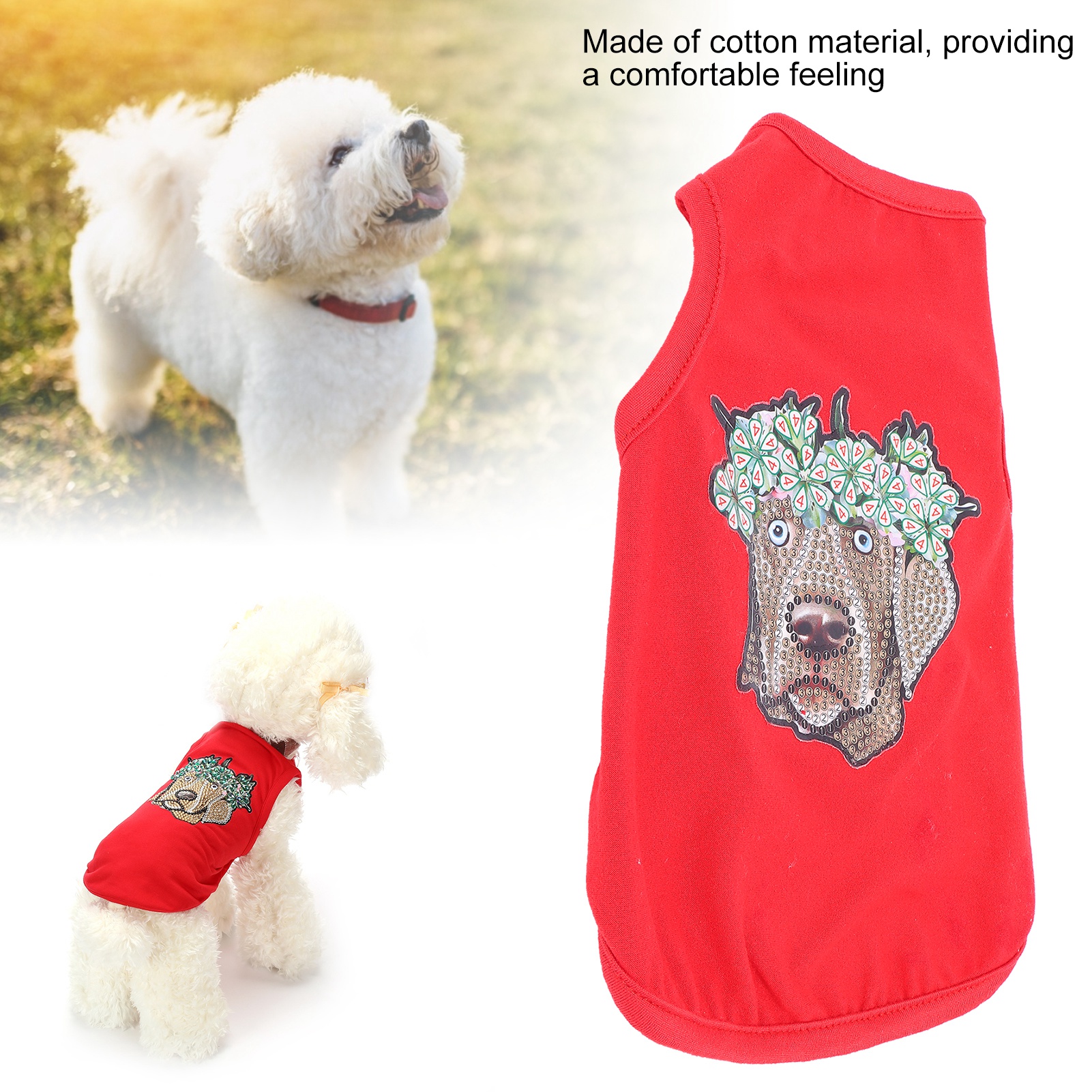 Pet Clothes Cute Soft Breathable Dog Shirt with Rhinestones for Puppies Pets Decoration ProtectionRed L