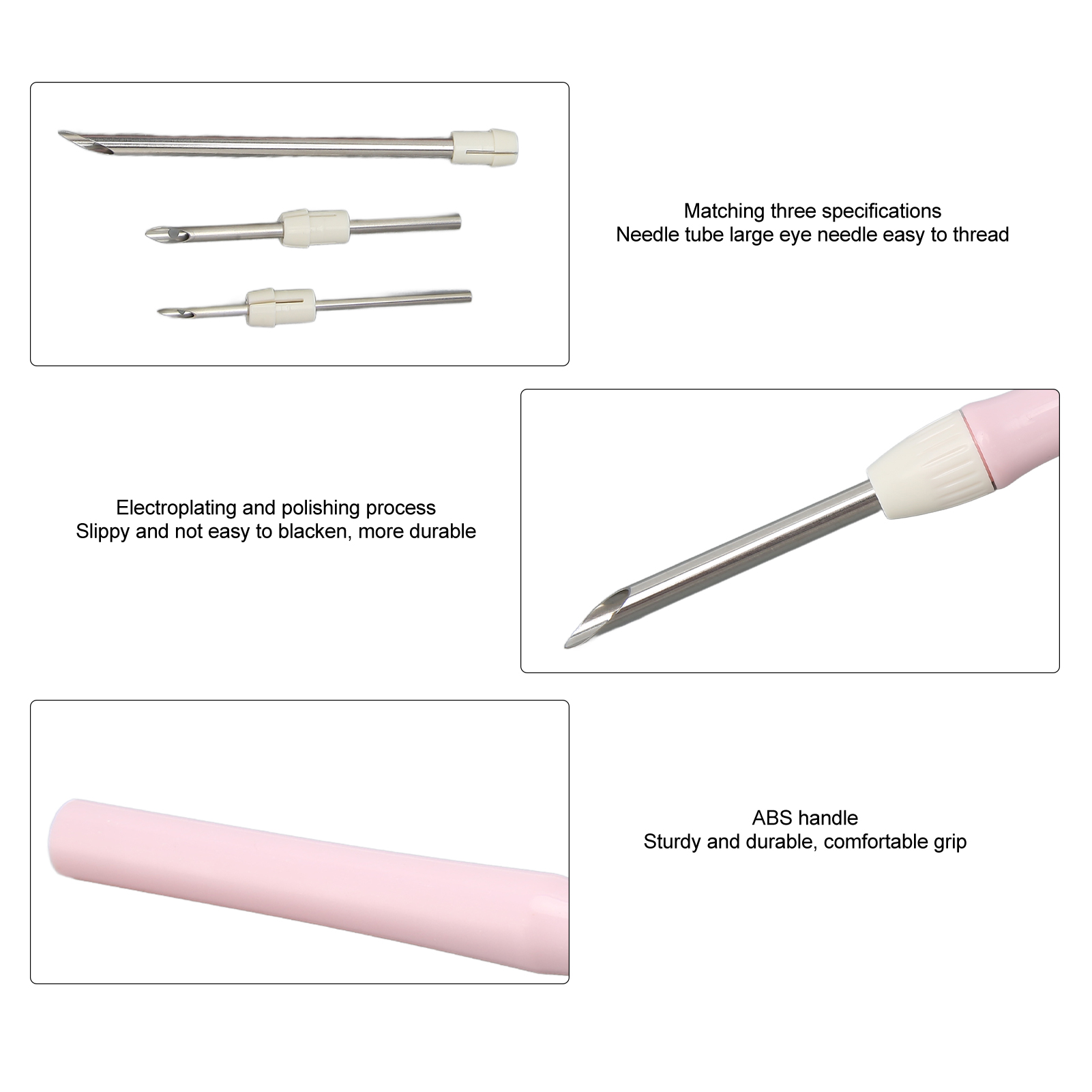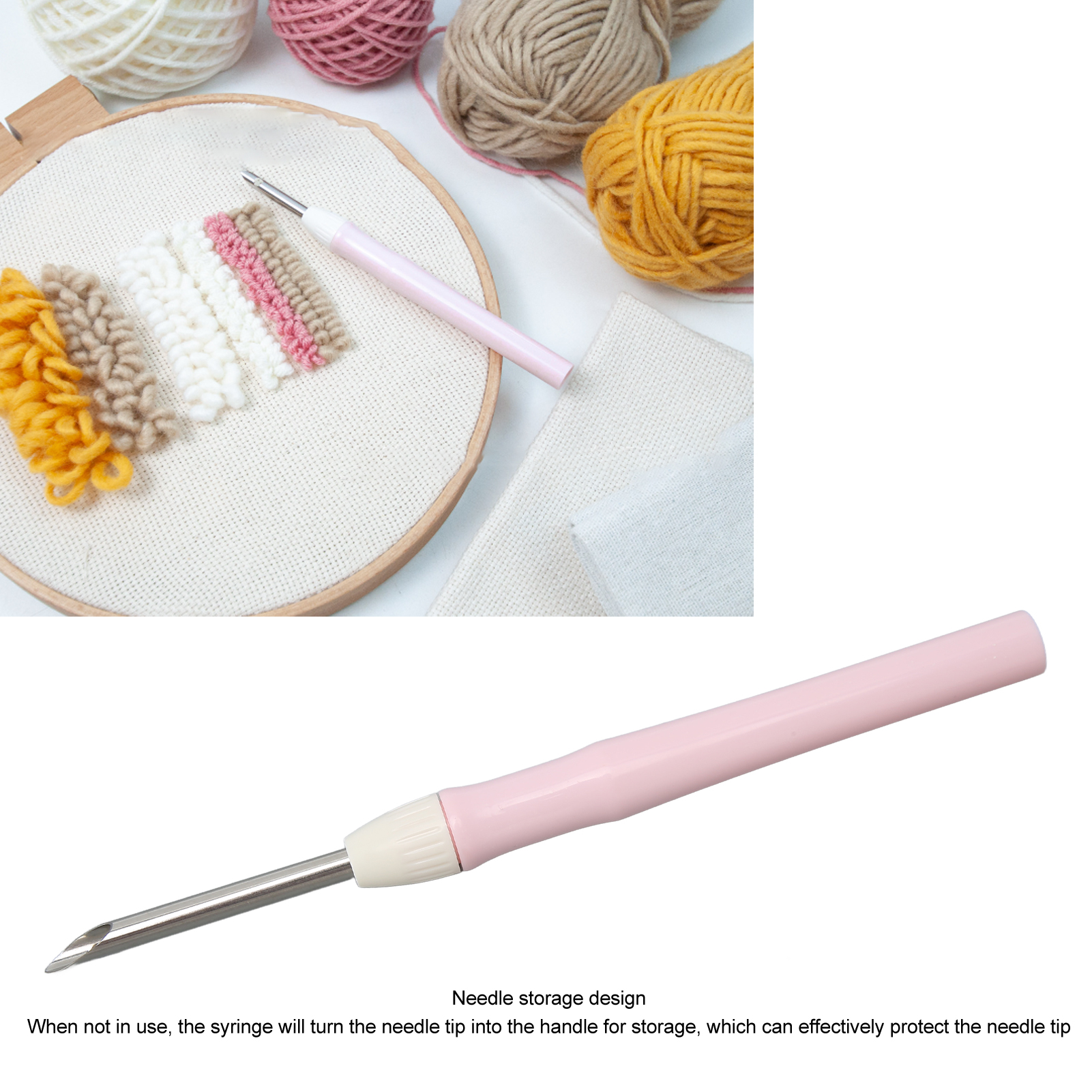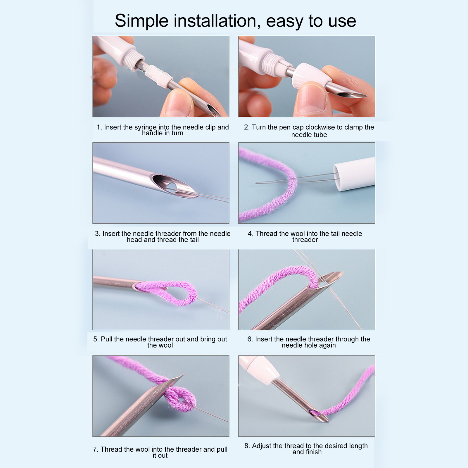 1、EASY TO HANDLE: Adjustable punch needle is lightweight and easy to operate, fine workmanship. Needle length can be adjusted at will, easily poke different wool effect. 2、NEEDLE STORAGE: Punch needle tool is designed with a storable needle tip, so when not in use, the needle will be turned into the handle for storage, which can effectively protect the needle tip. 3、WITH THREE SIZES: Punch needle matching three specifications, the needle tube eye needle easy to thread, electroplated polishing process, slippy and not easy to black, more durable. 4、PUNCH NEEDLE CLIP DESIGN: Embroidery punch needle uses a syringe clip fixed design, can better clamp the syringe, will not pinch the syringe, and will not appear loose. 5、COMFORTABLE GRIP: Punch needle is easy to use, thread the yarn from the punch needle to the top of the pen, then thread the yarn through the needle hole. ABS handle, strong and durable, comfortable grip.