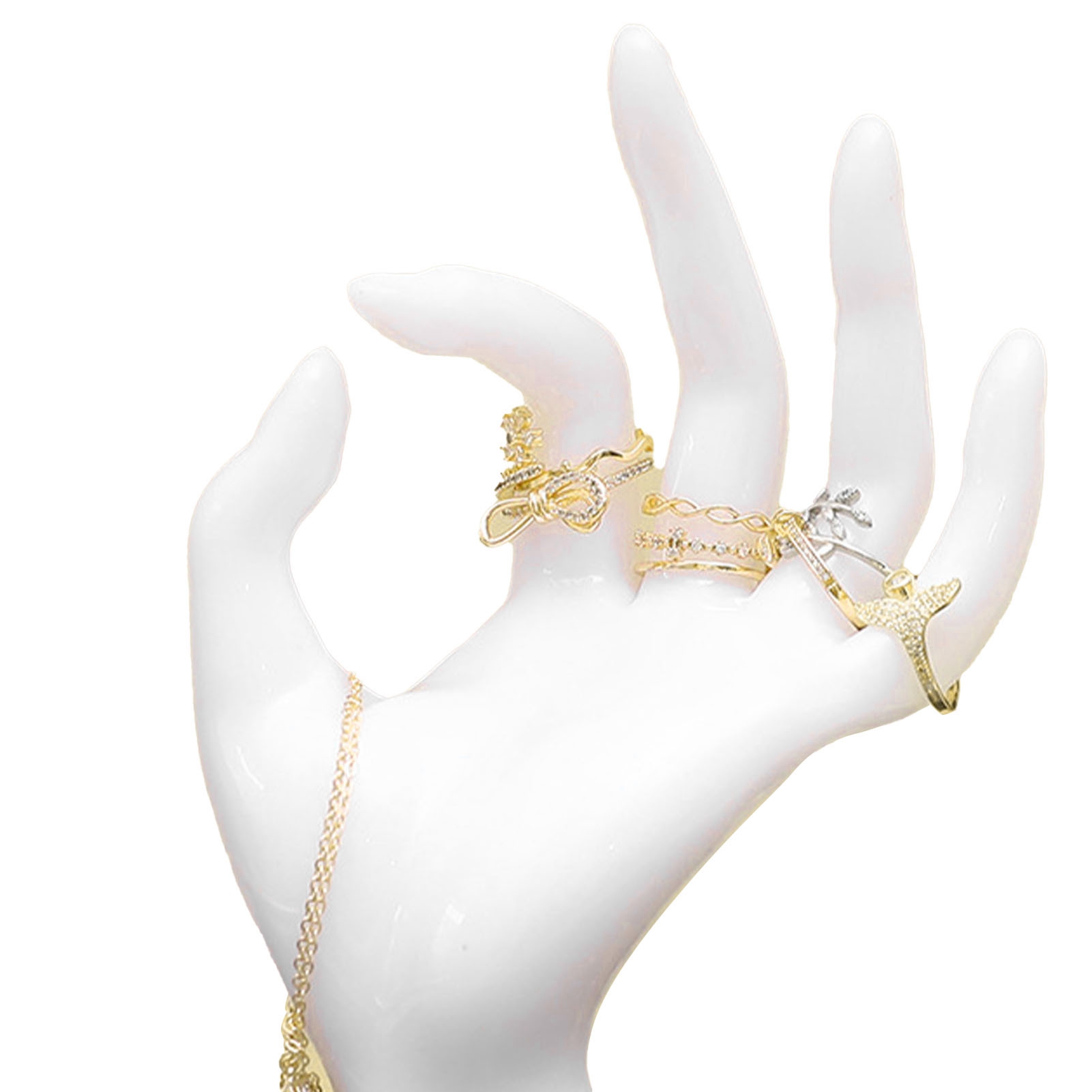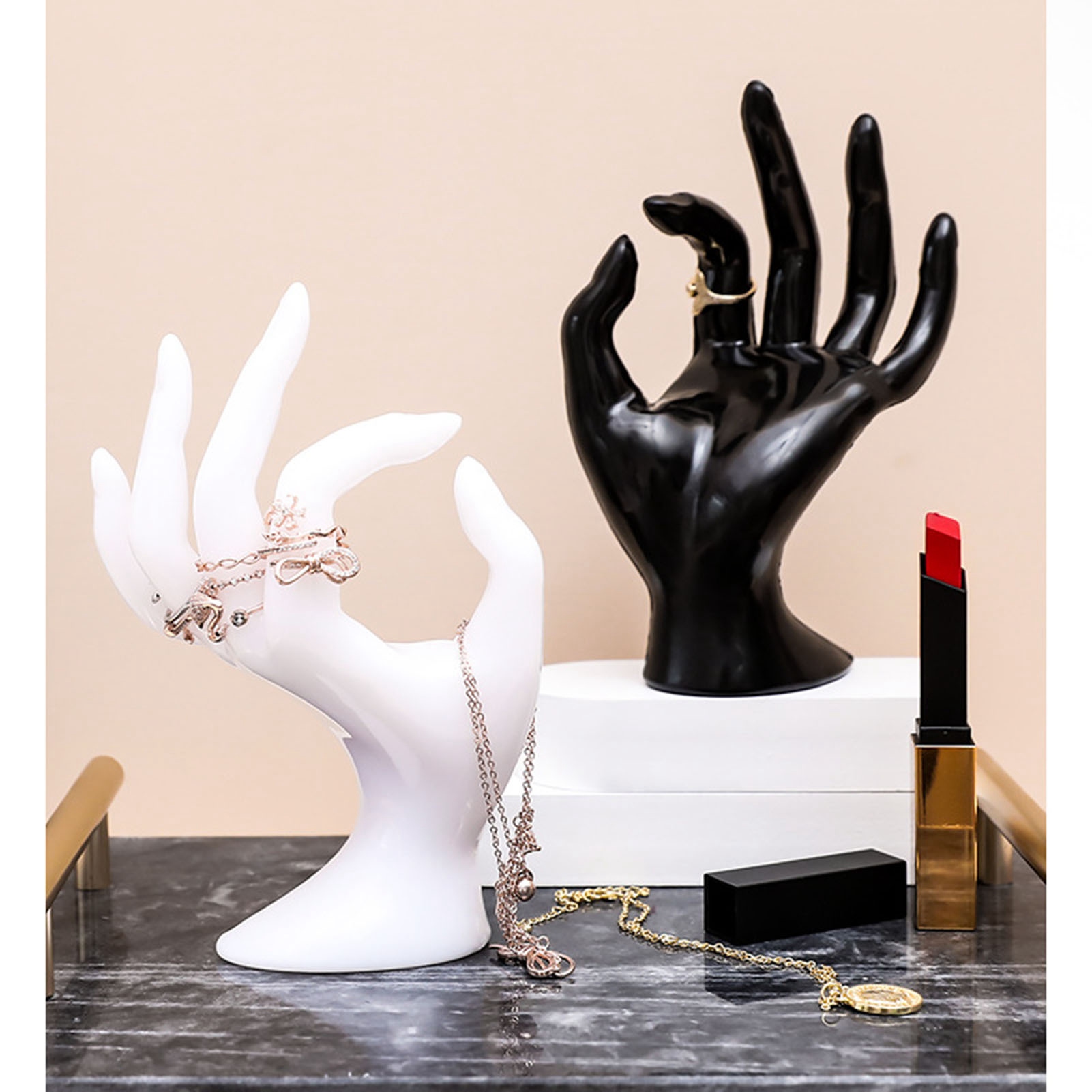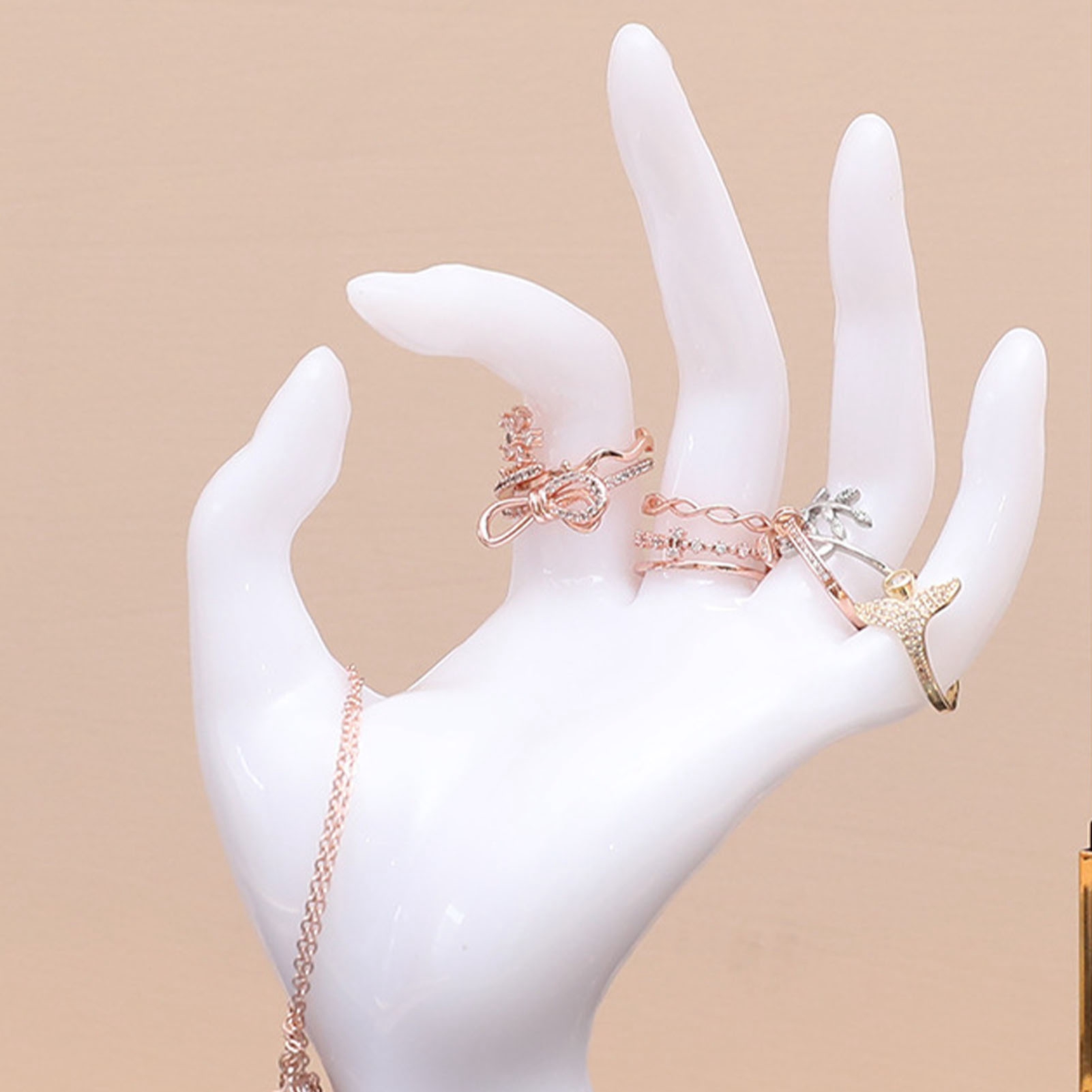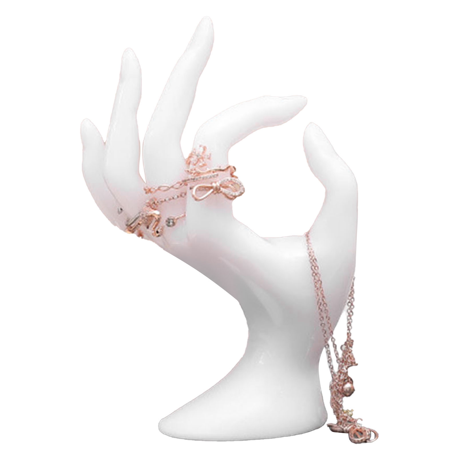 1、Wide Application:Rings hand holder is suitable for home, jewelry retail stores, jewelry exhibitions and watch retail stores, etc. 2、Elegant Posture: Bracelet display stand adopts OK shaped design, which is a very good media display of jewelry such as rings and bracelets, and can well interpret the beauty of the jewelry itself. 3、Multi Purpose: Cute rings holder can not only be used to display and store jewelry, but also be used as home decoration ornaments, which are beautiful and practical. 4、Styrene Resin: Jewelery display stand is made of styrene resin, which is environment friendly, odorless, and will not affect your life and accessories. 5、Easy to Clean: Rings display stand is easy to clean, just use a small amount of soap and wet cloth, and then wipe it.