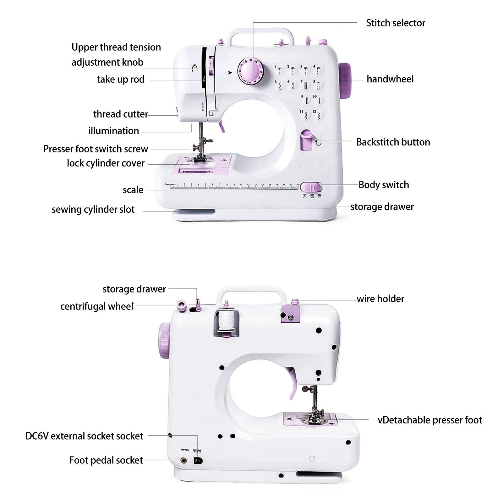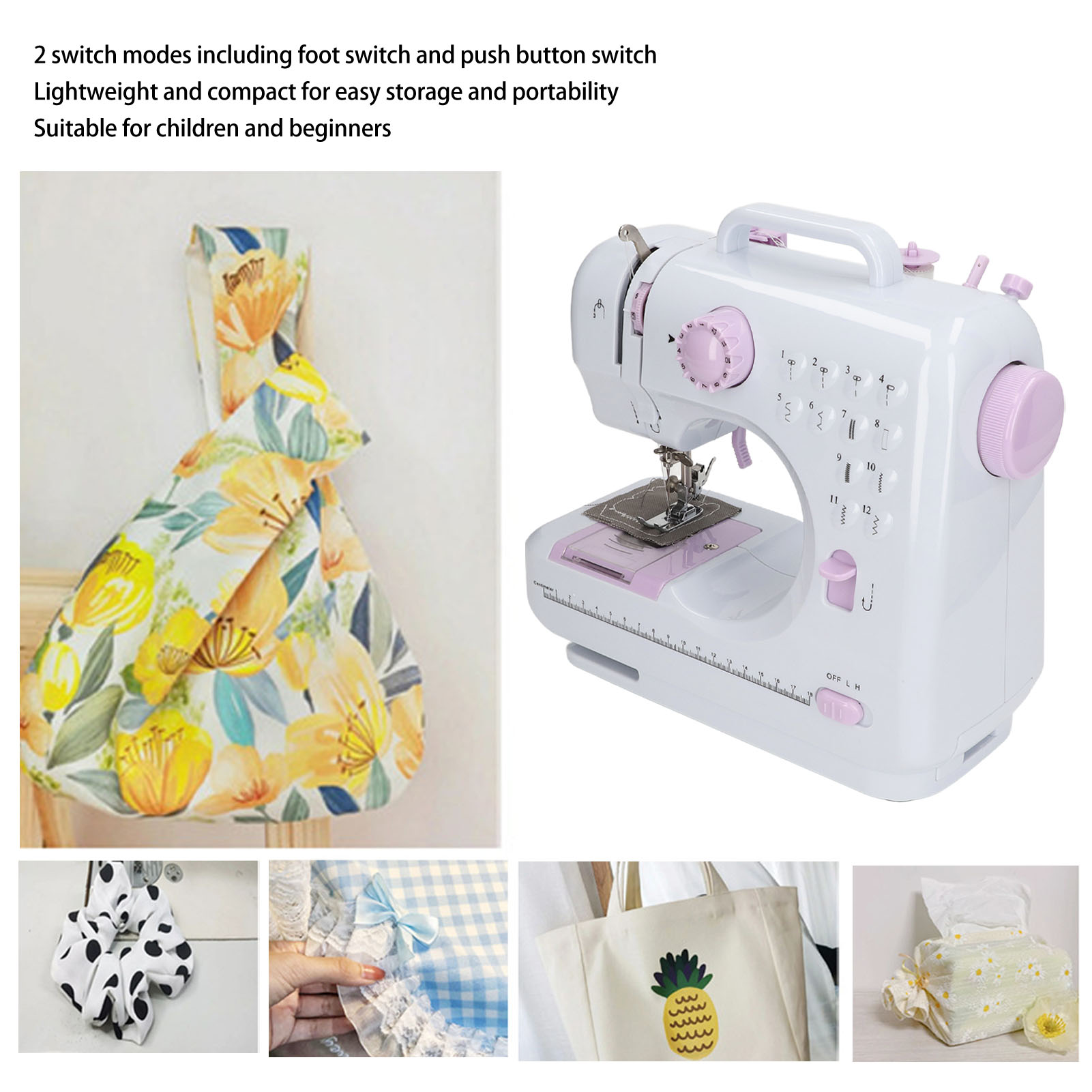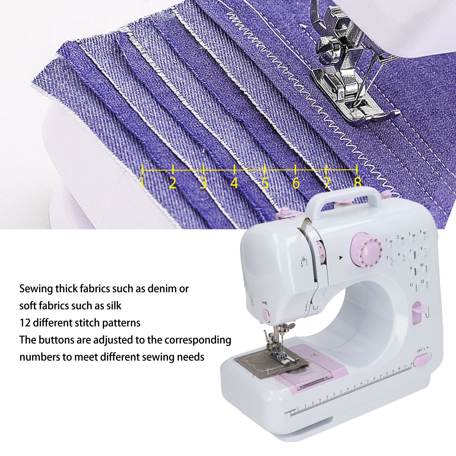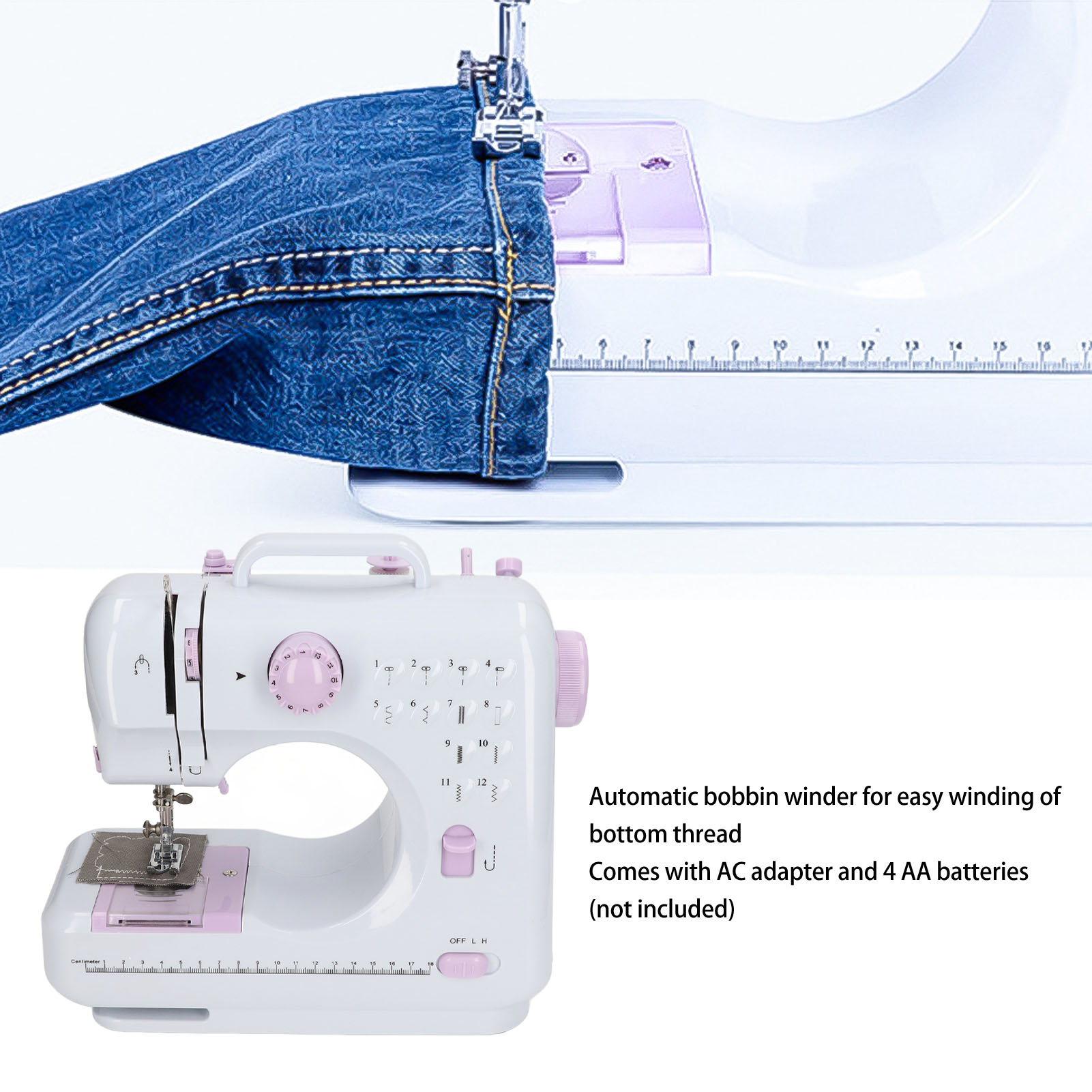 1、Convenient and Practical: The sewing machine is very easy to use, you can sew thick fabrics like denim or soft fabrics like silk 2、12 Stitch Patterns: The embroidery machine has 12 different stitch patterns, including straight stitches, etc., just adjust the buttons to the corresponding numbers to meet different sewing needs 3、Automatic Winder: The small sewing machine has an automatic winder, which is convenient for winding the bottom thread, and more special functions can be realized by changing the presser foot 4、Dual Power and Switch: The beginner sewing machine comes with AC adapter and 4 AA batteries (not included), 2 switch modes including foot switch and push button switch 5、Lightweight and Compact: The portable sewing machine is small, lightweight, easy to store and carry, suitable for children and beginners