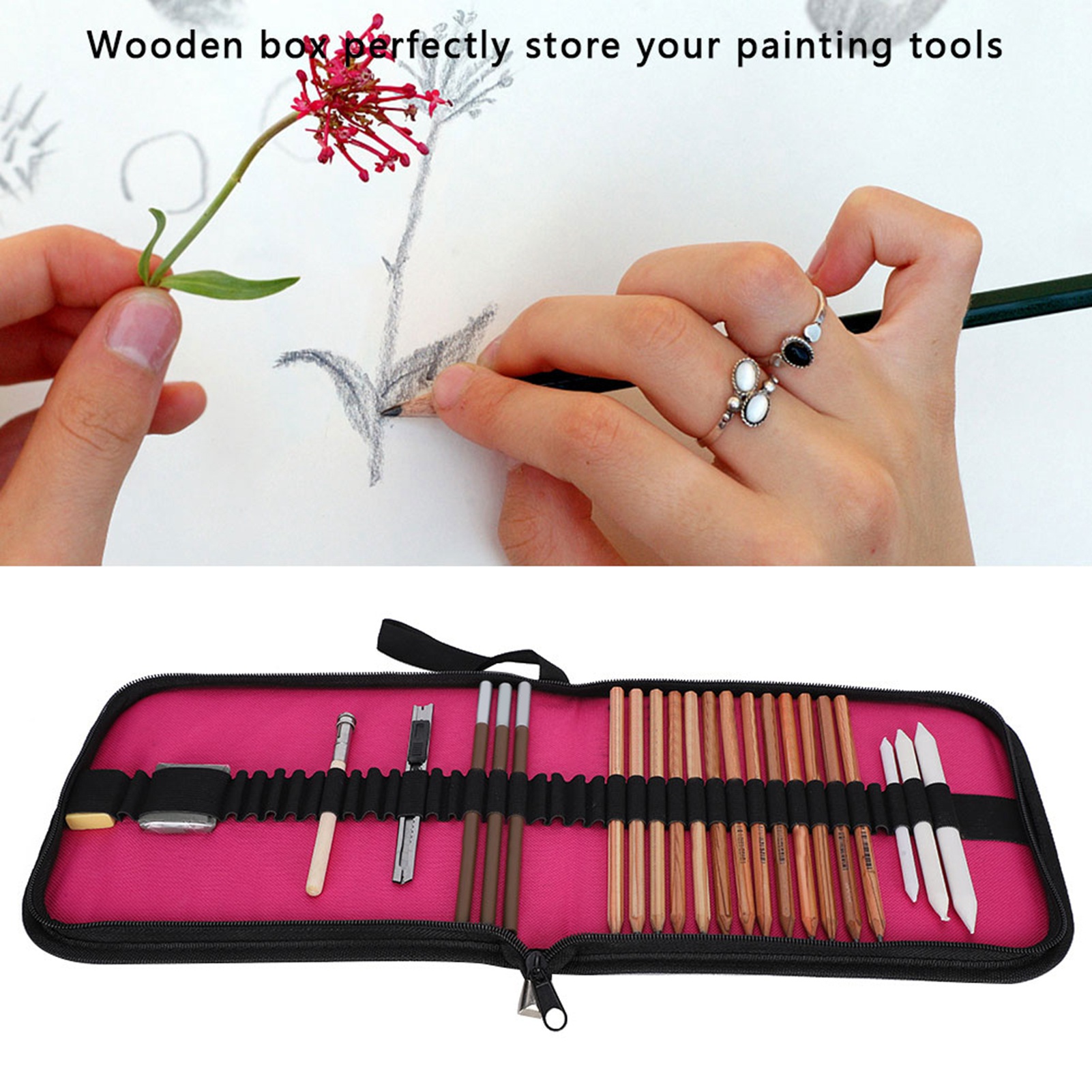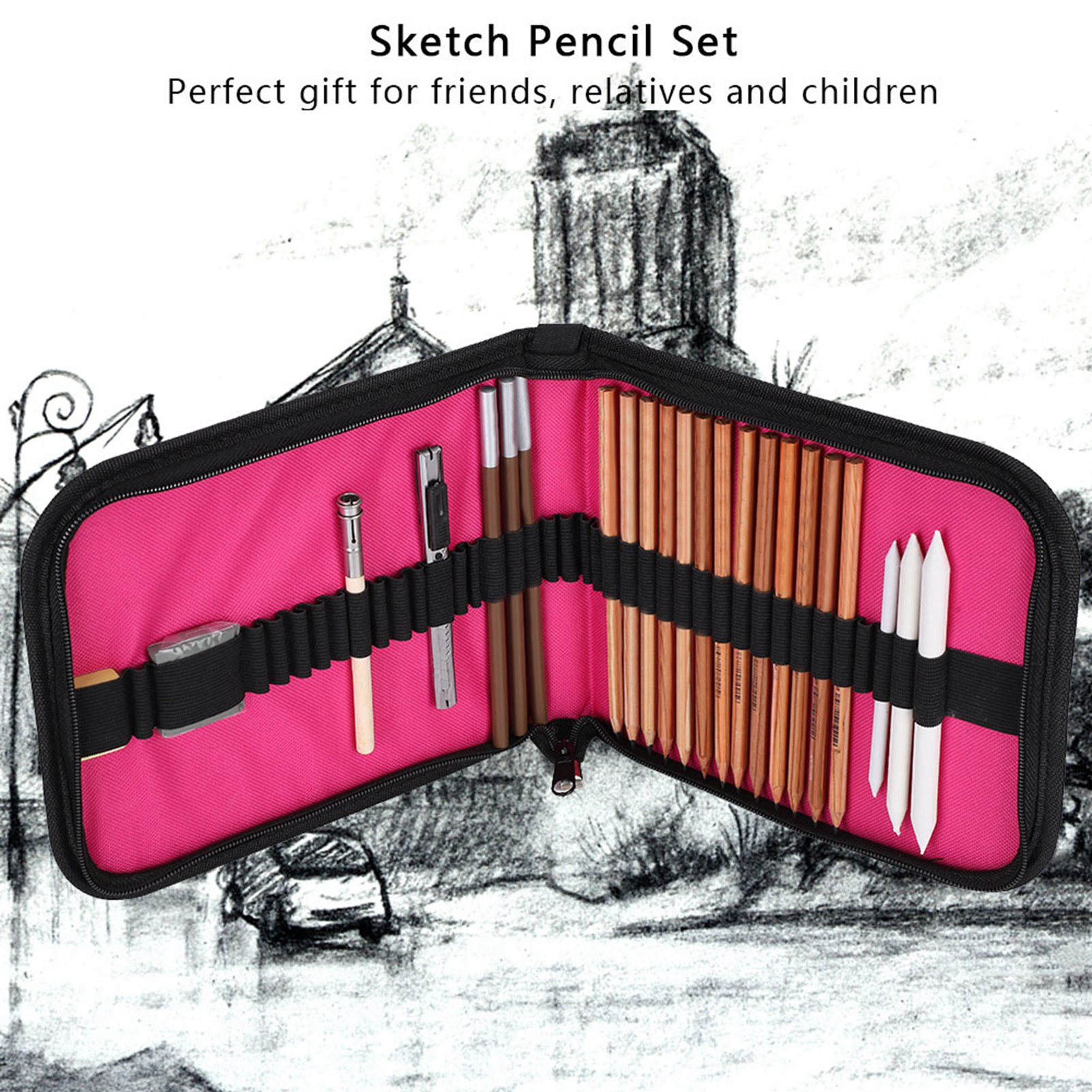 1、Made of logs, pencils are environmentally friendly and non‑toxic, harmless to the human body, no need to worry about lead poisoning. 2、The pencil lead is very strong, easy to write, cut and erase, good helper for sketching. 3、The pencil coating line is smoother, not easy to break, no need to iteratively sharpen the pencil. 4、Included 4B/3B/2B/8B/7B/6B/5B/B/HB/2H pencils, each pencil has a corresponding model on the pen body, which can be clearly distinguished. 5、Lightweight and portable. The drawing and sketching kit can be easily put in your schoolbag or carried directly, and you can carry it anywhere. 6、Suitable for all types of people, whether you are an art lover, college student, painting beginner or professional painter, the sketch pencil set can meet your painting equipment requirements.