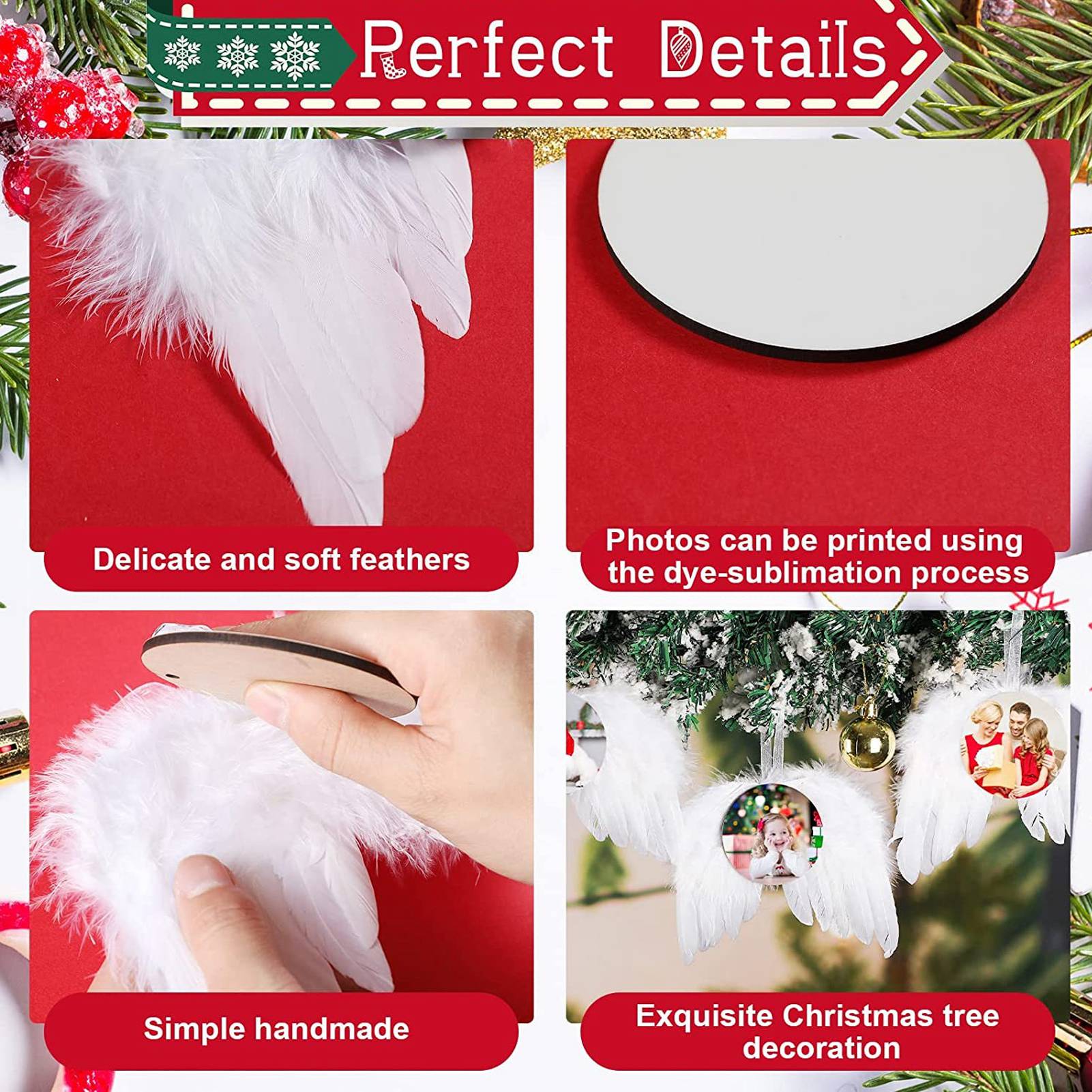 1、Premium Materials: Mainly made of density board, durable, not easy to break or deformation, feathers made of fiber. 2、Soft and Comfortable: Using sophisticated production techniques, the white feather decoration feels soft and comfortable. 3、DIY Fun: Feather and sublimate plate ornaments are separate, so you can first print your favorite photos on one side of the wooden ornaments and then attach them to the feathers with enough glue. 4、Uses: Each feather handicraft has a rope that you can easily be hung where you want to decorate, making your home decoration more attractive. 5、Applicable Scene: Suitable for Valentine's Day, Christmas, Mother's Day, Thanksgiving, engagement, wedding, birthday and other holiday decorations.