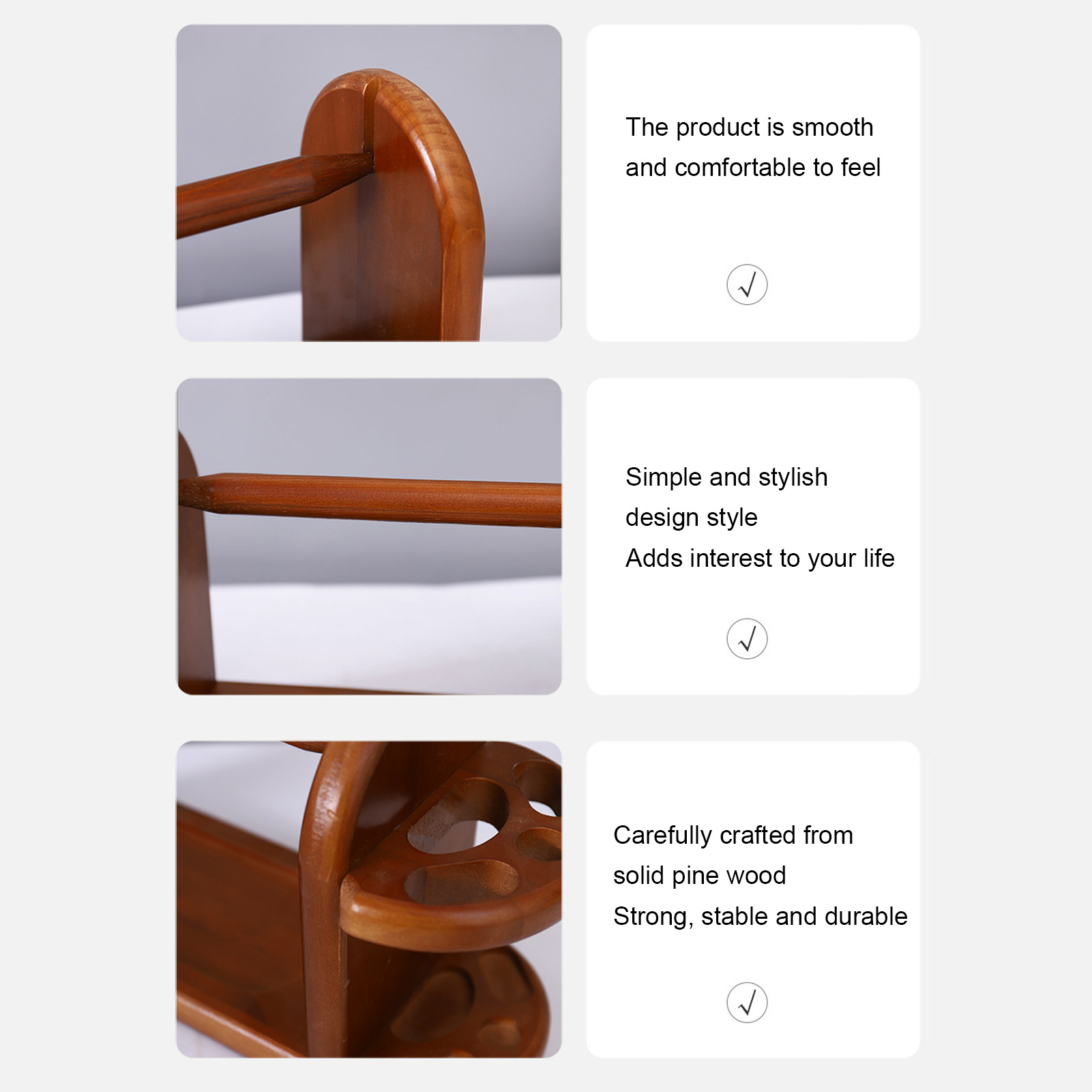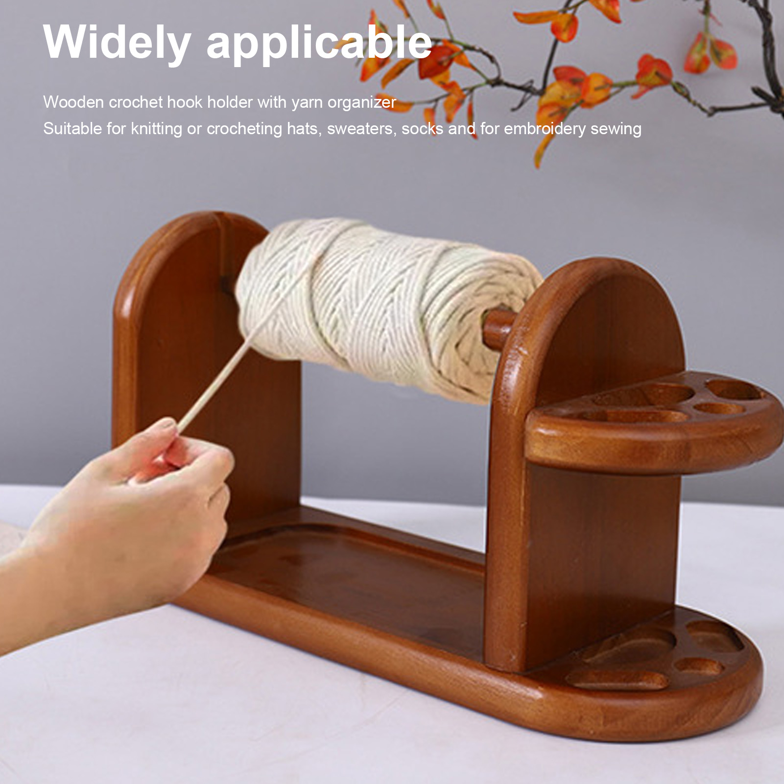 1、STRONG AND STABLE: Wooden yarn ball holder is carefully crafted from solid pine wood, which is strong, stable and durable. Ensures even yarn shedding without knots. 2、ANTI TIPPING: The wooden yarn holder is made from spindles mounted in a horizontal position, and the base and side panels keep the yarn upright and prevent tipping. 3、WIDELY APPLICABLE: Wooden crochet hook holder with thread organizer for knitting or crocheting hats, sweaters, socks, and embroidery sewing. 4、EASY TO INSTALL: Attach the base and side panels with a screwdriver and screws, then insert the spindle into the grooves on the base and side panels. Horizontal yarn and thread chuck complete. 5、IDEAL PRESENT: The wooden yarn holder would make a great present for those who enjoy sewing, knitting and crocheting.