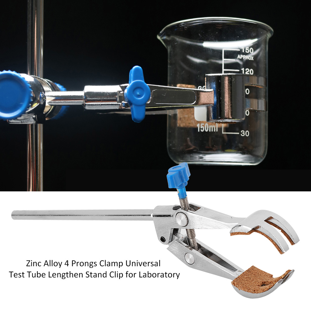 1、The clip can be adjusted at a straight distance, and can hold items of different specifications. 2、Lengthen design, more practical, bringing you much convenience when in use. 3、Manufactured with the highest quality zinc alloy material for maximum durability. 4、Surface plating treatment, this four prong clamp is anti‑rust and anti‑corrosion. 5、Especially designed for experiment, stable performance and high reliability.