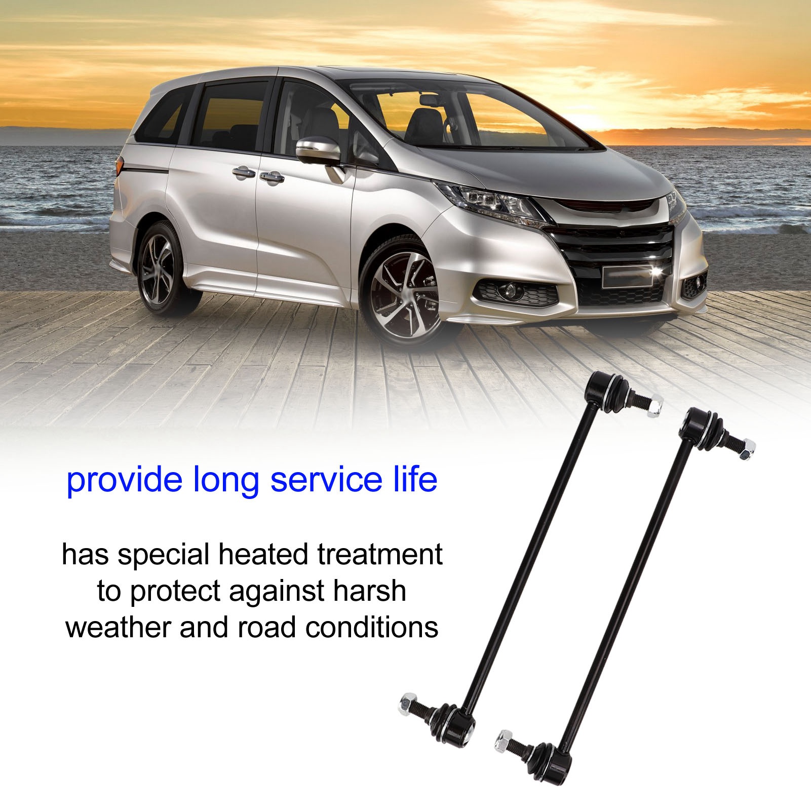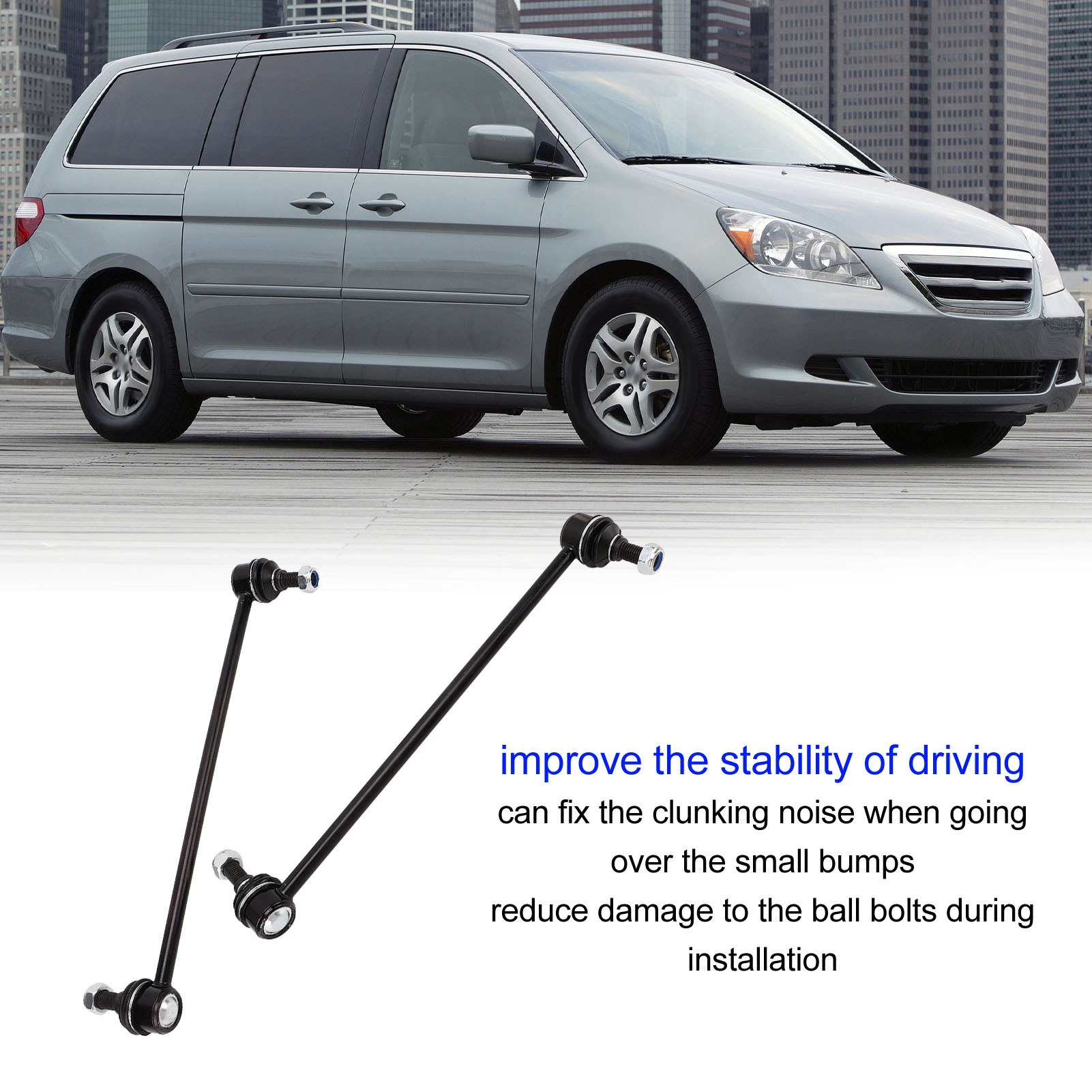 1、OE Number: The referencing OE number of this sway bar kit is K750304, which is molded and designed depend on the original data, and maintaining the original car model. 2、Fitment: The front stabilizer bar link is a replacement for ODYSSEY 2005‑2017, please check the model and year of manufacturing before ordering. 3、Function: This sway bar link can fix the clunking noise when going over the small bumps, reduce damage to the ball bolts during installation, improve the stability of driving. 4、Necessity: When there's clunking sounds during turns and bumps, loose or misaligned steering wheel, poor handling, uneven tire wear, and visible damage in the suspension system, you need to replace it. 5、Features: The stabilizer has special heated treatment to protect against harsh weather and road conditions, which will provide long service life.