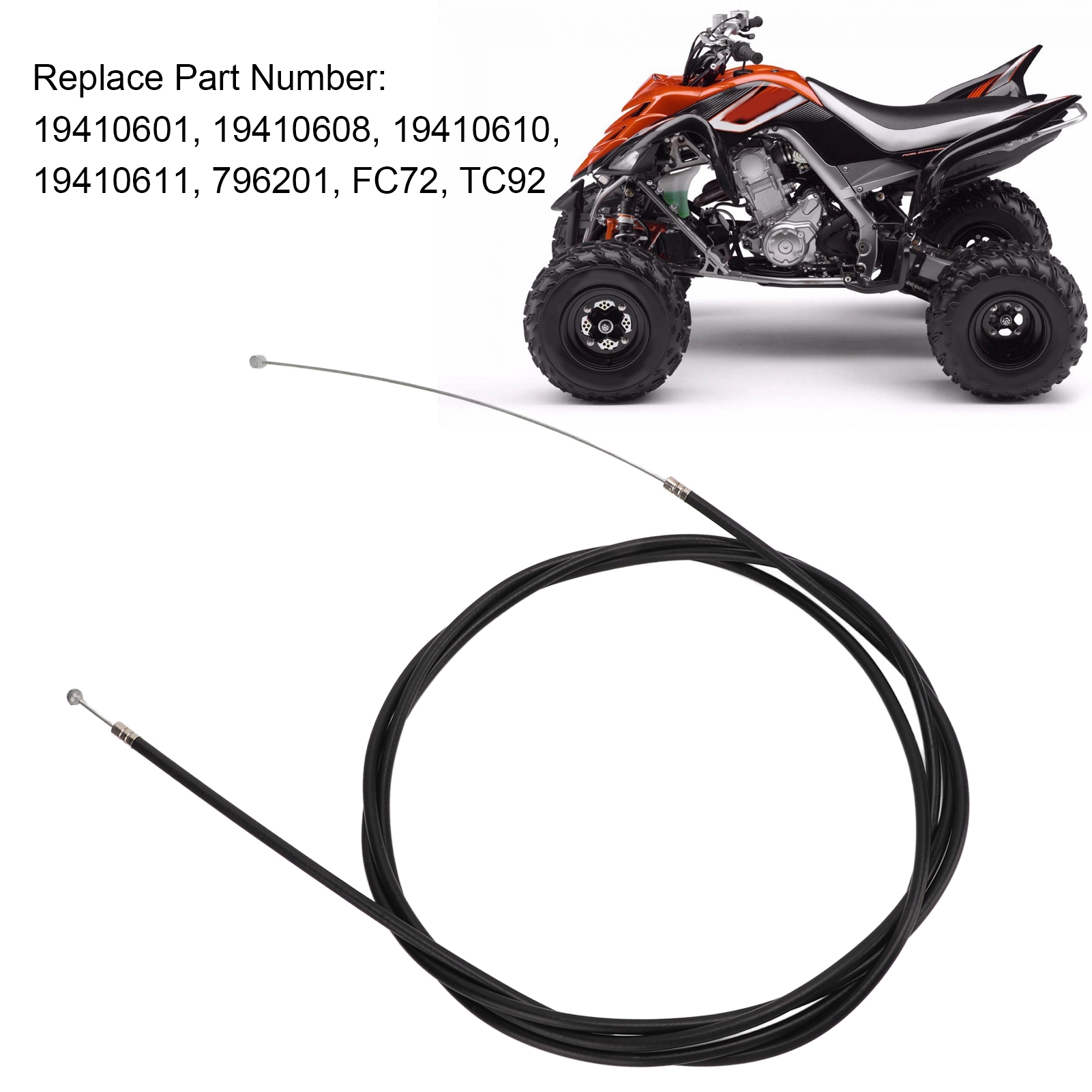 1、Universal Fitment: Accelerator cable universal fits for various go karts mini bikes atv models, has a long service time. 2、Replace Part Number: The part number of throttle control line is 19410601, 19410608, 19410610, 19410611, 796201, FC72, TC92. 3、High Quality Material: Throttle cable is made of high quality PVC material, high toughness, wear resistant, not easy to damage, durable. 4、Excellent Performance: Professional manufacturing, exquisite workmanship, high sensitivity, stable performance and high reliability. 5、Simple Installation: The installation is simple, direct replacement for the old or broken one, convenient for using, save your efforts.