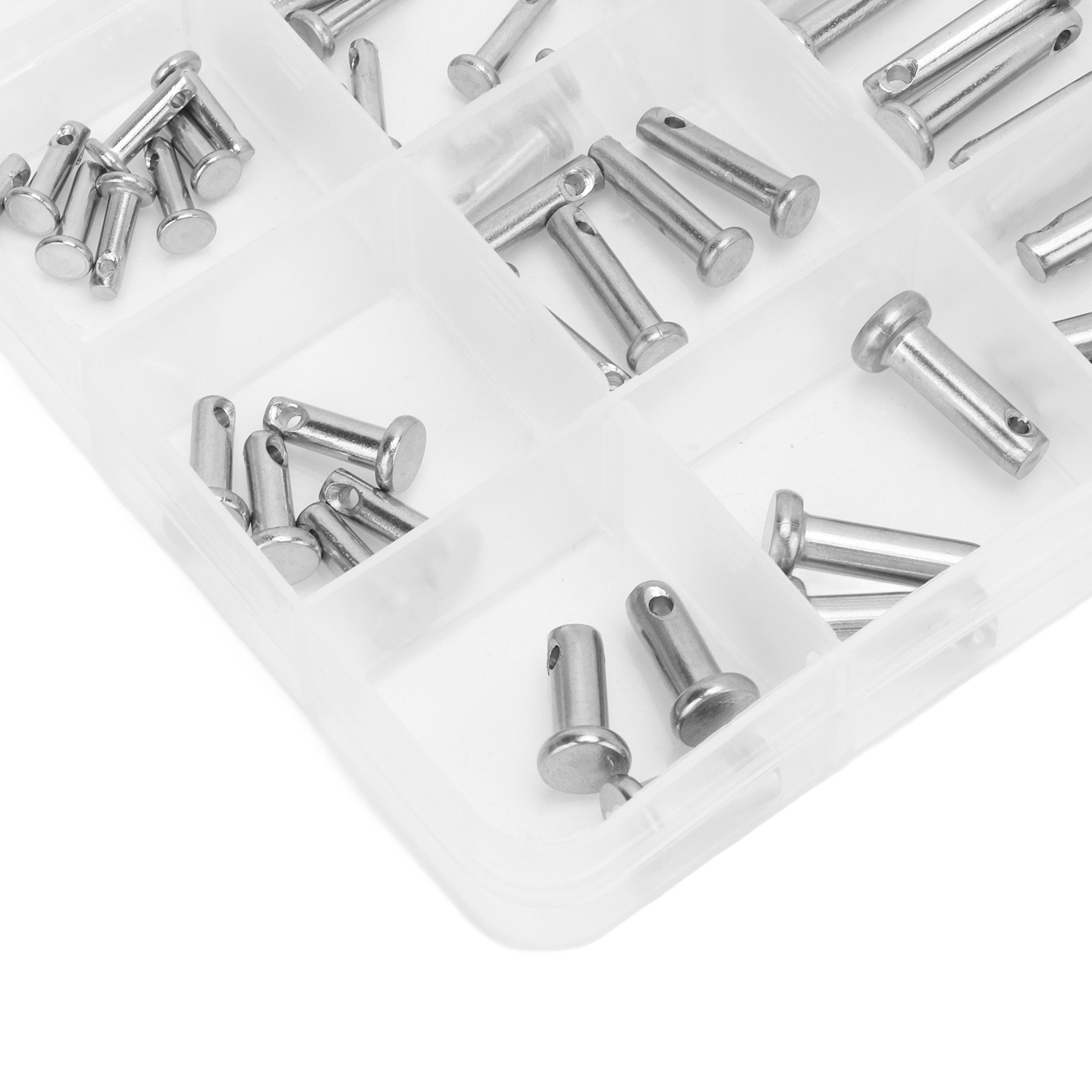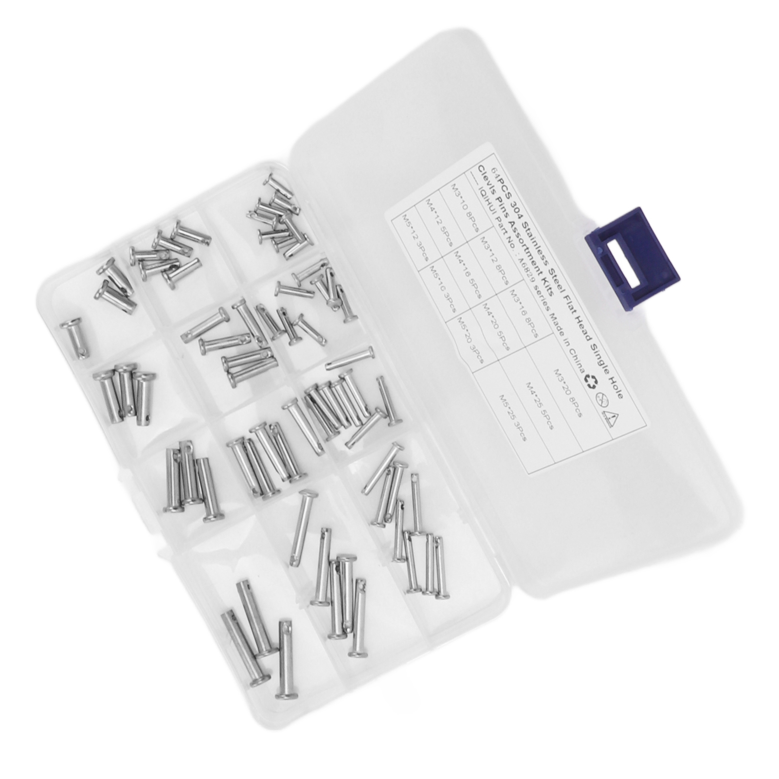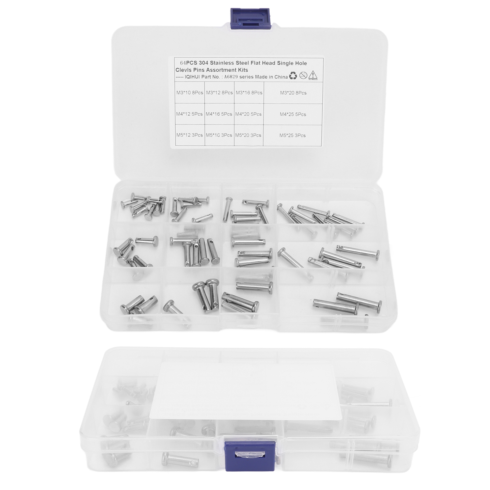 1、Plastic Box: Come with a plastic box, helped you match and find all the pins you need, and different sizes are placed separately to avoid confusion, more practical. 2、High Quality Material: Clevis pins are made of high quality stainless steel material, rustproof, high hardness, sturdy and durable, have a long service time. 3、Application: Stainless steel clevis pins mainly applied for the hinge of two parts, and then constitute a hinge connection, safe and reliable, not easy to break off. 4、Professional Design: Professional manufacturing, exquisite workmanship, T shape, flat head, single hole clevis pins with flexible positioning. 5、Easy Installation: Clevis pin assortment kit can be easily installed and disassembled even in narrow spaces, convenient for using, save your time and energy.