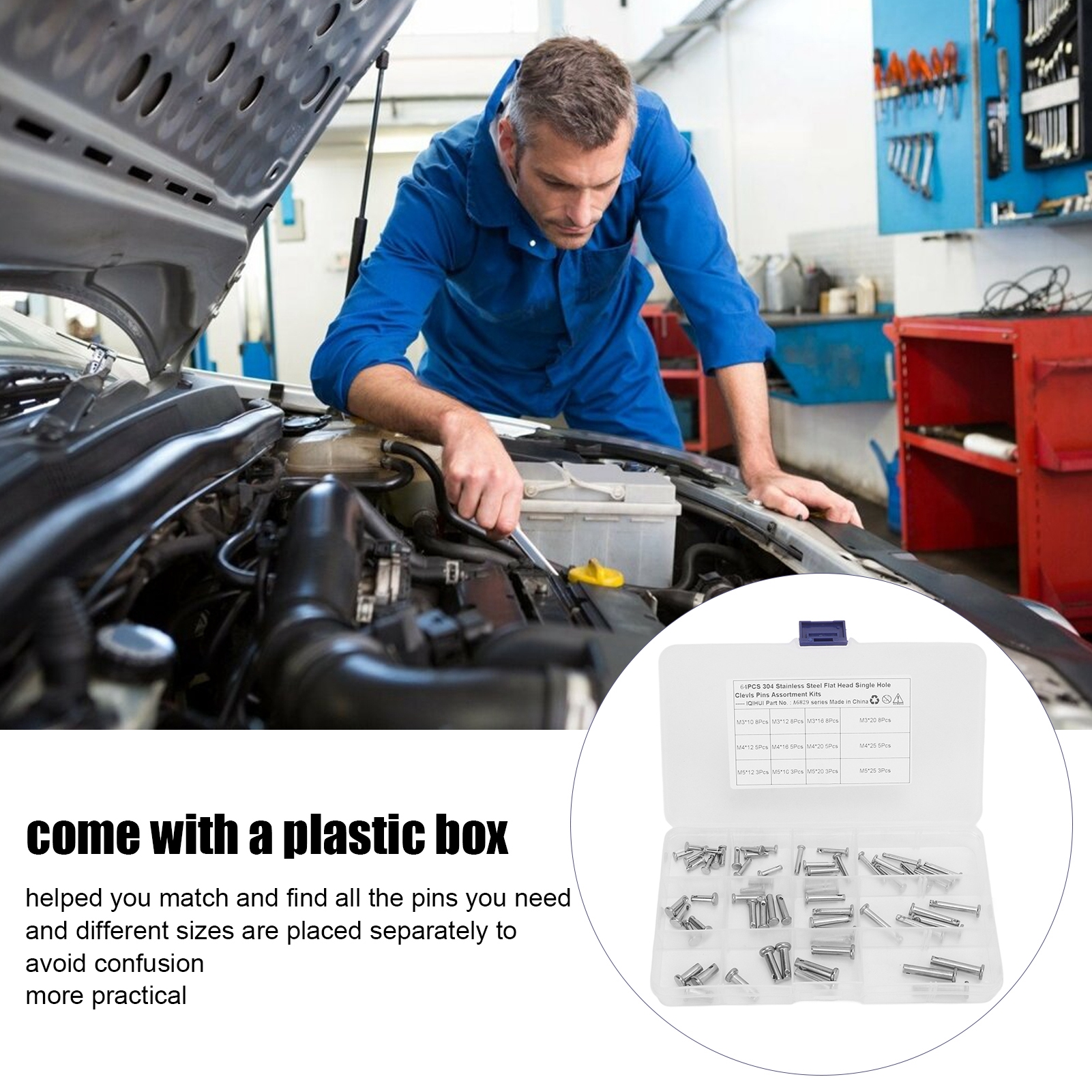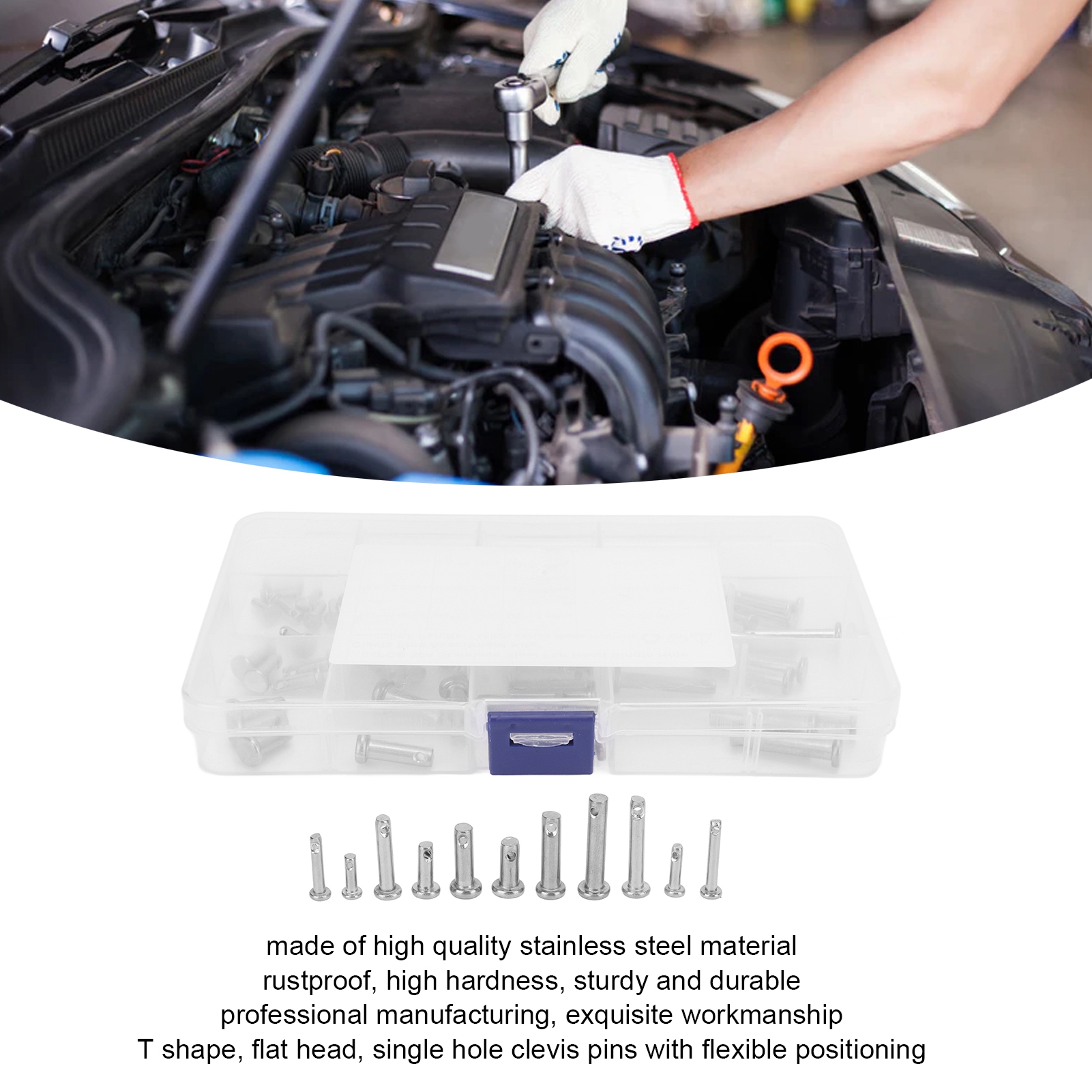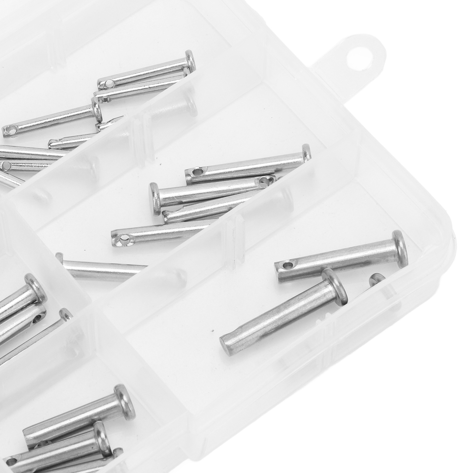 1、Plastic Box: Come with a plastic box, helped you match and find all the pins you need, and different sizes are placed separately to avoid confusion, more practical. 2、High Quality Material: Clevis pins are made of high quality stainless steel material, rustproof, high hardness, sturdy and durable, have a long service time. 3、Application: Stainless steel clevis pins mainly applied for the hinge of two parts, and then constitute a hinge connection, safe and reliable, not easy to break off. 4、Professional Design: Professional manufacturing, exquisite workmanship, T shape, flat head, single hole clevis pins with flexible positioning. 5、Easy Installation: Clevis pin assortment kit can be easily installed and disassembled even in narrow spaces, convenient for using, save your time and energy.
