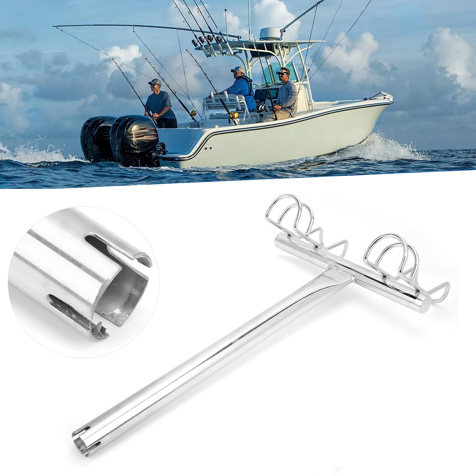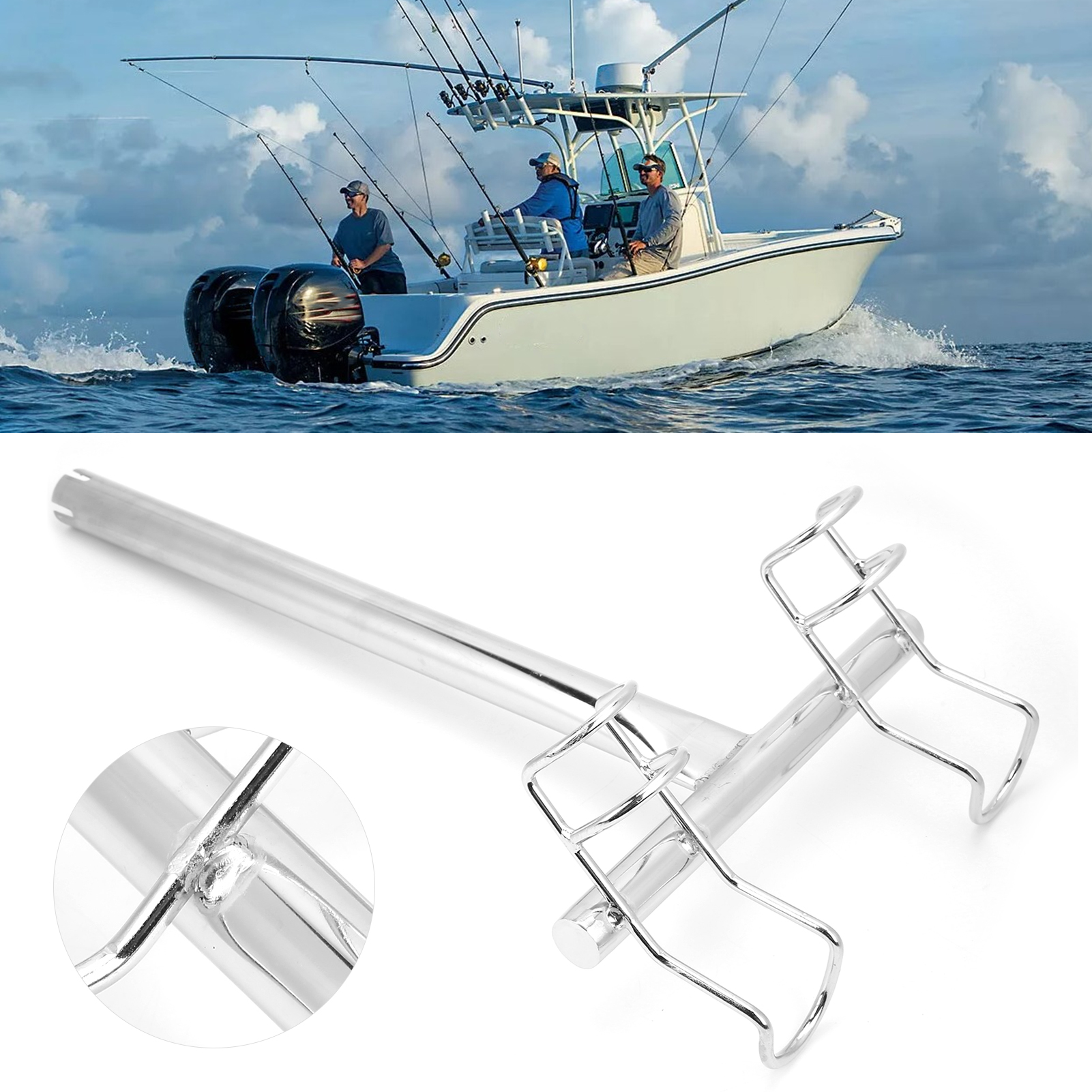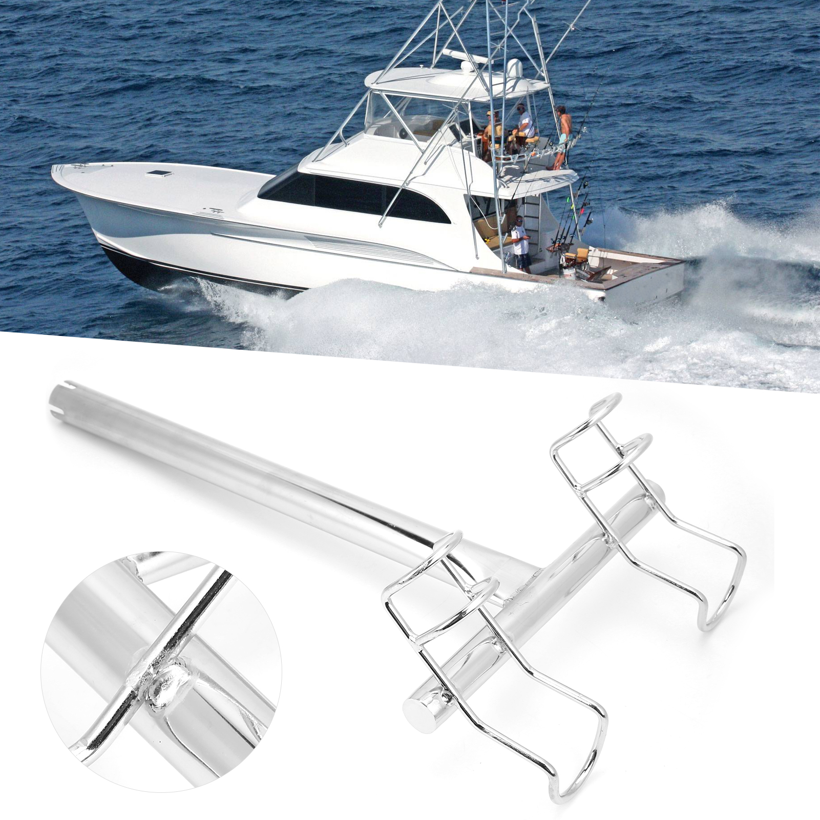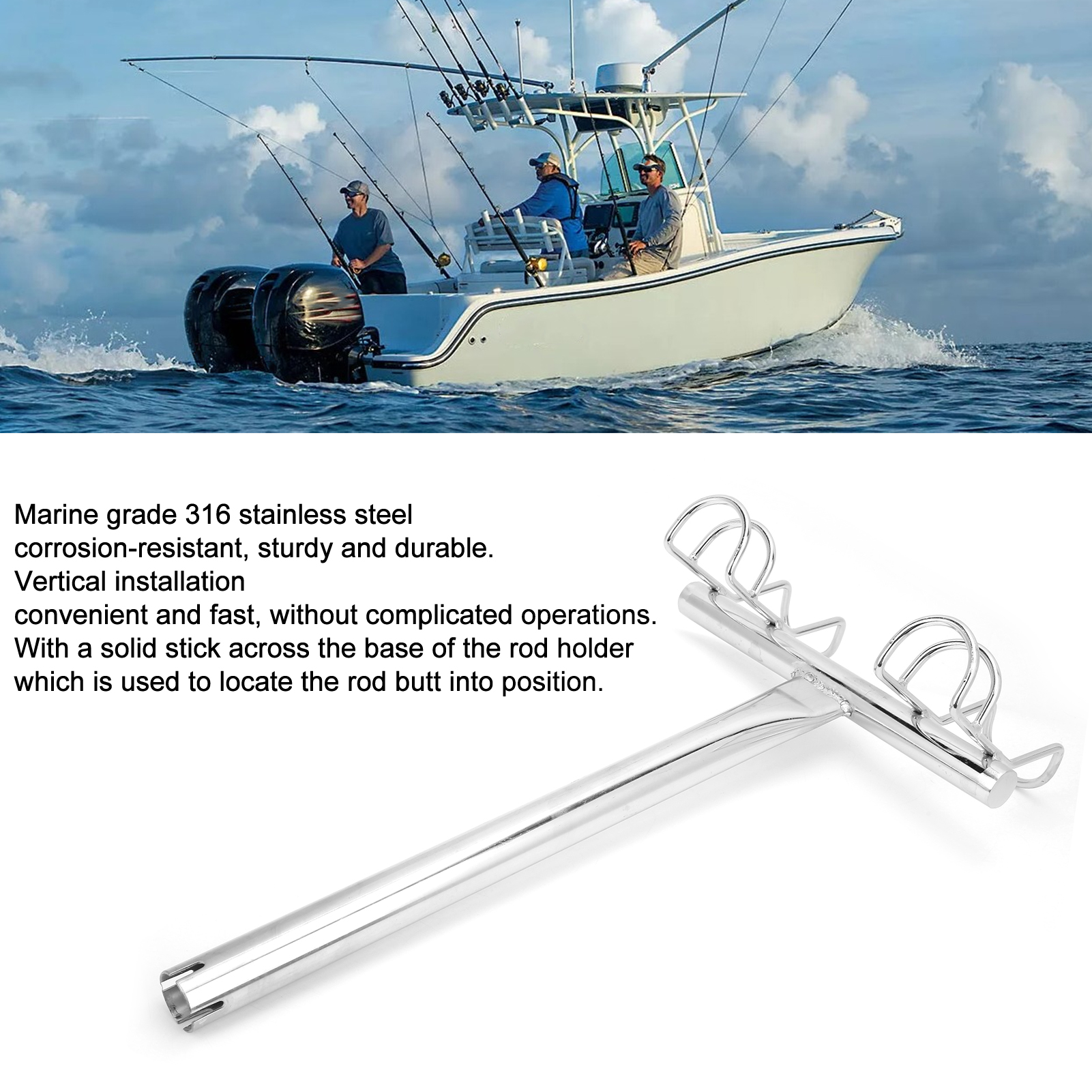 1、2‑way fishing rod holder, suitable for marine yachts and ships, which is a practical accessory. 2、Made of 316 stainless steel, anti‑corrosion and durable, can withstand harsh marine environments. 3、Vertical installation, convenient and fast, no need of complicated tools and operations. 4、Electrolytic surface, fashionable and glossy, which can be matched with today's modern watercraft. 5、With a solid stick across the base of the rod holder, which is used to locate the rod butt into position.