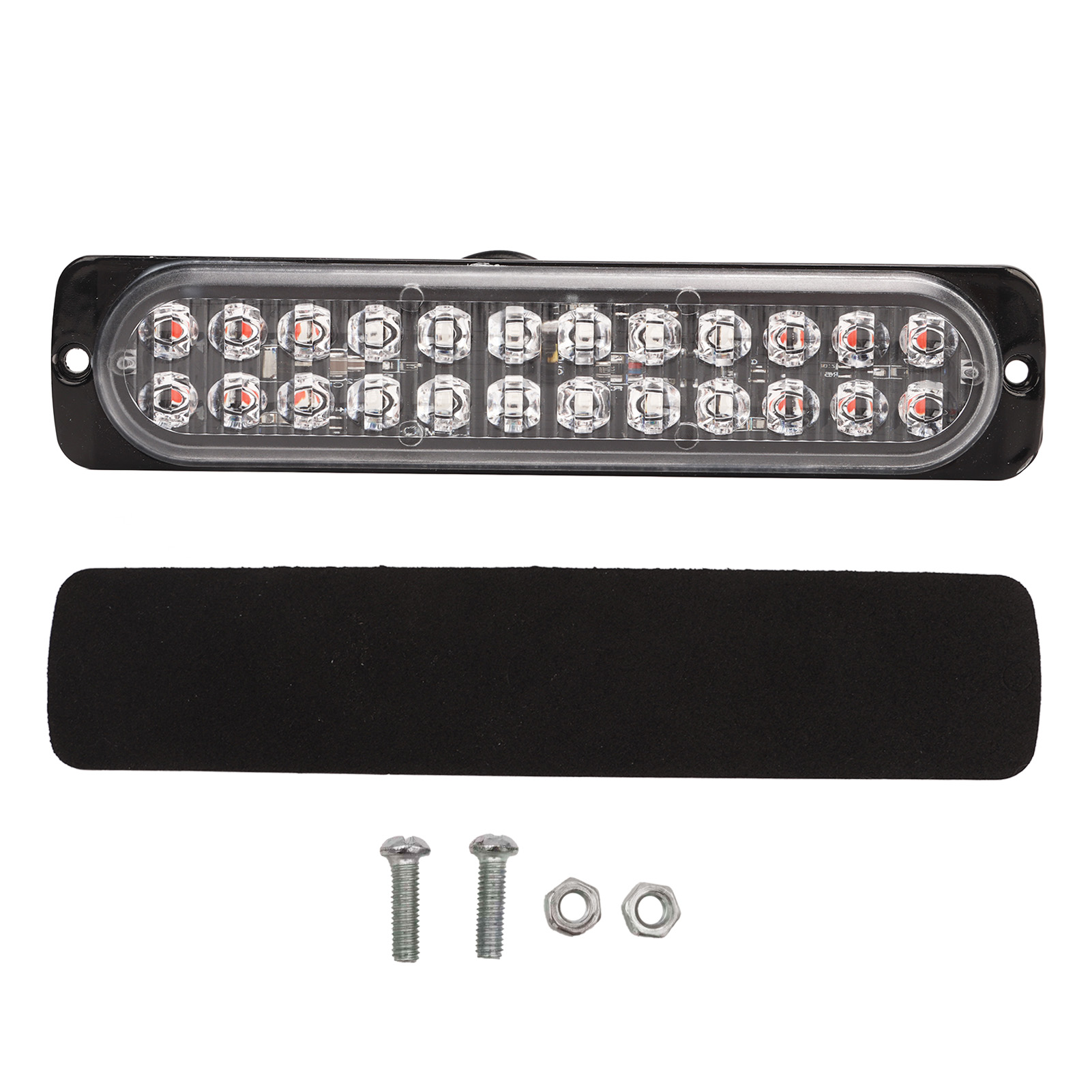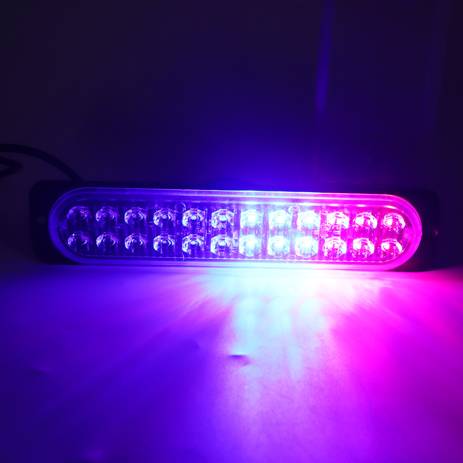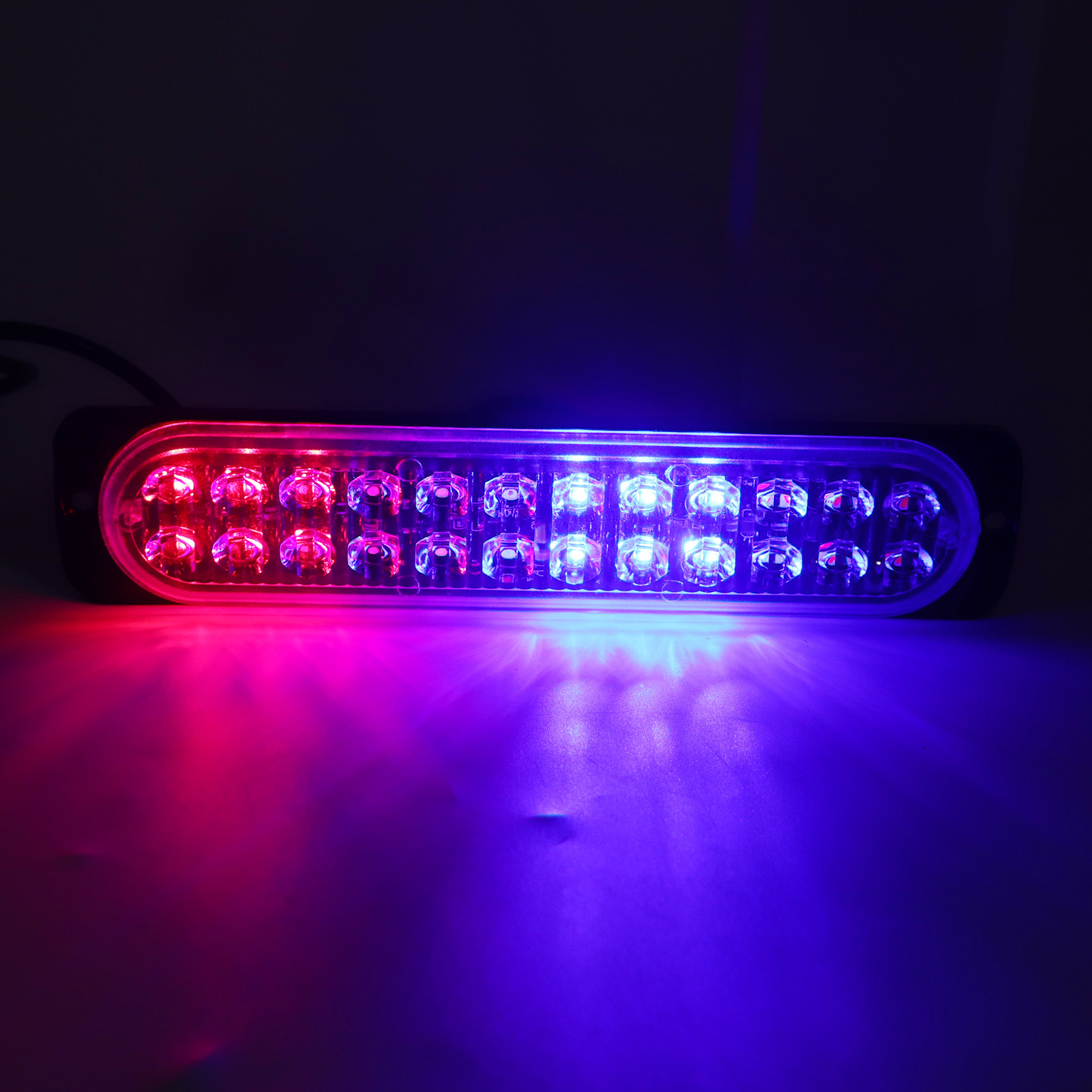 1、24 LED Lights: Side flashing light has 2 group high brightness Led light, each group has 12 Leds. The light color is red and blue. 2、High Visibility: Having high visibility during the day, at midnight, in rain or fog. Improve drive security and avoid accidents. 3、Weather Resistant: These lights can withstand severe weather conditions, IP67 waterproof rating, moisture and vibration protection for your driving escort. 4、Durable: Strobe light bar has over 50,000 hours life span because of the better production process, which is a economical choice for you, no need frequent replacement. 5、Easy to Install: Strobe light comes with nuts and screws for mounting to the grille or bumper. Common to all vehicles in 12 or 24V, can be installed in every position of the vehicle.