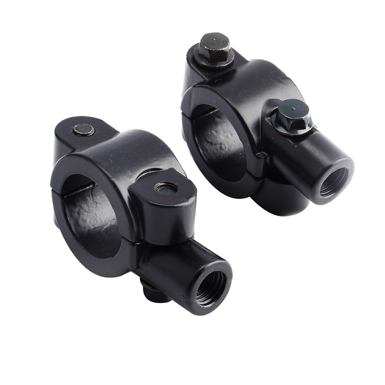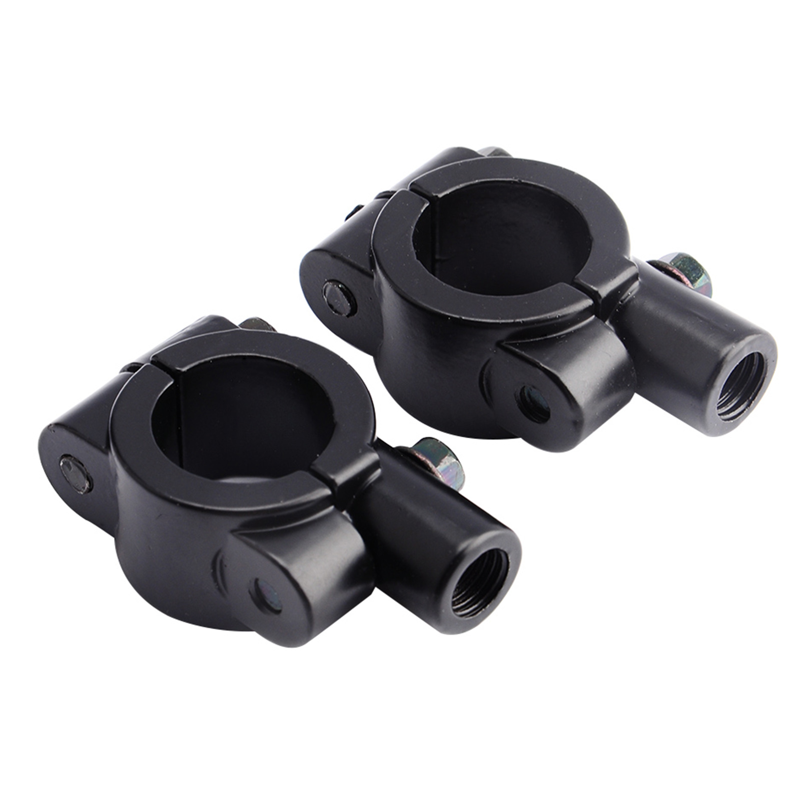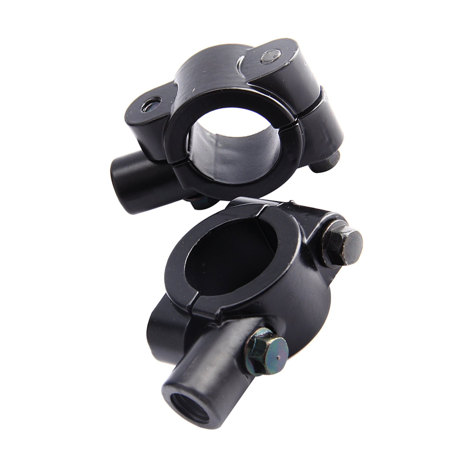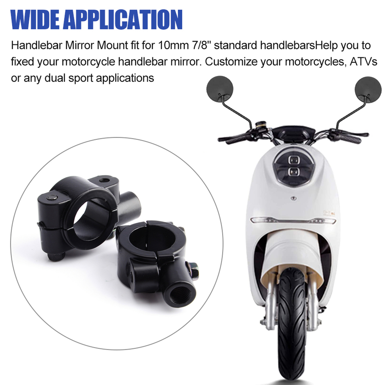 2Pcs Black Universal Motorcycle Handlebar Mirror Mount 10mm 7/8" Aluminum Clamp