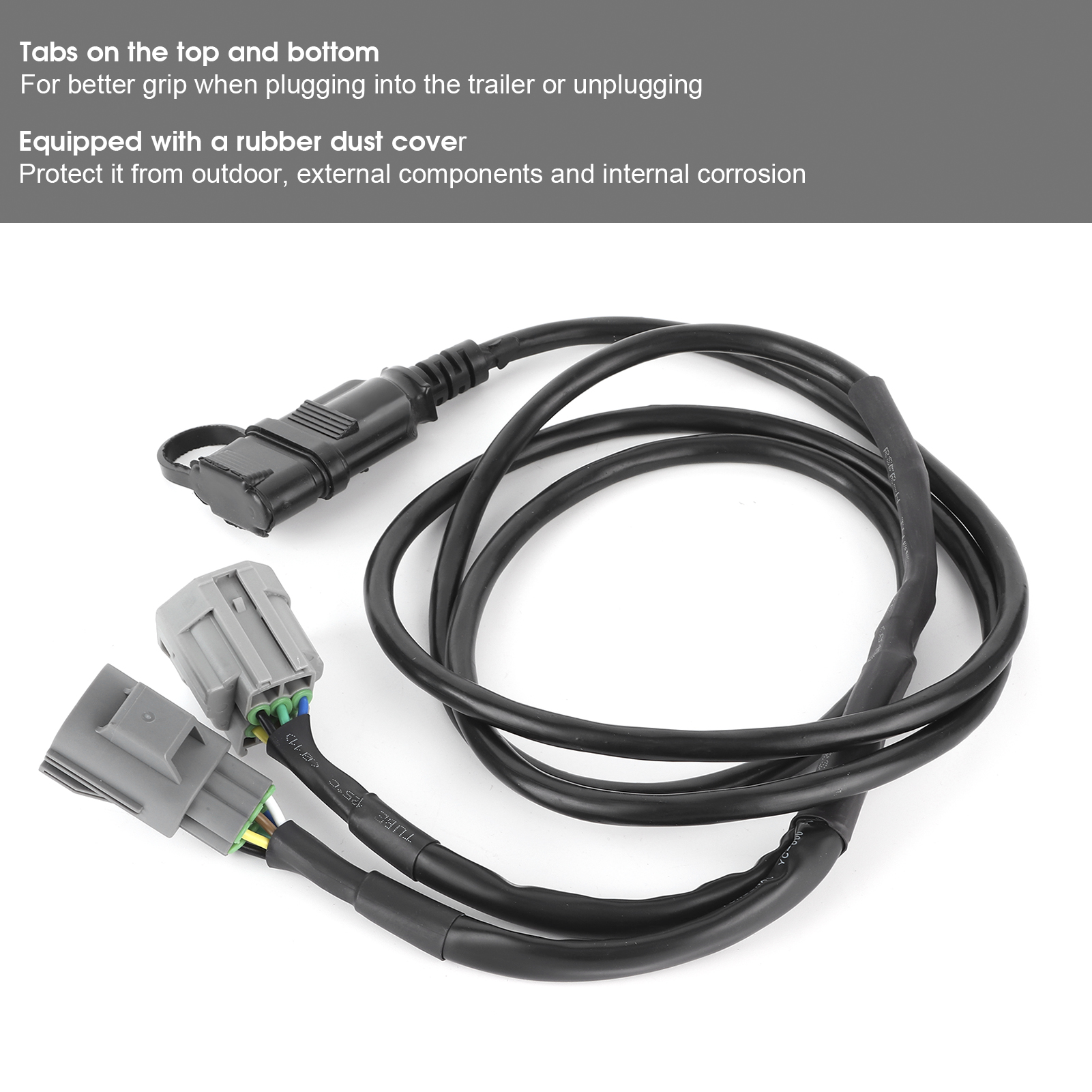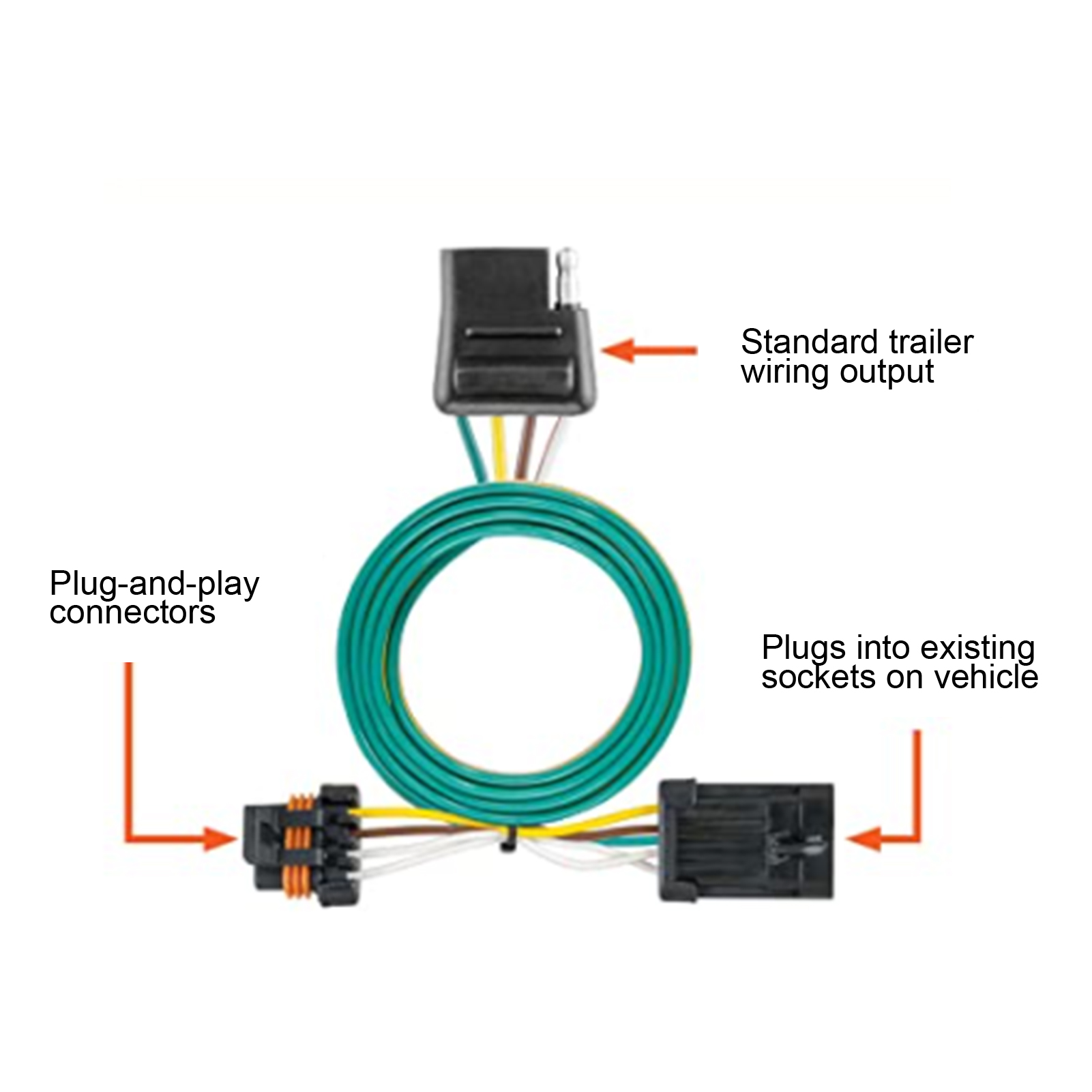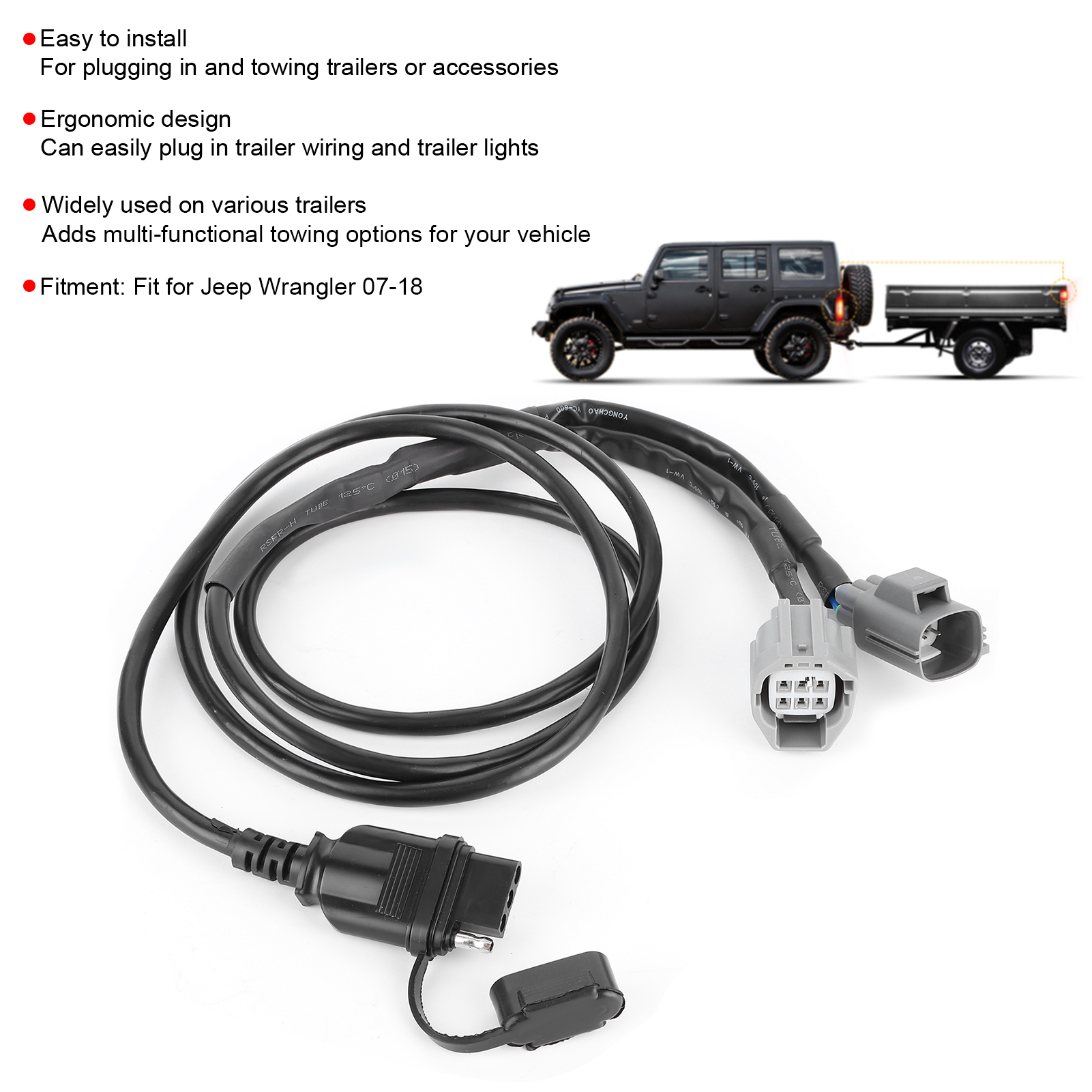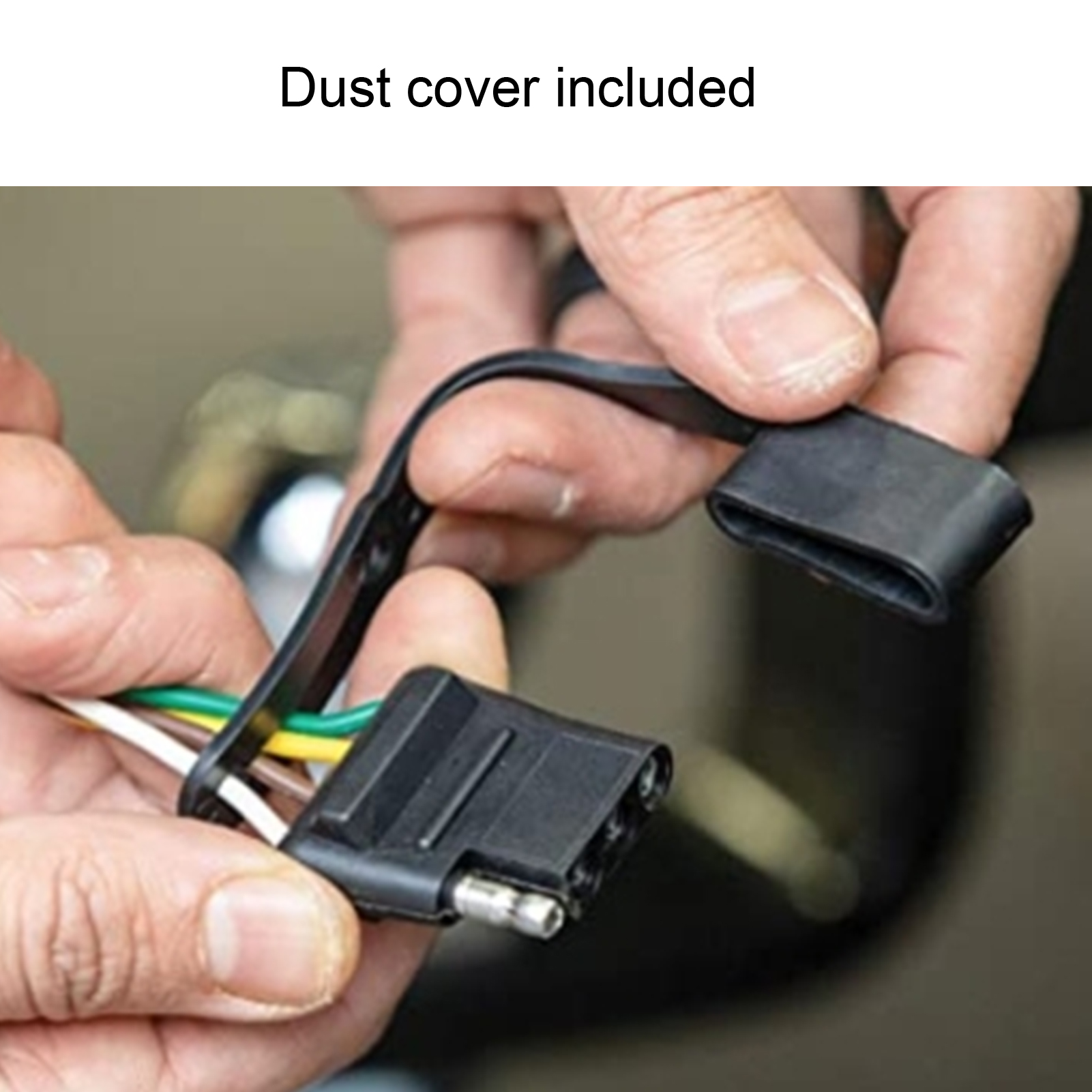 1、Equipped with a standard rear 4‑pin trailer wiring connector, easy to install, for plugging in and towing trailers or accessories. 2、Designed for Jeep Wrangler, which can make sure the easiest installation and the most reliable wiring connection. 3、Easy to grip, ergonomic design, can easily plug in trailer wiring and trailer lights. 4、Tabs on the top and bottom for better grip when plugging into the trailer or unplugging. 5、It can be used to connect trailer tail lights, brake lights and turn signal lights, widely used on various trailers and adds multi‑functional towing options for your vehicle. 6、Equipped with a rubber dust cover to protect it from outdoor, external components and internal corrosion.