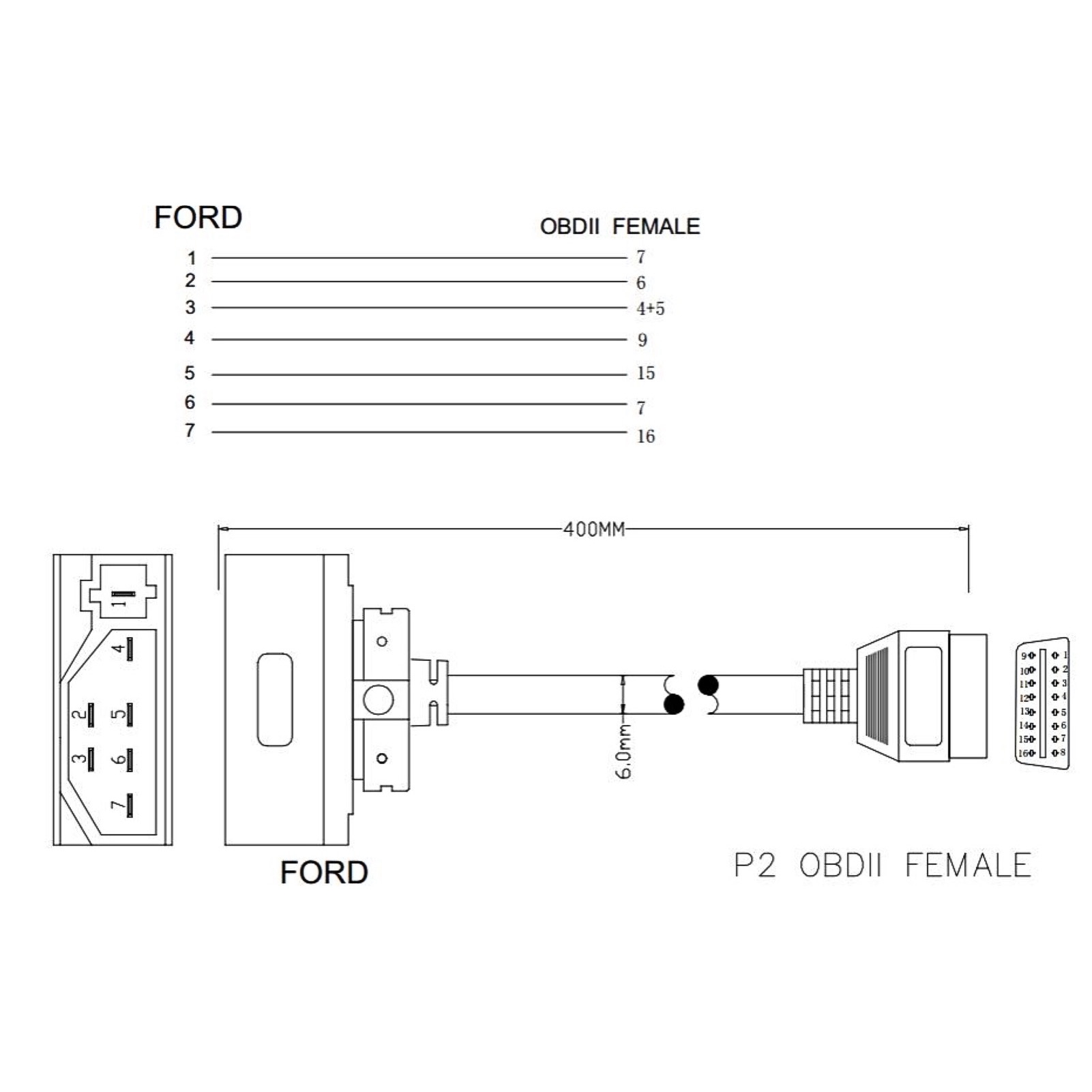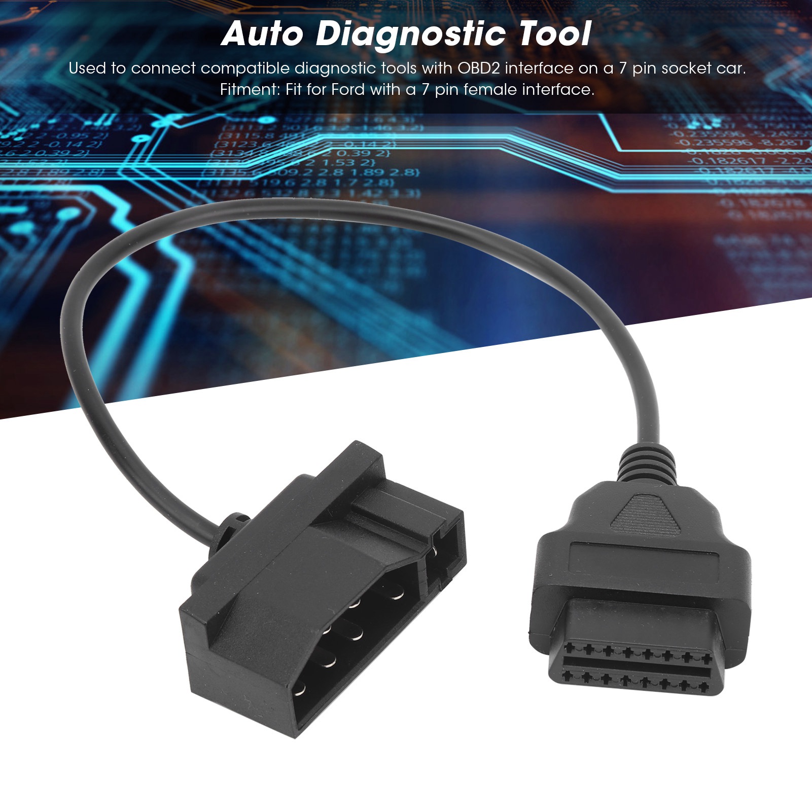 40cm/15.7in 7‑Pin OBD1 to OBD2 OBDII 16‑Pin Diagnostic Scanner Adapter Cable Fit for Ford