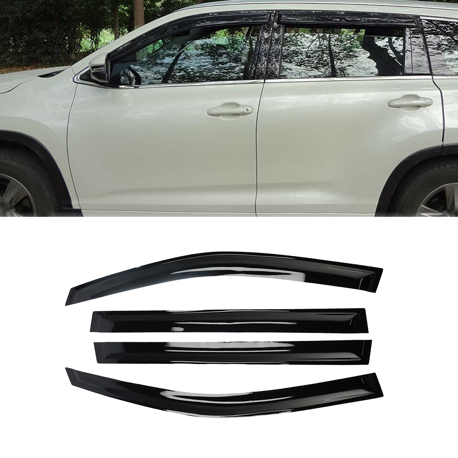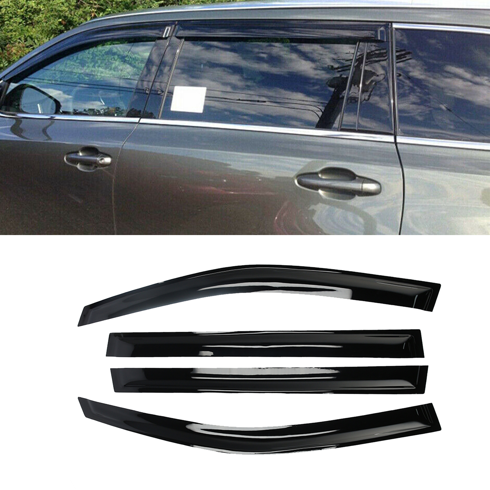 1、Effectively reduce interior wind noise and reduce glare during night driving, greatly reduce the occurrence of safety accidents. 2、Shade cab from the sun to minimizes interior heat when parked in sunshine, and prevent fogging on mirrors. 3、Designed with precise engineering data to ensure custom fit to your vehicle, and match the window tint naturally. 4、To allow fresh air circulation while keep rain out, and improve ventilation during any weather condition. 5、Manufactured by high‑impact acrylic in UV and scratch resistant and optical transparent.