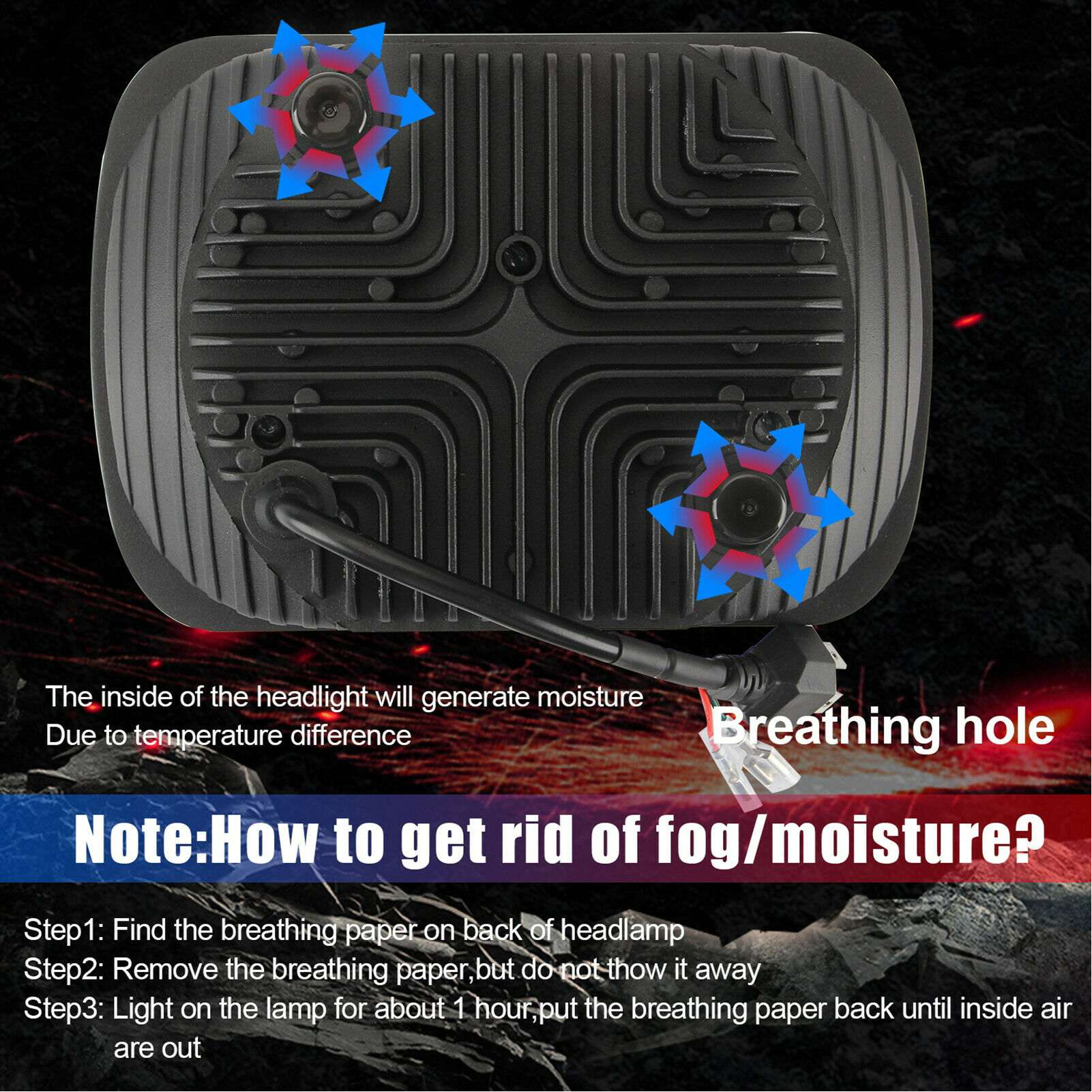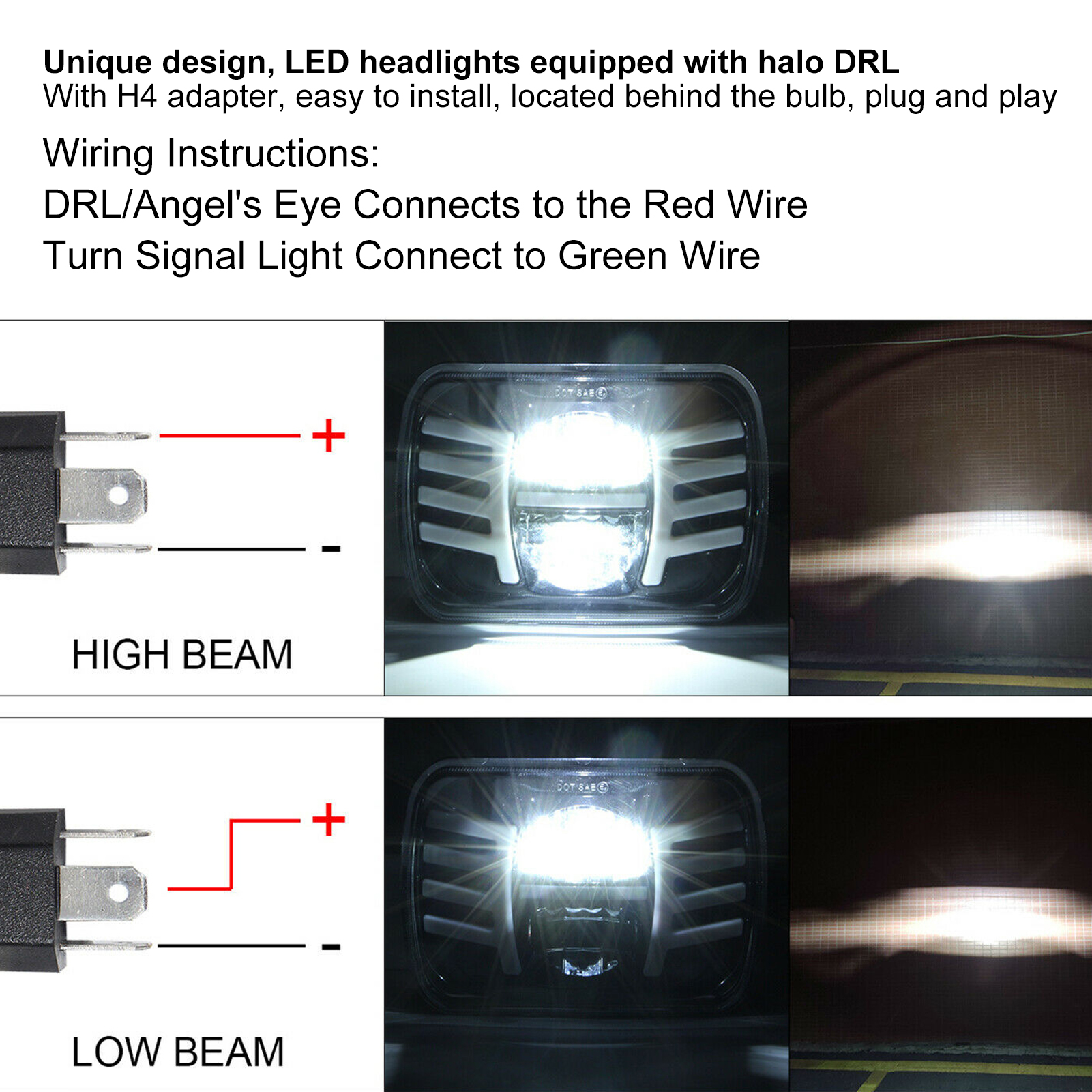 1、Unique design, LED headlights equipped with halo DRL, lighting is farther and brighter than halogen lamps. 2、Fit for Jeep Wrangler YJ/ Cherokee XJ/ Comanche MJ, fit for Dodge Ramcharger/ Ram pickup/ W250/ Van, etc. 3、Easy to install, the H4 adapter is located at the back of the lamp, plug and play, no flicker wiring harness, no need for an additional decoding. 4、Advanced heat dissipation device helps the bulb work effectively and provides the high working performance. 5、New electroplating lens, die‑cast aluminium shell, high temperature resistant, shockproof, dustproof, and IP67 waterproof. 6、There is a breathing hole at the rear of the headlight to prevent from condensation. The service life is more than 50,000 hours.