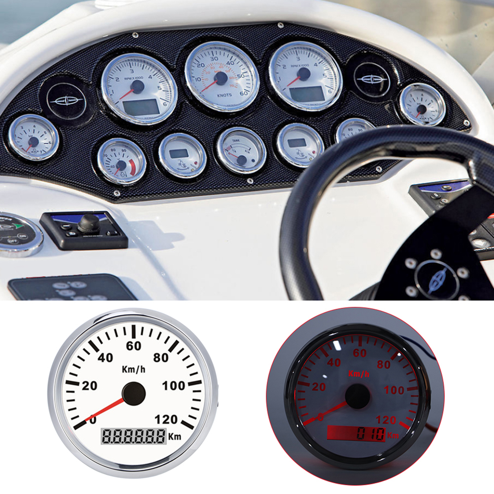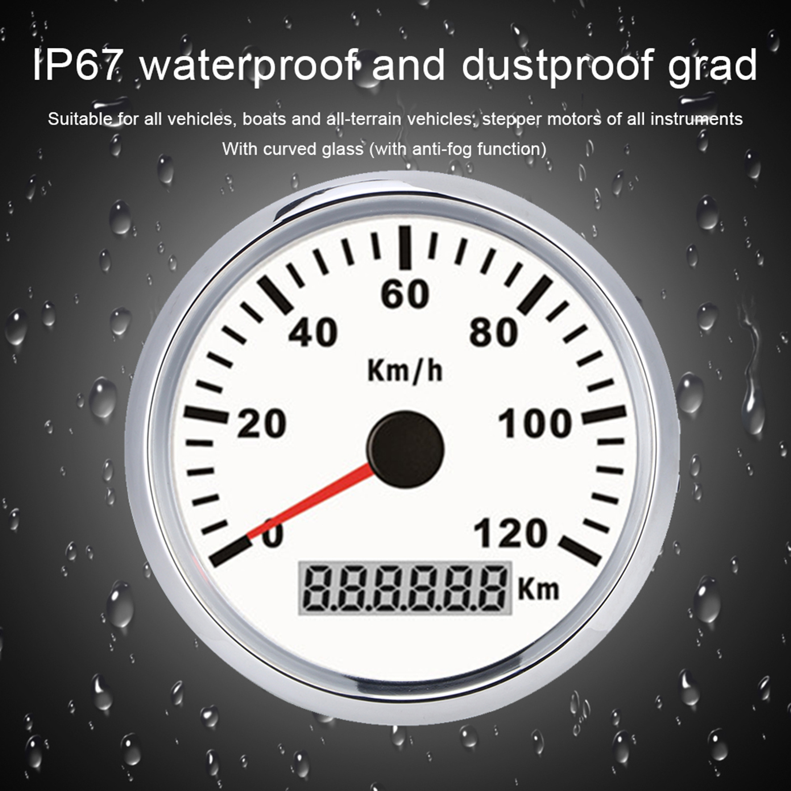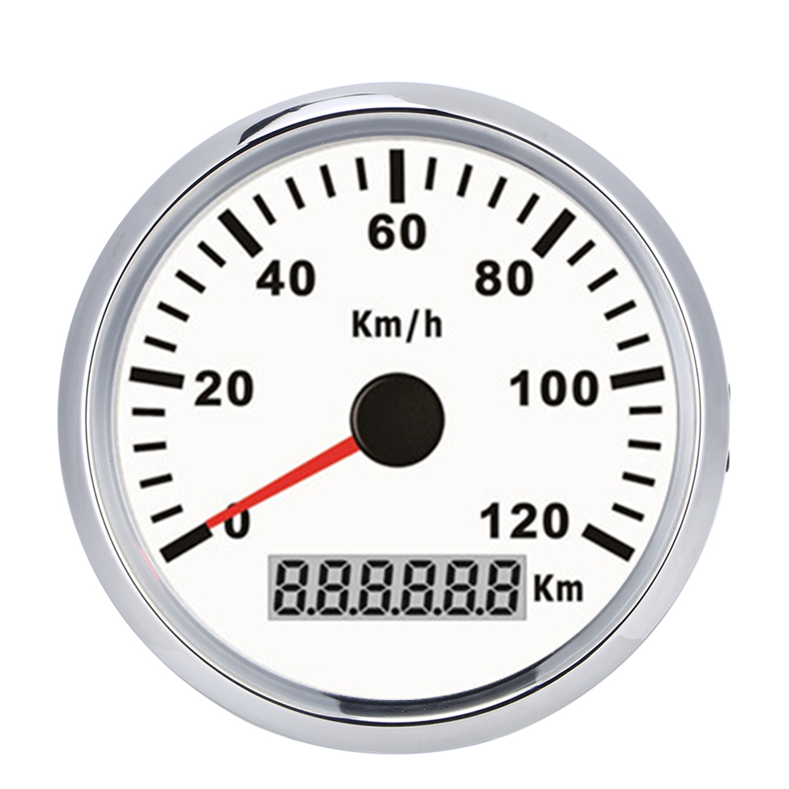 85mm / 3.3in Universal GPS Speedometer Waterproof Anti Fog Meter 0-120km h for Car Truck Boat Motor(Silver Frame White Dial )
