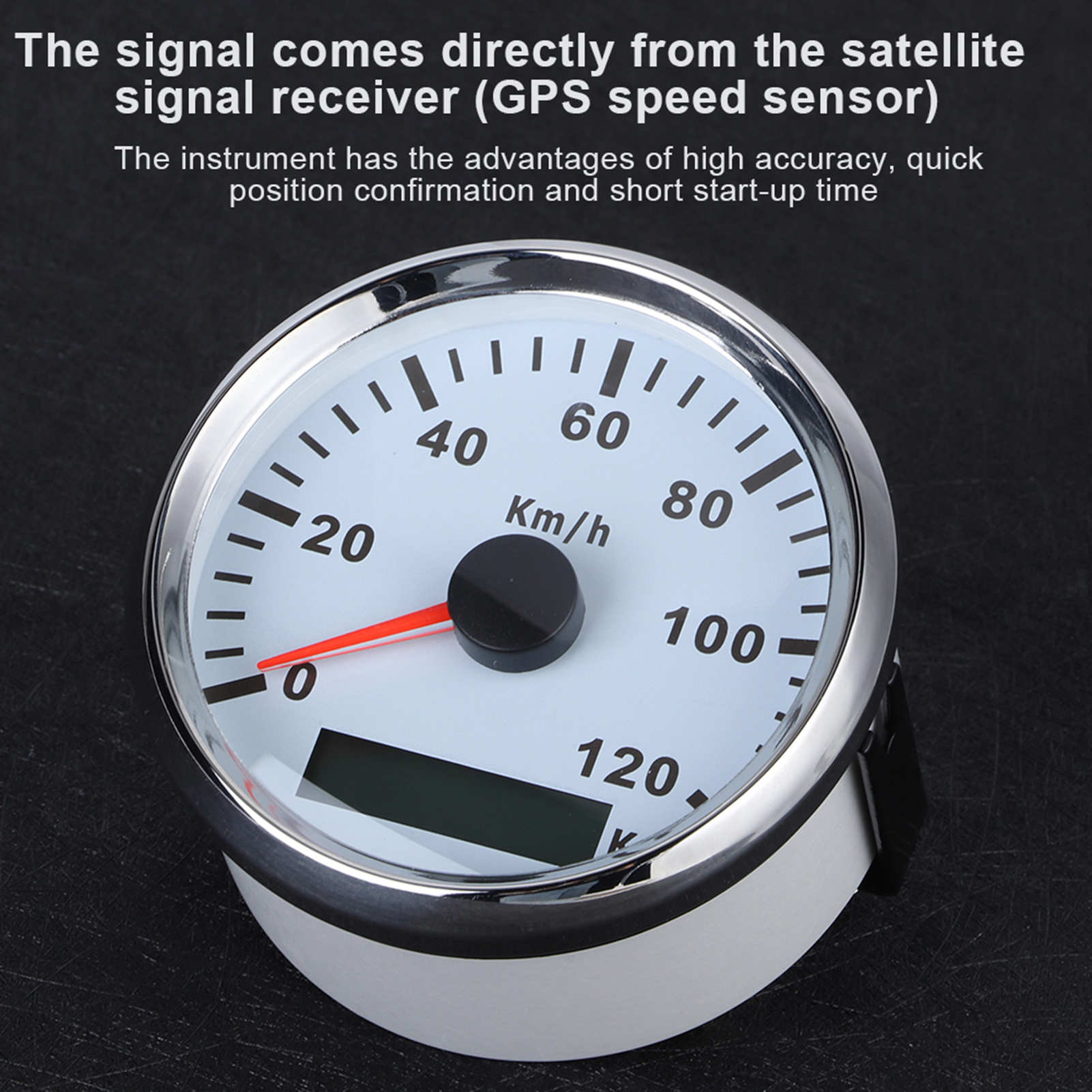 1、Suitable for all vehicles, boats and all‑terrain vehicles. Driving and control are relatively simple. 2、Adopting a stepper motor to drive the pointer, accurately display the motor speed. 3、Has IP67 waterproof and dustproof grade, curved glass (with anti‑fog function), convenient for you to read the data even in bad weather. 4、The signal comes directly from the satellite signal receiver (GPS speed sensor). 5、The instrument has the advantages of high accuracy, quick position confirmation and short start‑up time. 6、Comes with LCD display mileage, repeatability and versatility, reliability and stability. 7、Suitable for stepper motors of all instruments, with low power consumption, long life and high accuracy. 8、With ultra‑wide working voltage design (long‑term working voltage: 9‑32V, maximum voltage: 36V (≤1min).