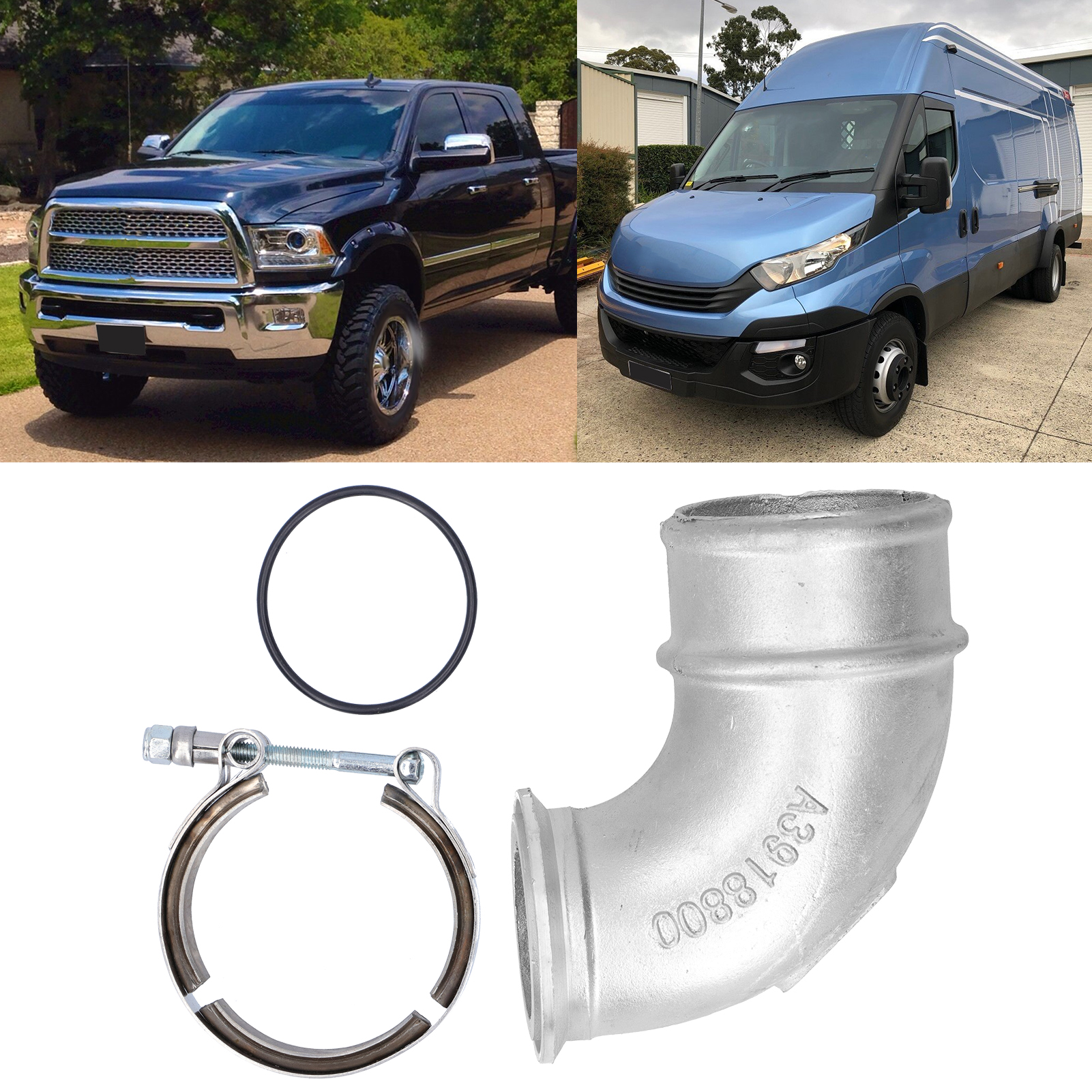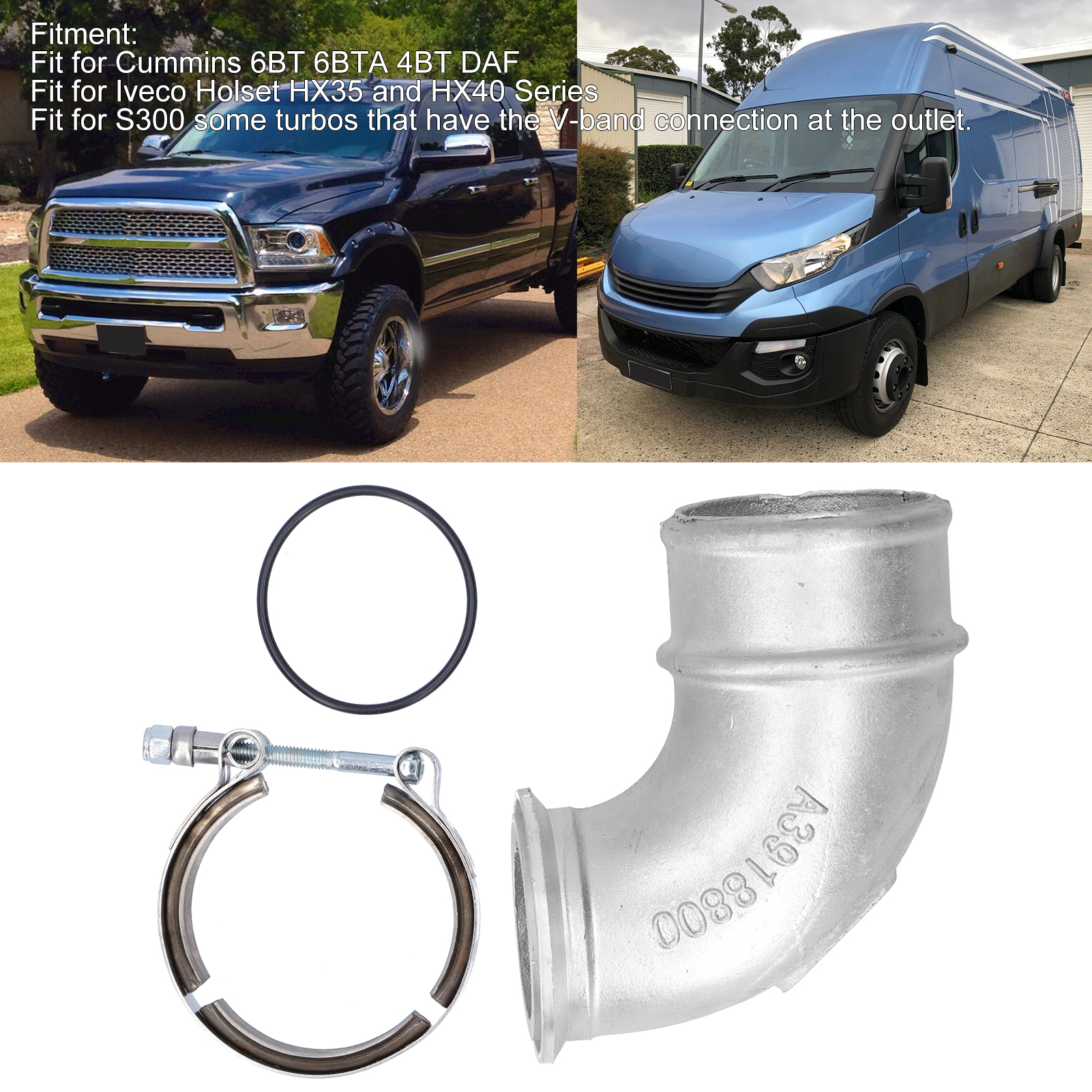 Fit for Iveco Holset HX35 and HX40 Series, and some S300 turbos that have the V-band connection at the outlet.