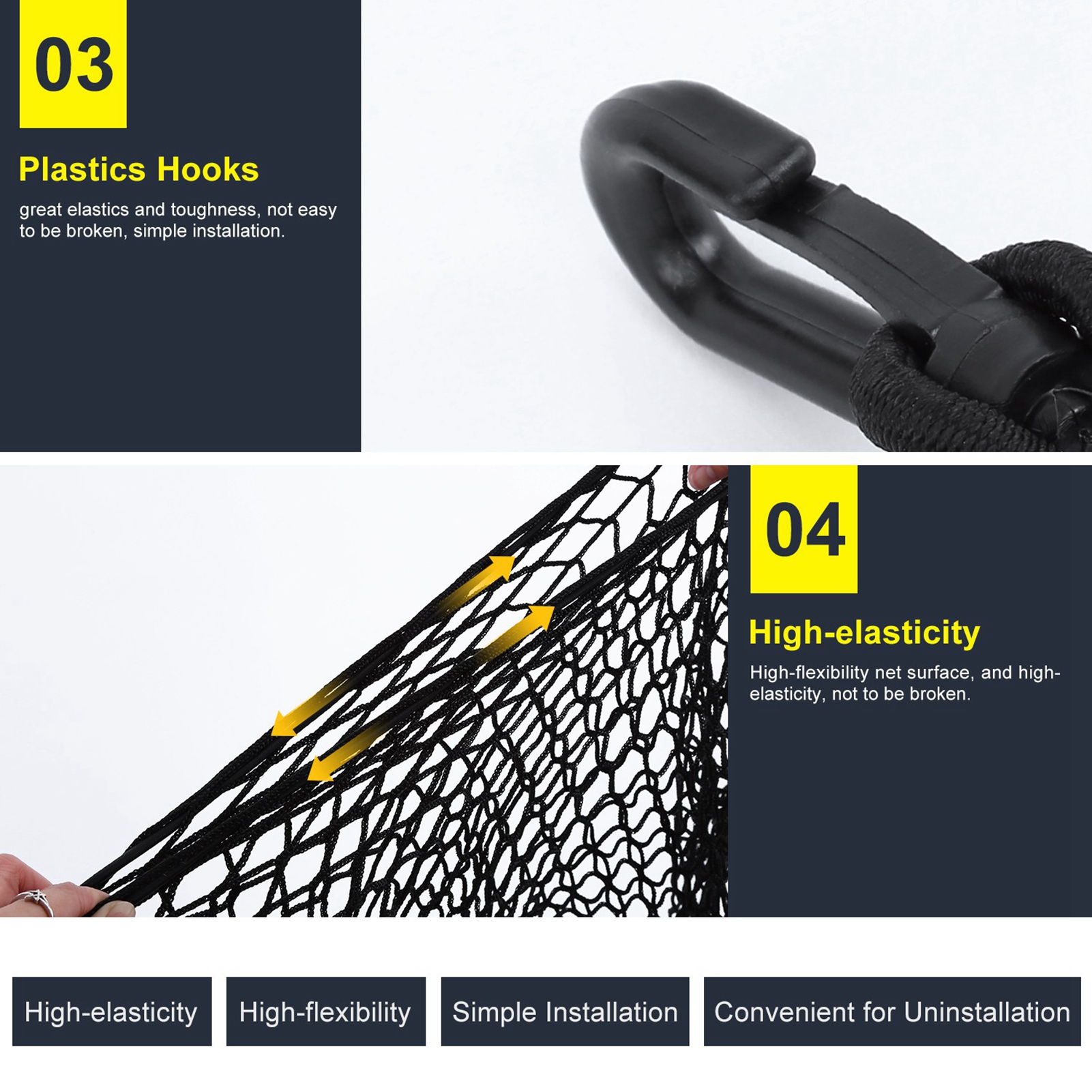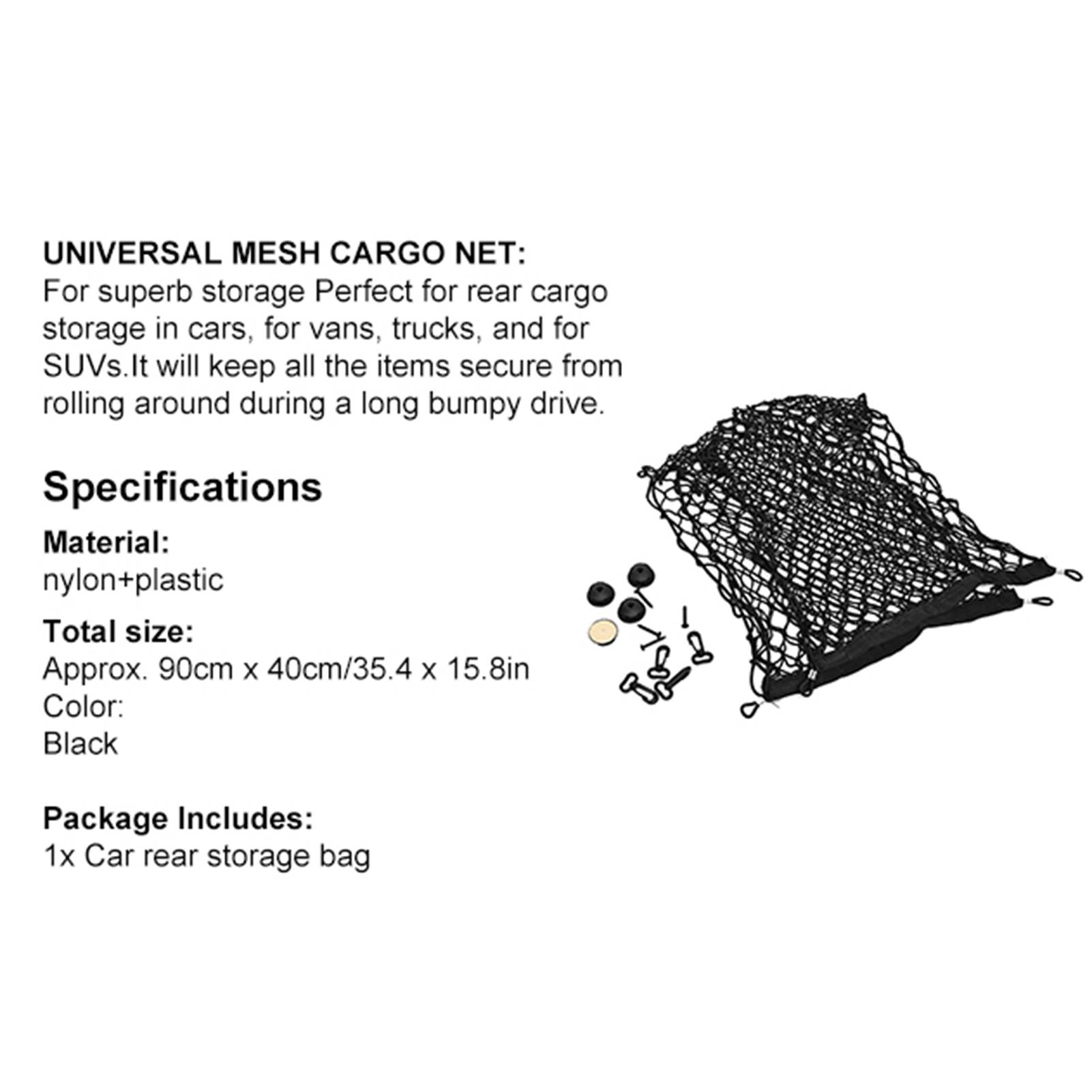 1、UNIVERSAL MESH NET: For superb storage Perfect for rear storage in car, trucks, and for SUVs.It will keep all the items secure from rolling around during a long rugged drive.