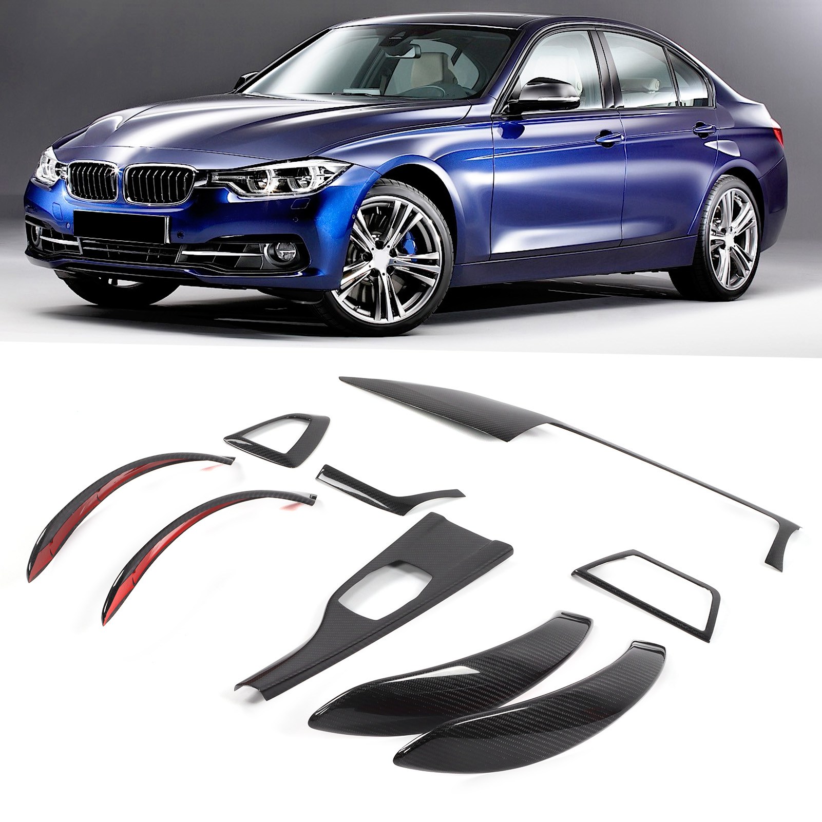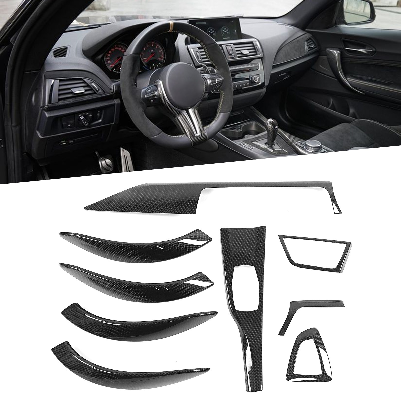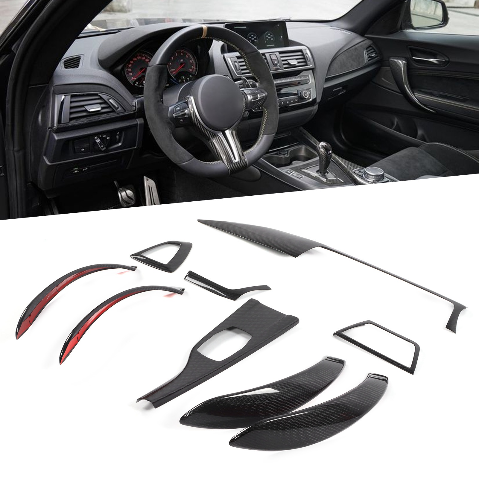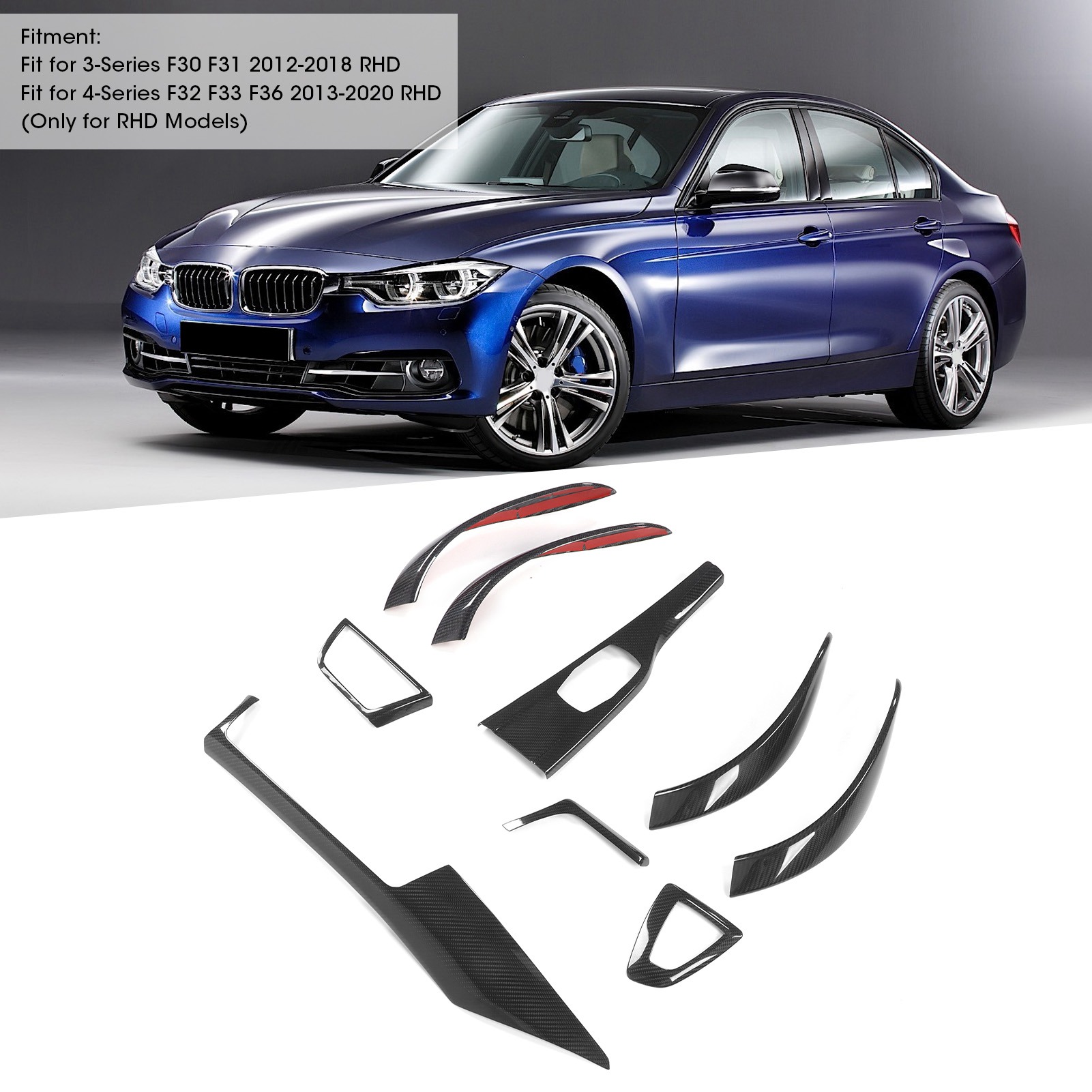 9Pcs Carbon Fiber Interior Trim Kit Door Handle Gear Shift Panel Cover Fit for 4-Series F32 F33 F36 2013-2020 RHD