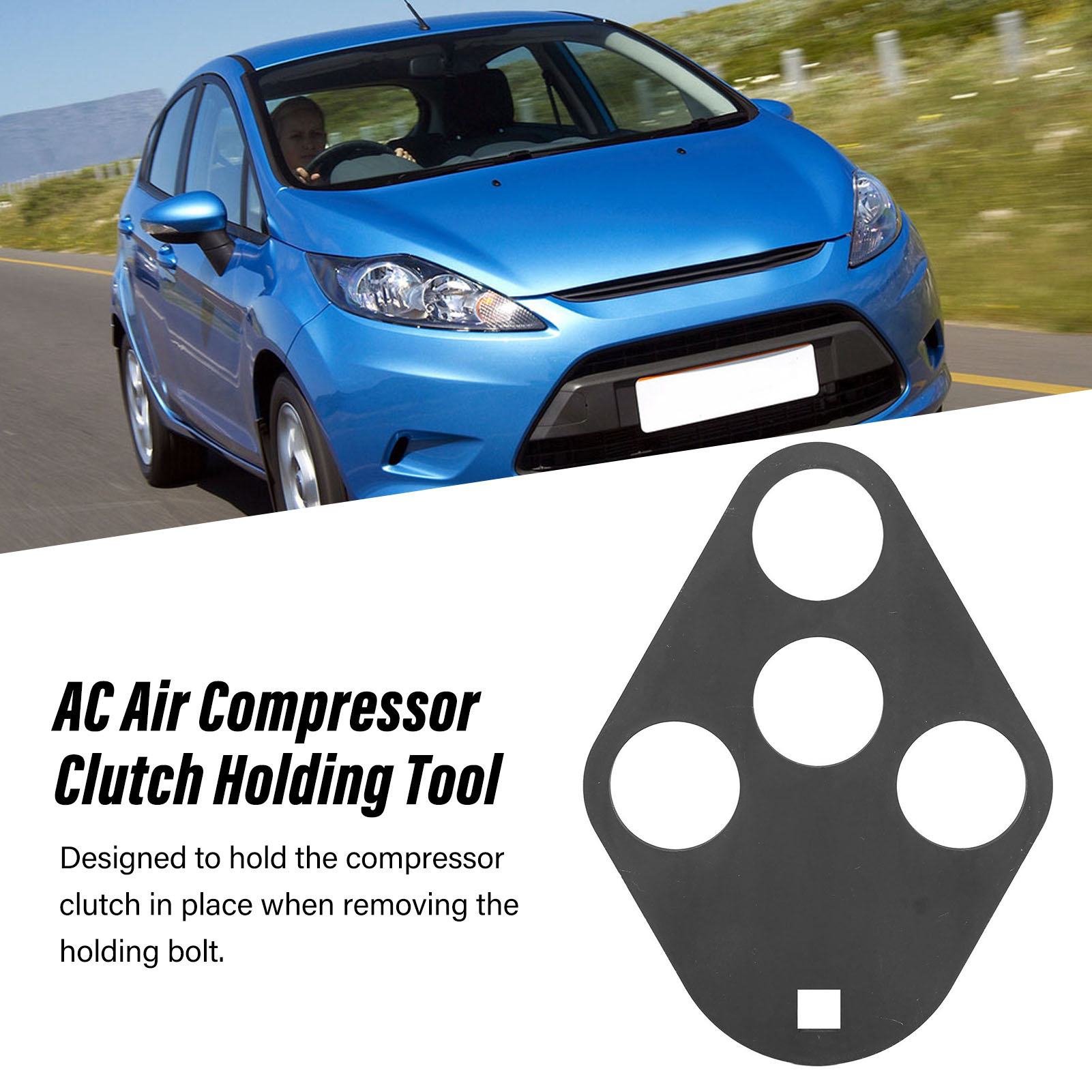 1、Fitment: Replacement for Ford Fiesta (from 2008); Replacement for Ford C‑Max (from 2010); Replacement for Ford B‑Max (From 2012). 2、Part Number: This AC air compressor clutch holding tool is equivalent to OEM 412‑103, which can help you find exactly what you want. 3、Firmly Holding: AC compressor clutch holding tool is designed to hold the compressor clutch in place when removing the holding bolt. 4、High Efficiency: Air compressor clutch holding tool can be used with 3/8in Drive wrench or knuckle bar, more efficient to do the work. 5、Functional Tool: Air con clutch tool is manufactured from satin finish chrome vanadium alloy, ideal for difficult access applications.