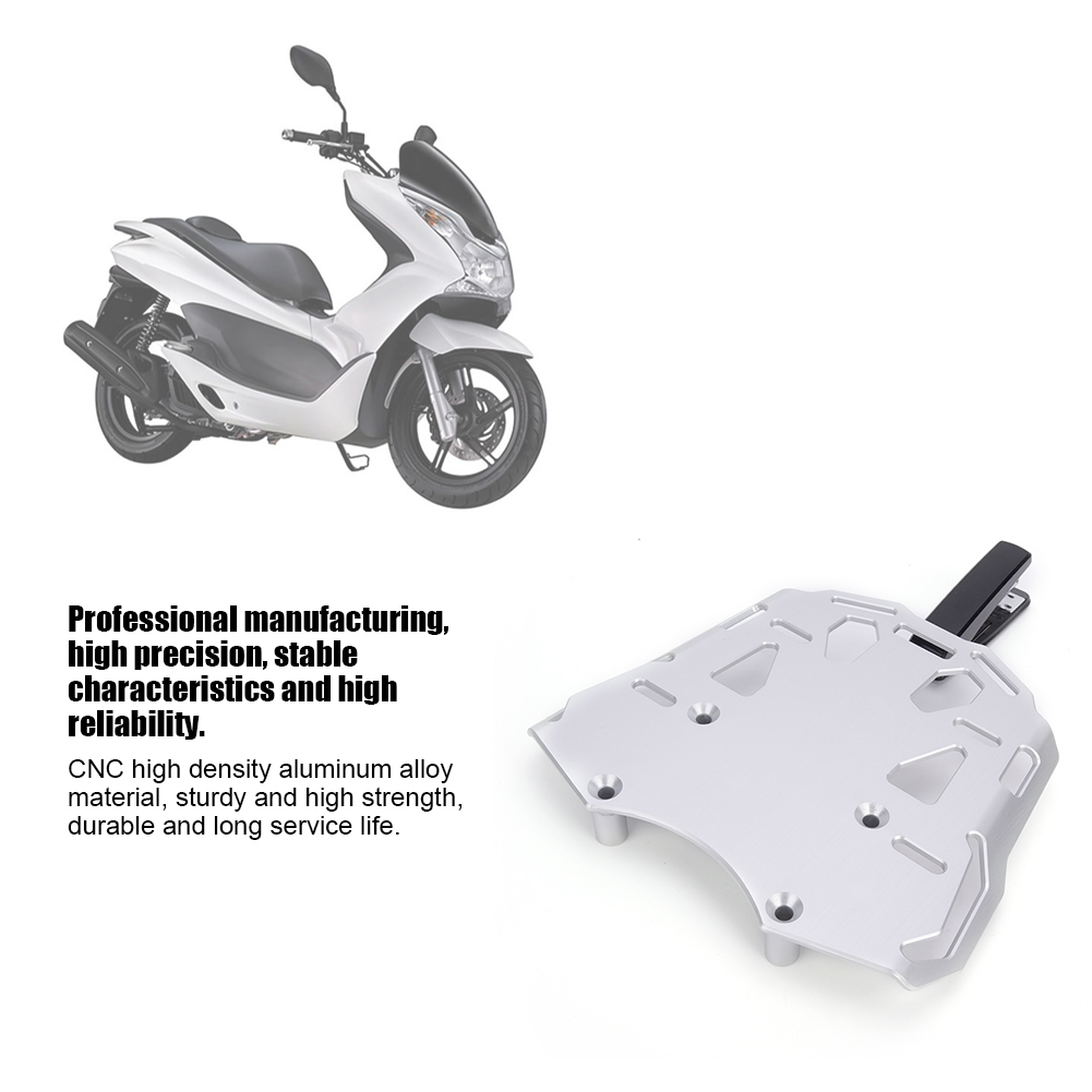 1、CNC high density aluminum alloy material, sturdy and high strength, durable and long service life. 2、Professional manufacturing, high precision, stable characteristics and high reliability. 3、The ability to withstand heavy loads is strong and not easily broken. Hollow out design, easy for you to bundle items. 4、Easy to install and use, convenient and practical. 5、Suitable for Honda PCX 150 2014+ motorcycle.