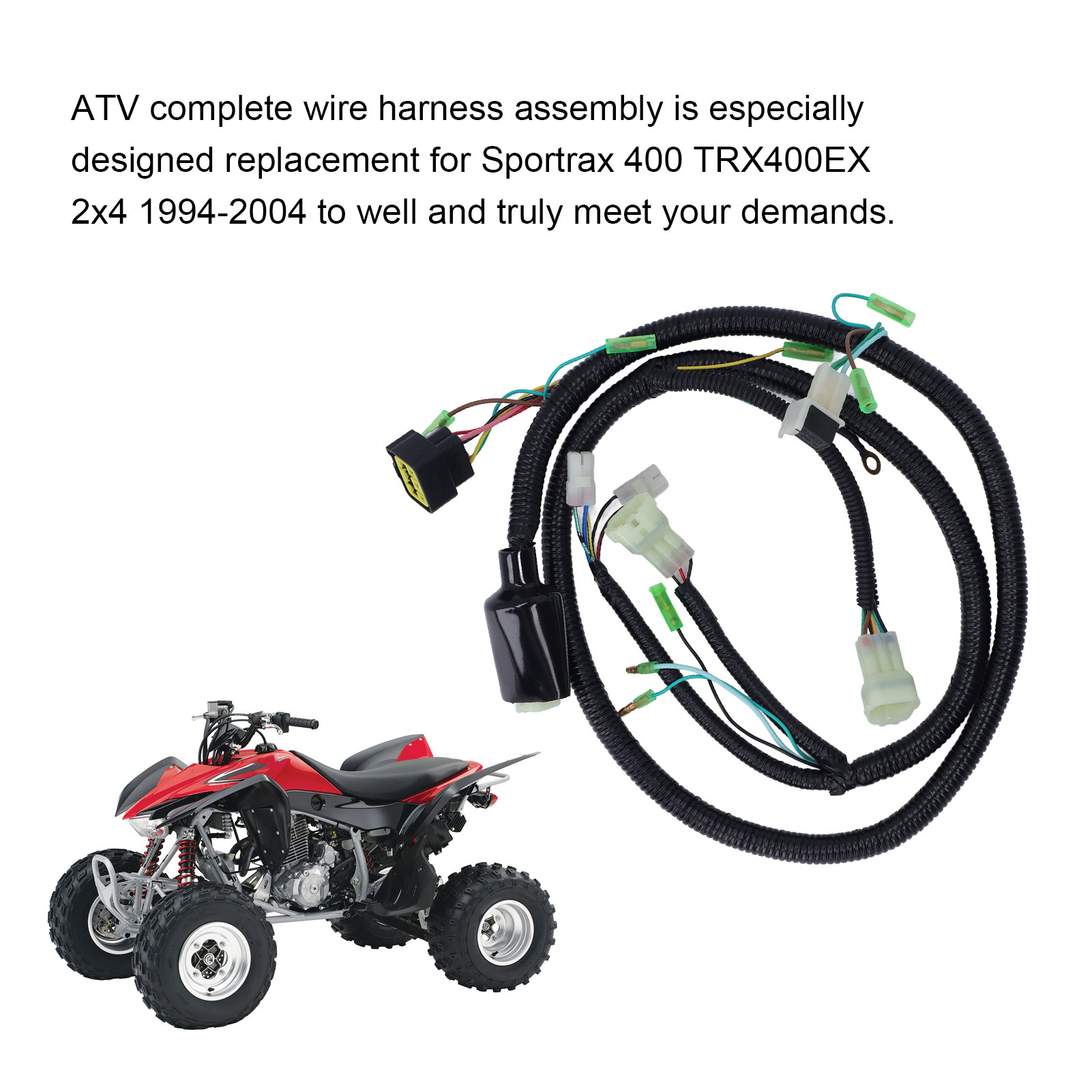 1、Part Number: The complete wiring harness replacement part number is 32100 HN1 000 for reference, please double check the part number of your item before purchasing. 2、Ideal Application: ATV complete wire harness assembly is especially designed replacement for Sportrax 400 TRX400EX 2x4 1994‑2004 to well and truly meet your demands. 3、Durable Materials: ATV main wiring harness assembly is made of premium quality ABS for maximum durability and excellent resistance to wear and damage, durable to use. 4、Convenient Installation: ATV complete wire harness is produced with high accuracy and after strict quality control, ensuring perfect fitness and direct replacement for original. 5、Professional Production: Complete wiring harness plug assembly has undergone extensive quality and safety testing to ensure long service life and strong reliability.