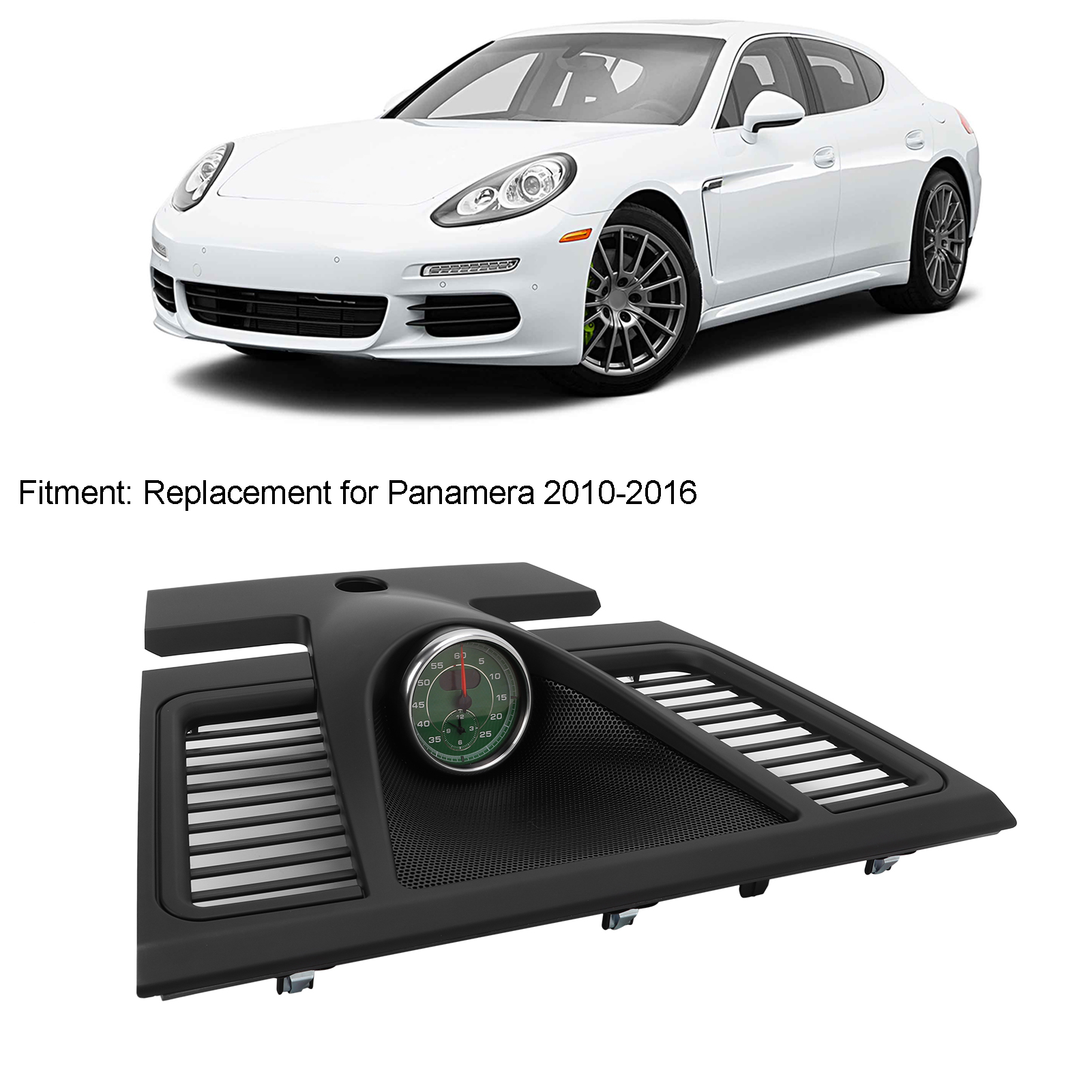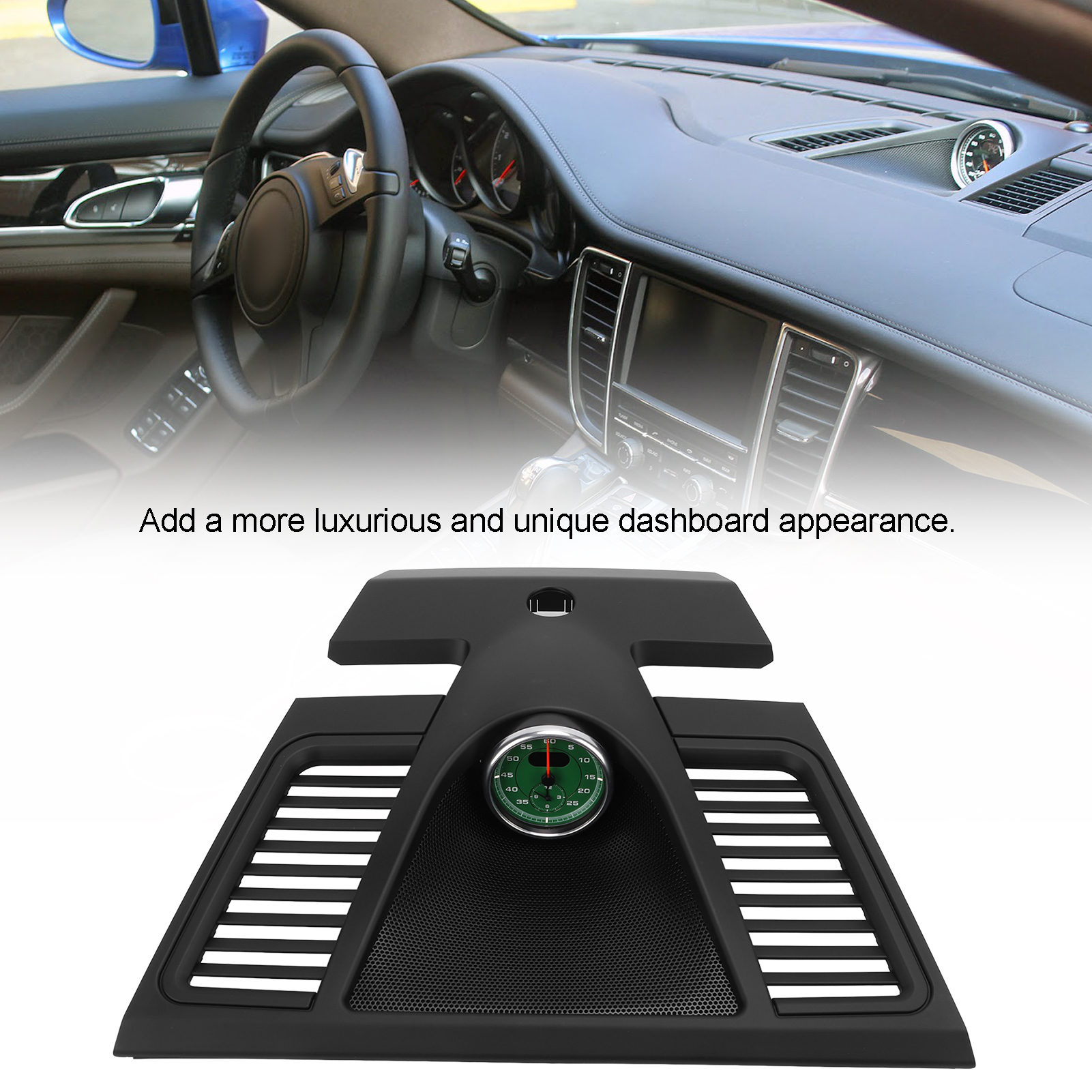 1、Part Number: According to the original factory specifications, replacing reference OEM number is 970 552 151 01 5Q0. 2、Applicable Model: Dash panel cover with stopwatch, replacement for Panamera2010‑2016, please carefully check car model before buying. 3、Interior Upgrade: Black dash clock upper cover upgrades your car interior to add a more luxurious and unique dashboard appearance. 4、Accurate Adaptation: Opening mould in original car data, professionally built, ensures perfect match, high accuracy. 5、Non Destructive Installation: Made of high quality ABS material, sophisticated workmanship, rugged and durable, easy to install and disassembly.