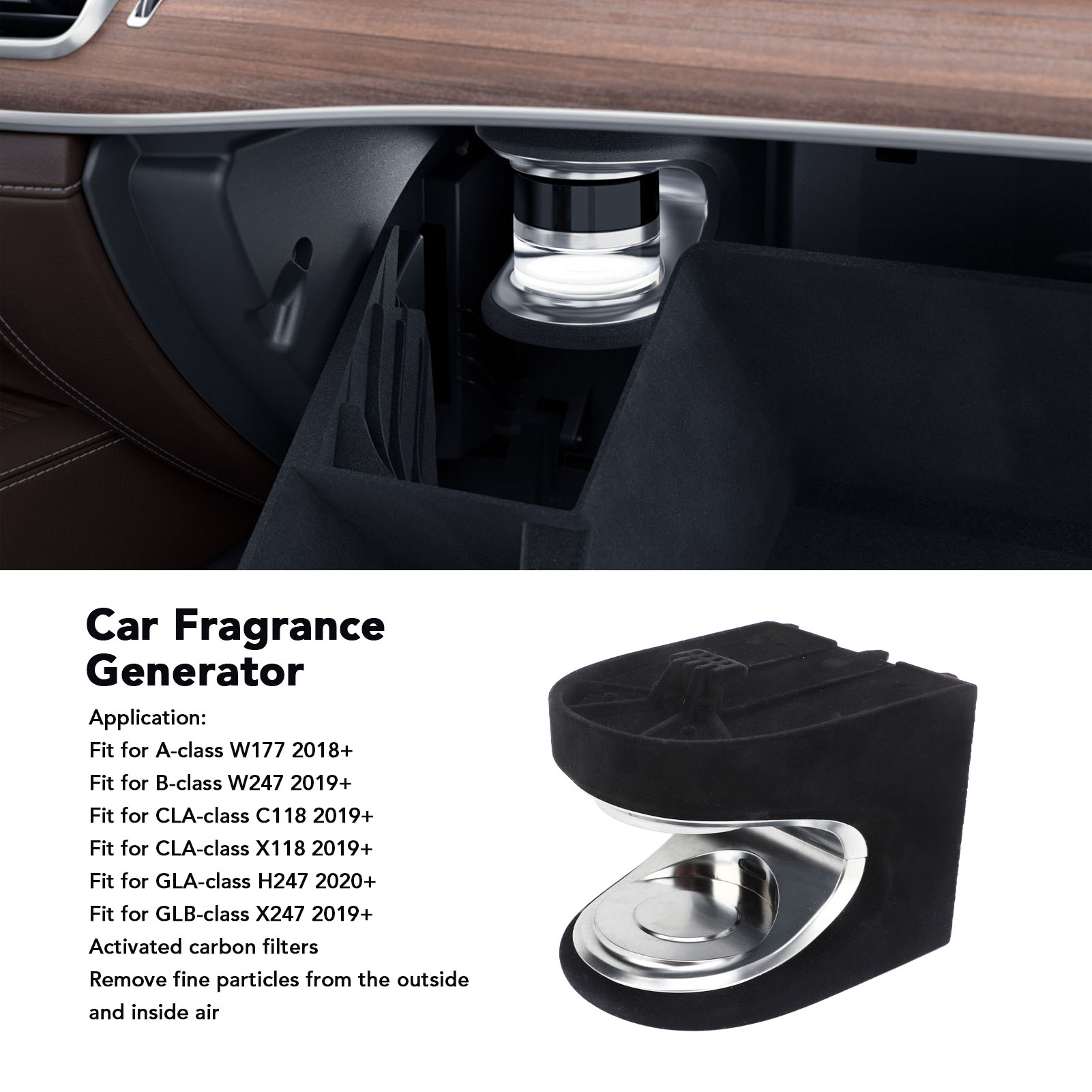 1、Fitment: Car air freshener system is fit for A‑class W177 2018+, fit for B‑class W247 2019+, fit for CLA‑class C118 2019+, fit for CLA‑class X118 2019+, fit for GLA‑class H247 2020+. 2、Fresh Fragrance: Car fragrance air ionizer provides your car's interior with a unique scent that matches your personal preferences and brings you a pleasant mood. 3、Comfortable Enjoyment: Car air fragrance system helps ensure improved air quality and pleasantness due to fresh ionization and filtration of external and internal air. 4、Controlled Scent Intensity: The intensity of the fragrance can be controlled as you wish, charming fragrance with a gentle emanation, and the smell dissipates quickly after closing, the perfume molecules are not deposited on the car interior fabric surface or clothing. 5、Powerful Filtration: The filtration system with activated carbon filters removes fine particles from the external and internal air, thus adsorbing sulfur dioxide, nitrogen oxides and aromatic hydrocarbons. This also applies to odorous substances produced in agriculture.