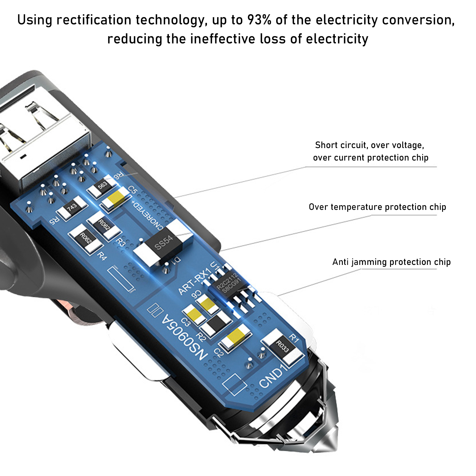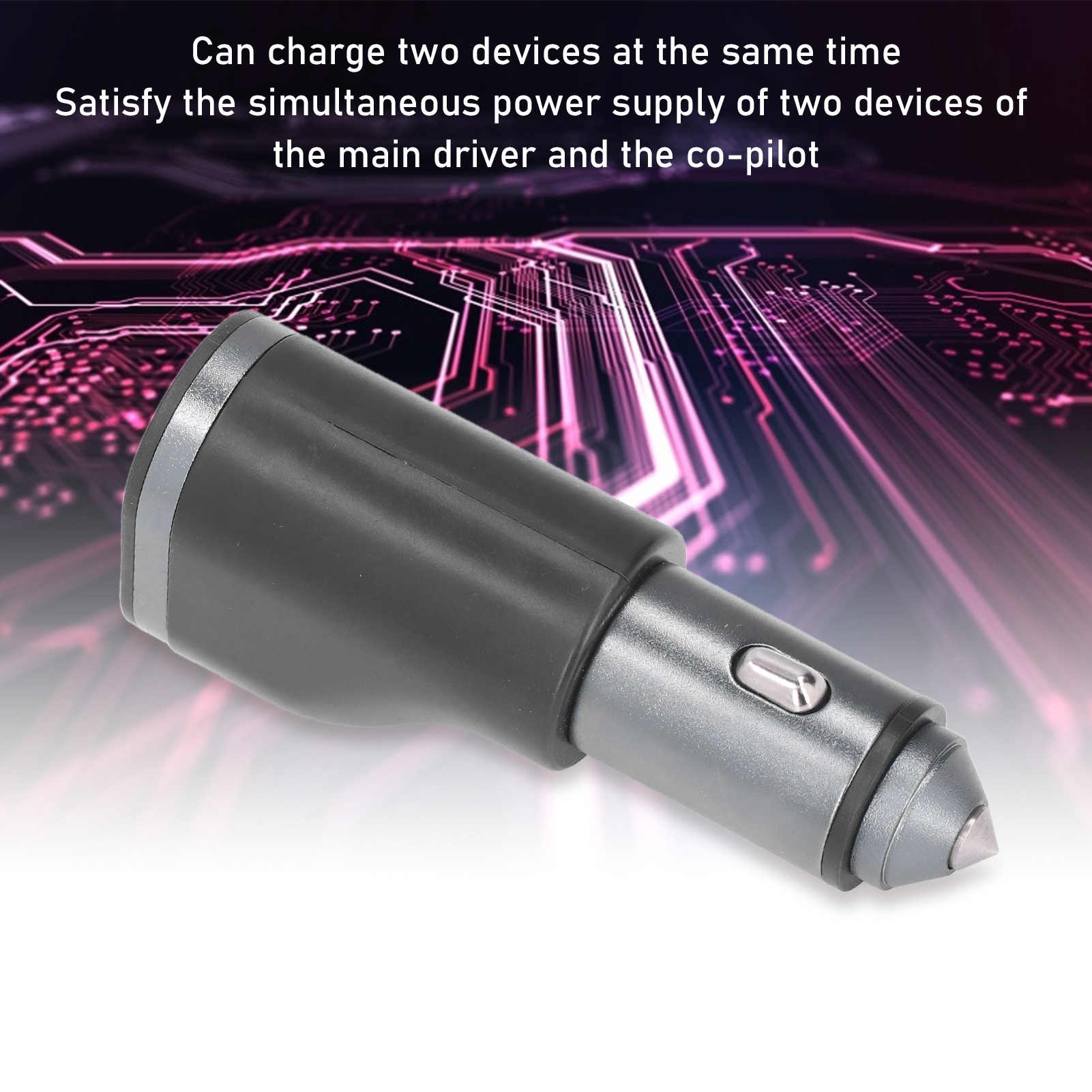 B Broken Window Function: When in danger, you can use the car charger to break the window directly; built in elasticity, so that the car charger and the cigarette lighter are in full contact without loosening