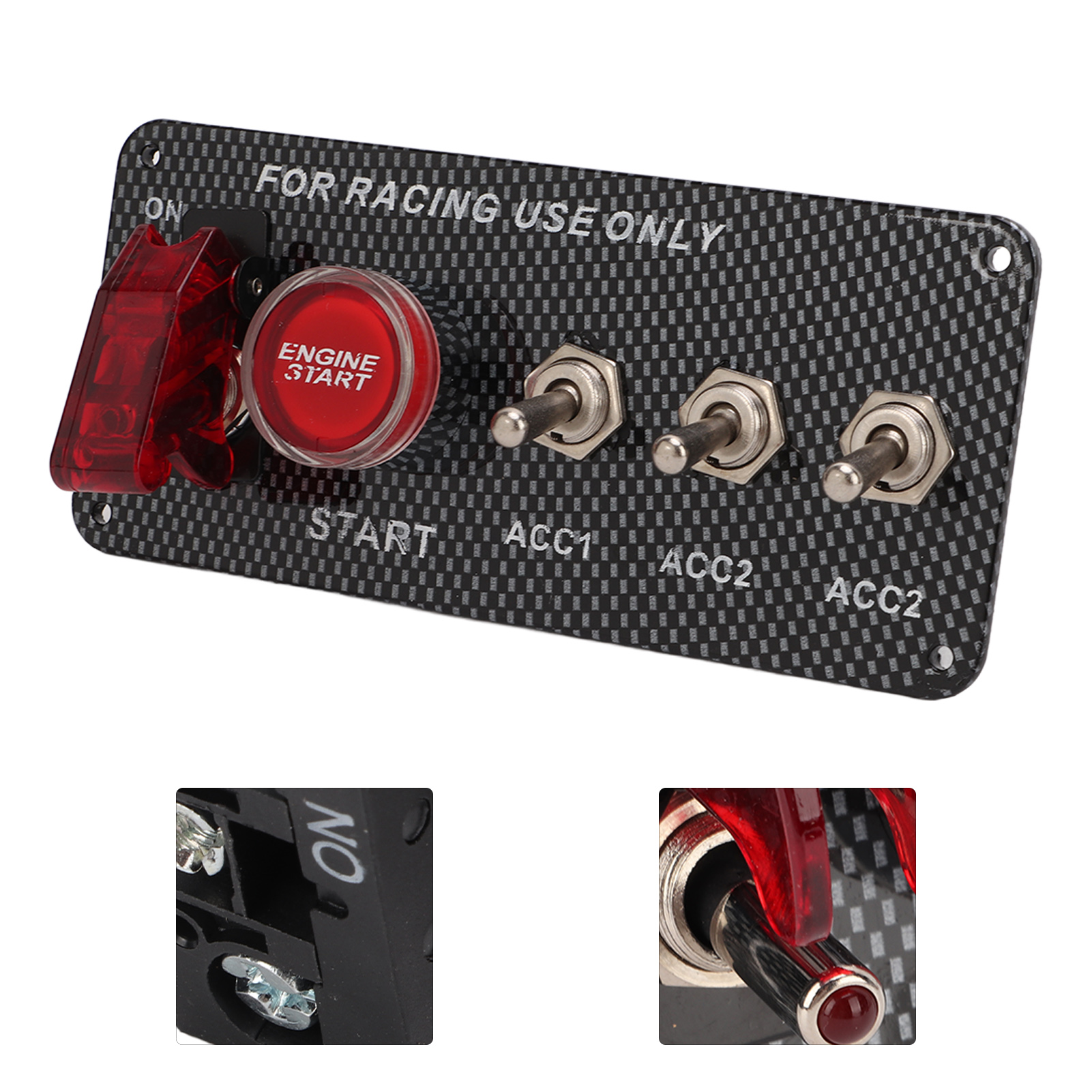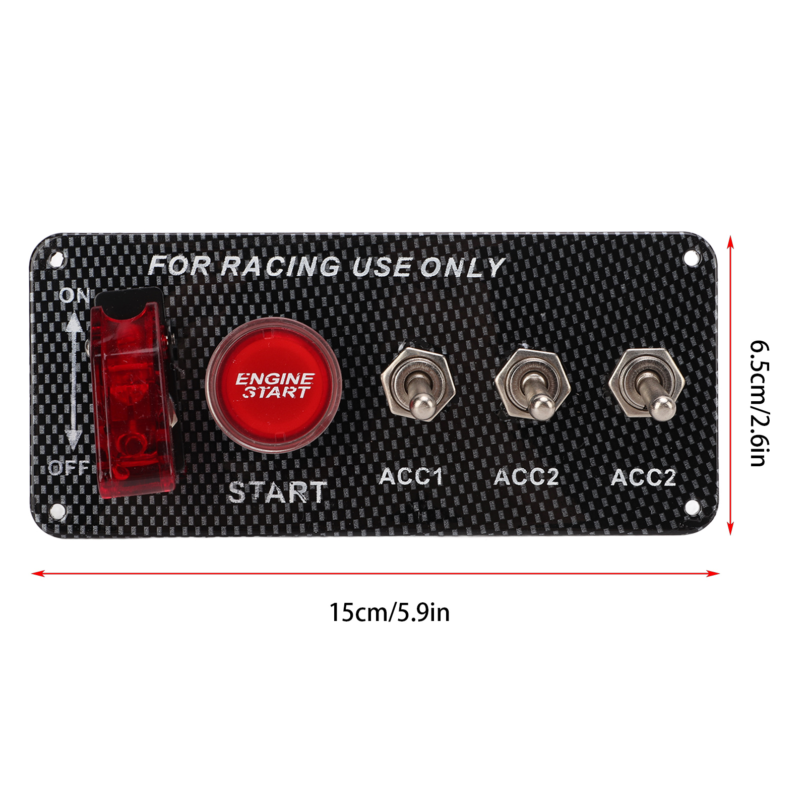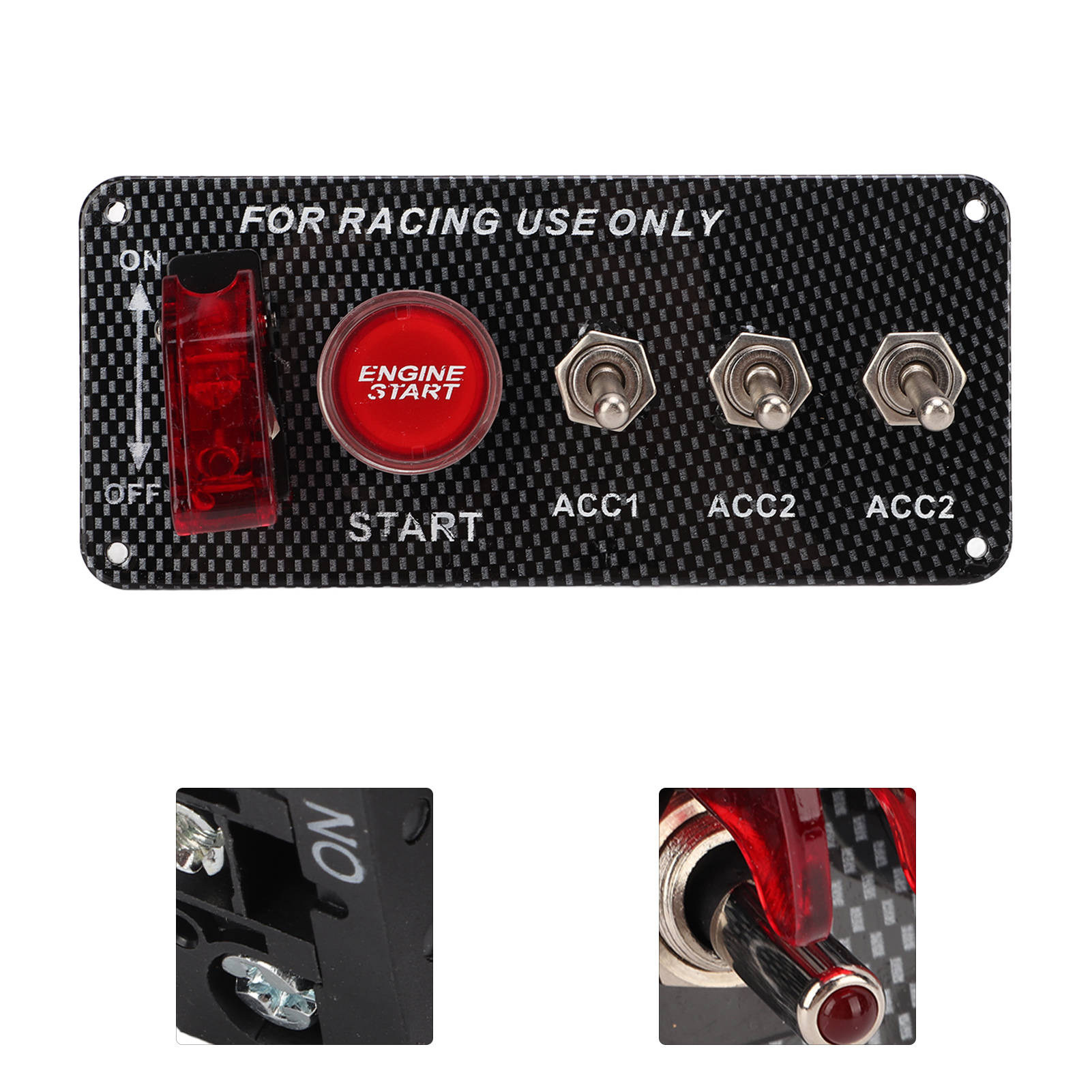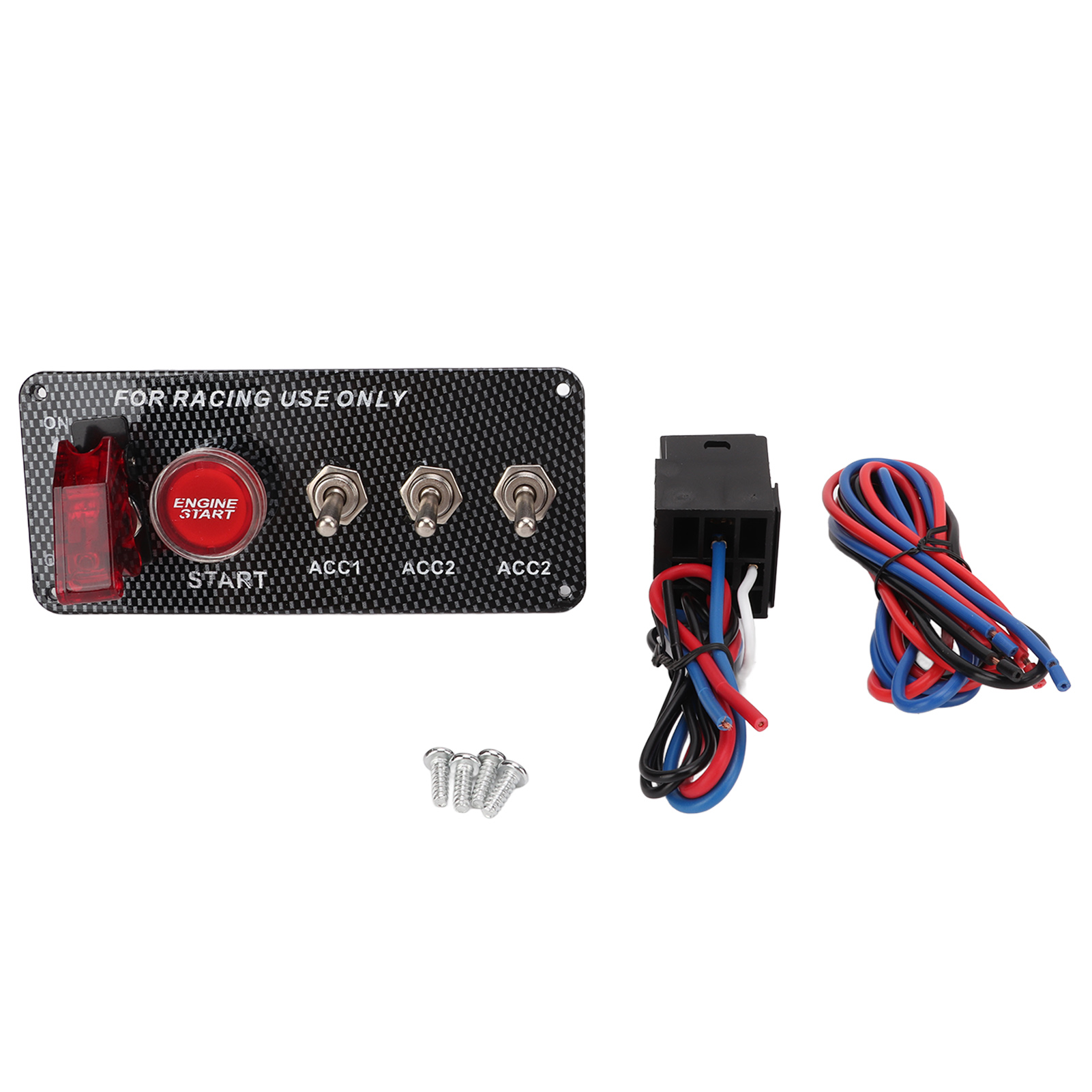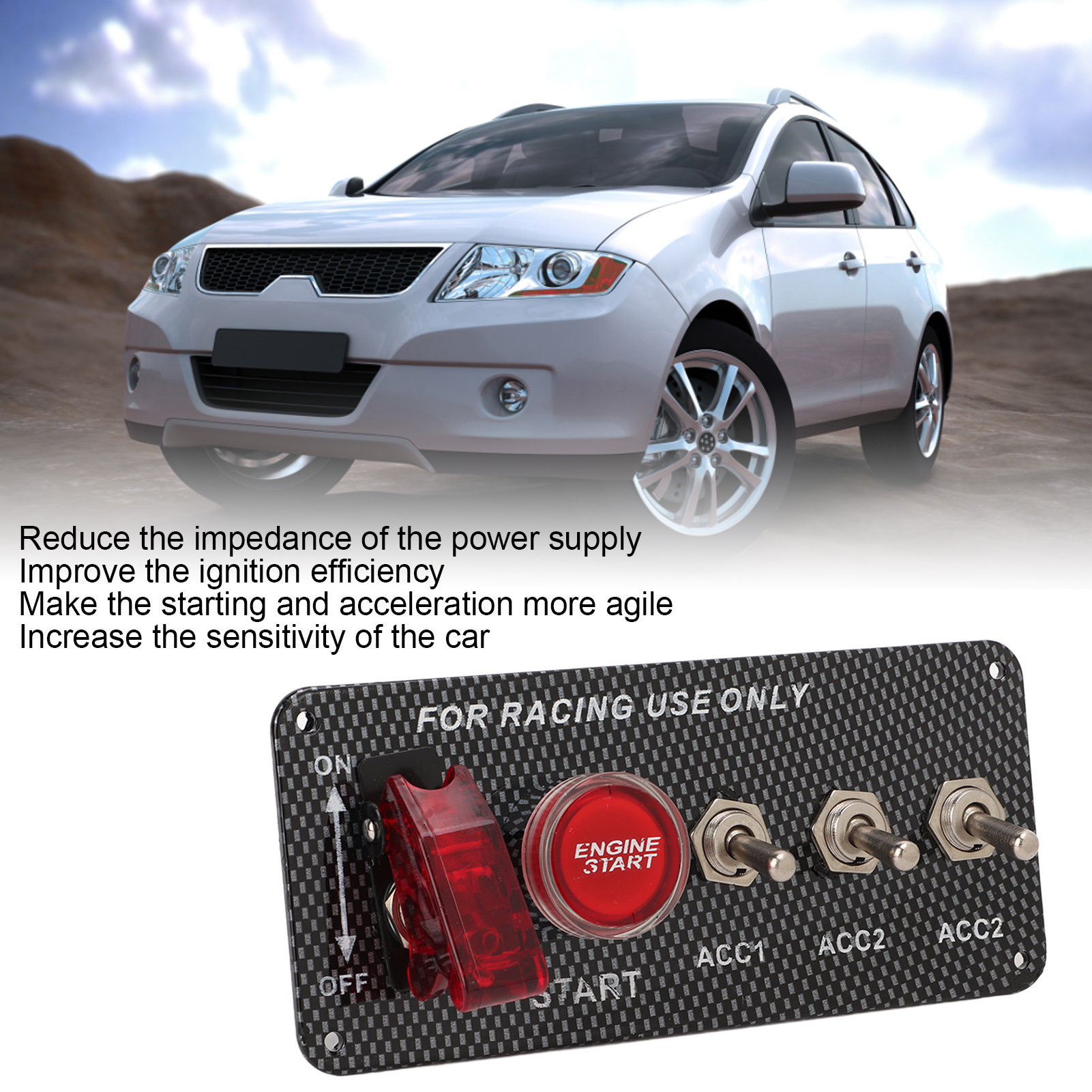 1、Excellent Performance: Reduce the impedance of the power supply, improve the ignition efficiency, make the starting and acceleration more agile, and increase the sensitivity of the car. 2、Wide Usage: Used to modify the control, starting or ignition, and brake control switches of the original car headlights, dome lights, fog lights and other automotive electrical appliances. 3、Carbon Fiber Style: The high quality engine ignition switch panel is designed with carbon fiber style appearance, looks exquisite and luxurious, well decorating your vehicles more eye catching. 4、High Quality Material: The ignition switch panel is made of high quality aluminum alloy material, which is strong and durable, not easy to wear and anging, has a long service life. 5、Easy to Install: The heavy duty engine push button toggle switch is extremely easy to install, no need to decode, plug and play, easy to use, greatly saving you time and effort.
