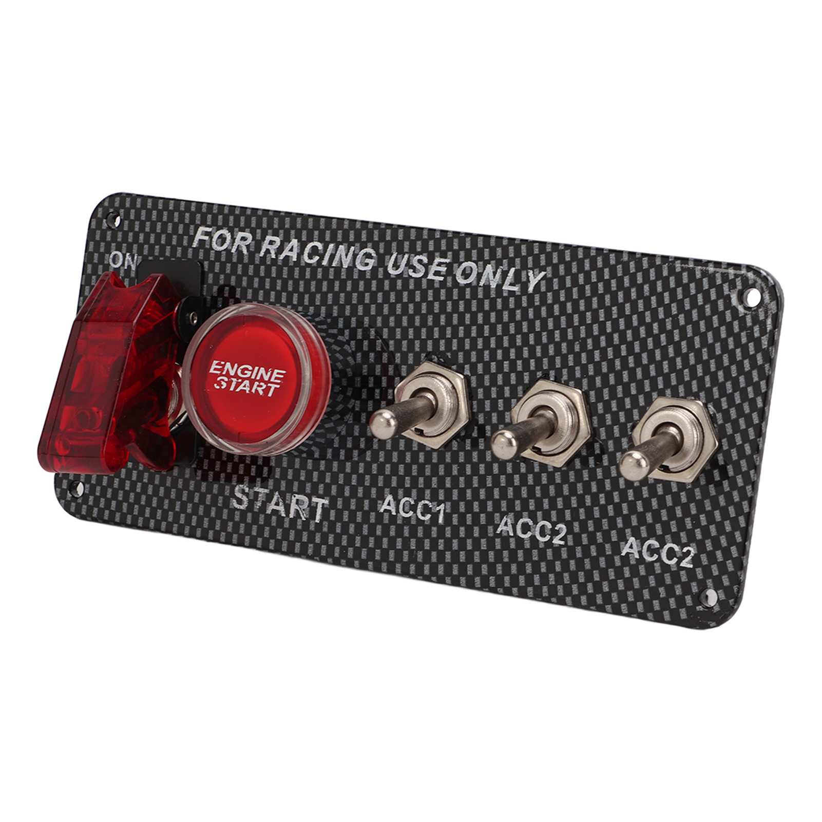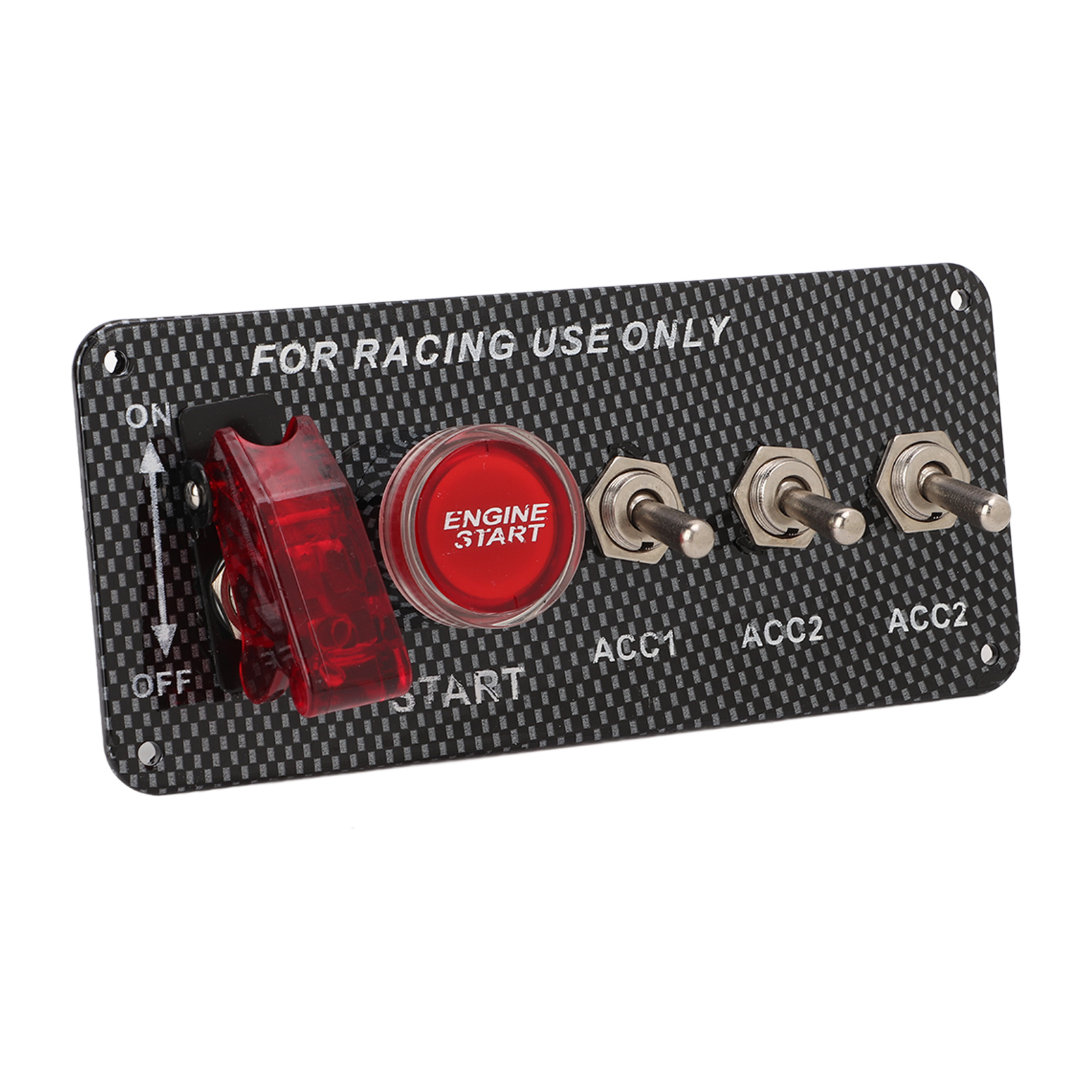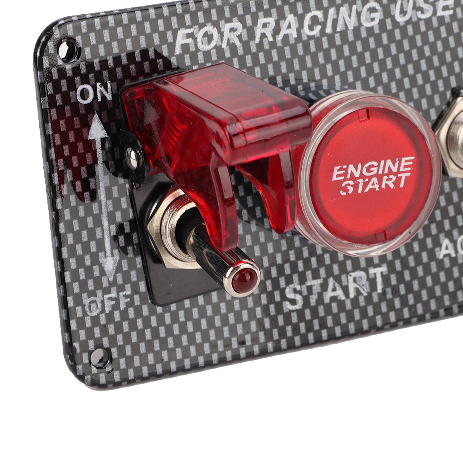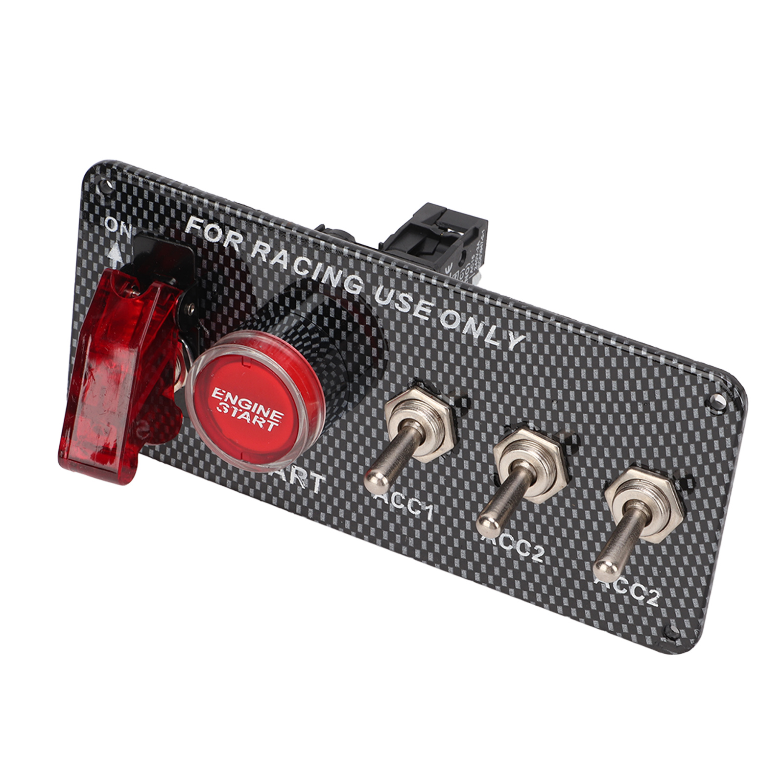 1、Excellent Performance: Reduce the impedance of the power supply, improve the ignition efficiency, make the starting and acceleration more agile, and increase the sensitivity of the car. 2、Wide Usage: Used to modify the control, starting or ignition, and brake control switches of the original car headlights, dome lights, fog lights and other automotive electrical appliances. 3、Carbon Fiber Style: The high quality engine ignition switch panel is designed with carbon fiber style appearance, looks exquisite and luxurious, well decorating your vehicles more eye catching. 4、High Quality Material: The ignition switch panel is made of high quality aluminum alloy material, which is strong and durable, not easy to wear and anging, has a long service life. 5、Easy to Install: The heavy duty engine push button toggle switch is extremely easy to install, no need to decode, plug and play, easy to use, greatly saving you time and effort.