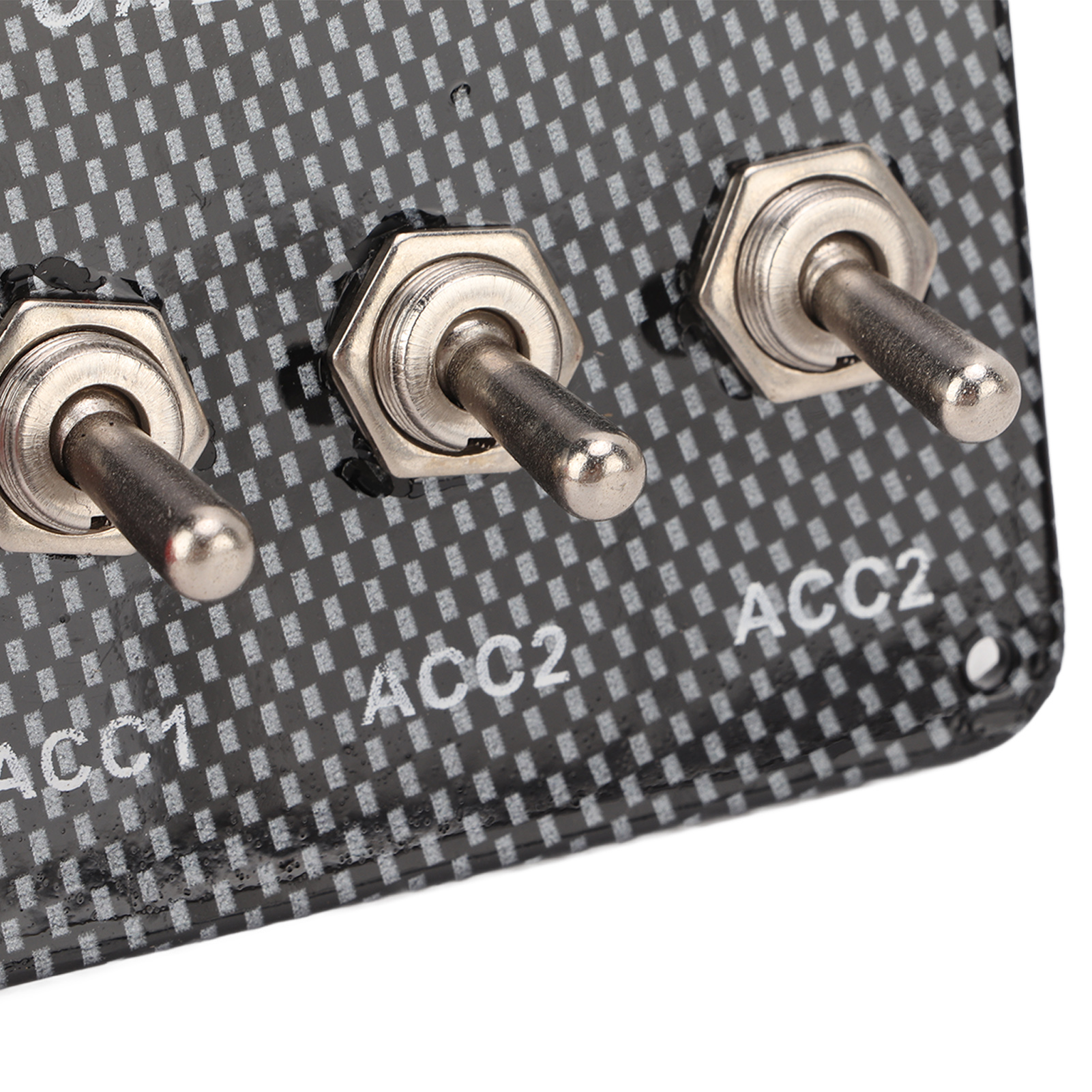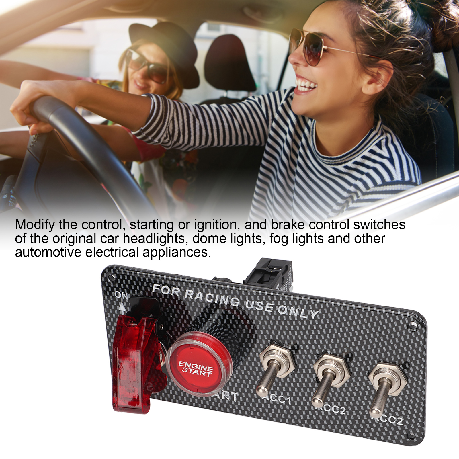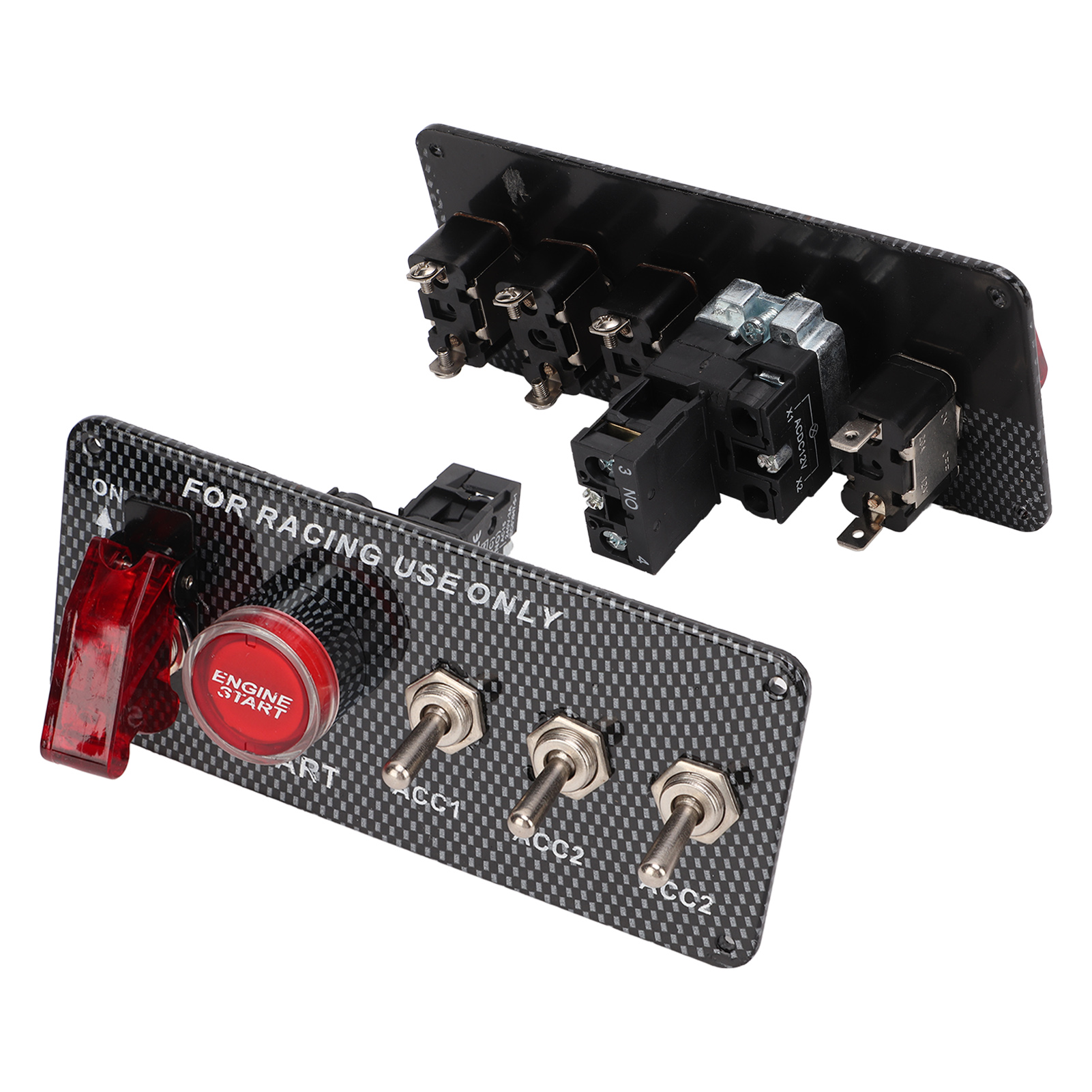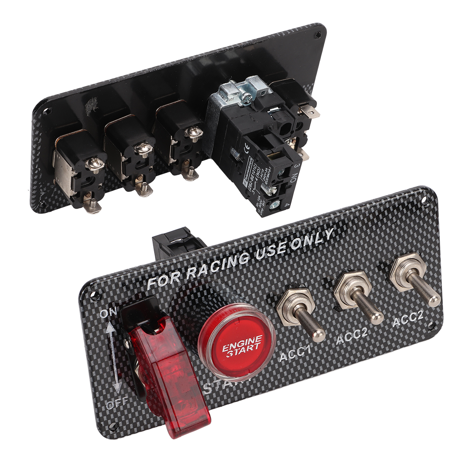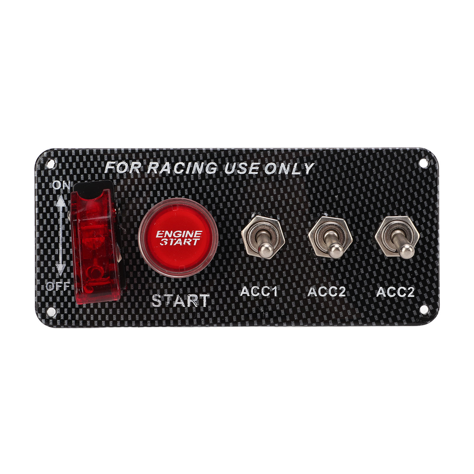 1、Excellent Performance: Reduce the impedance of the power supply, improve the ignition efficiency, make the starting and acceleration more agile, and increase the sensitivity of the car. 2、Wide Usage: Used to modify the control, starting or ignition, and brake control switches of the original car headlights, dome lights, fog lights and other automotive electrical appliances. 3、Carbon Fiber Style: The high quality engine ignition switch panel is designed with carbon fiber style appearance, looks exquisite and luxurious, well decorating your vehicles more eye catching. 4、High Quality Material: The ignition switch panel is made of high quality aluminum alloy material, which is strong and durable, not easy to wear and anging, has a long service life. 5、Easy to Install: The heavy duty engine push button toggle switch is extremely easy to install, no need to decode, plug and play, easy to use, greatly saving you time and effort.