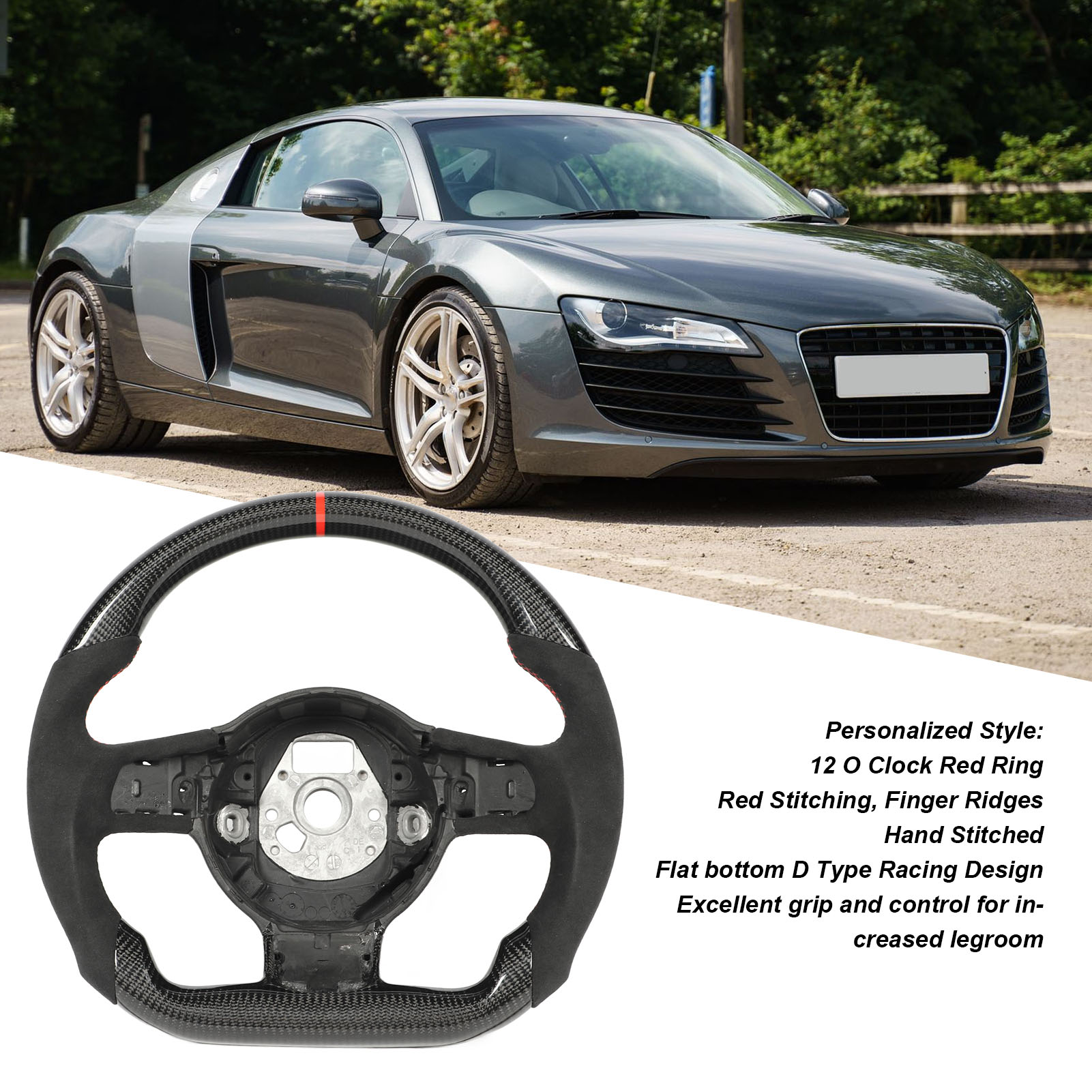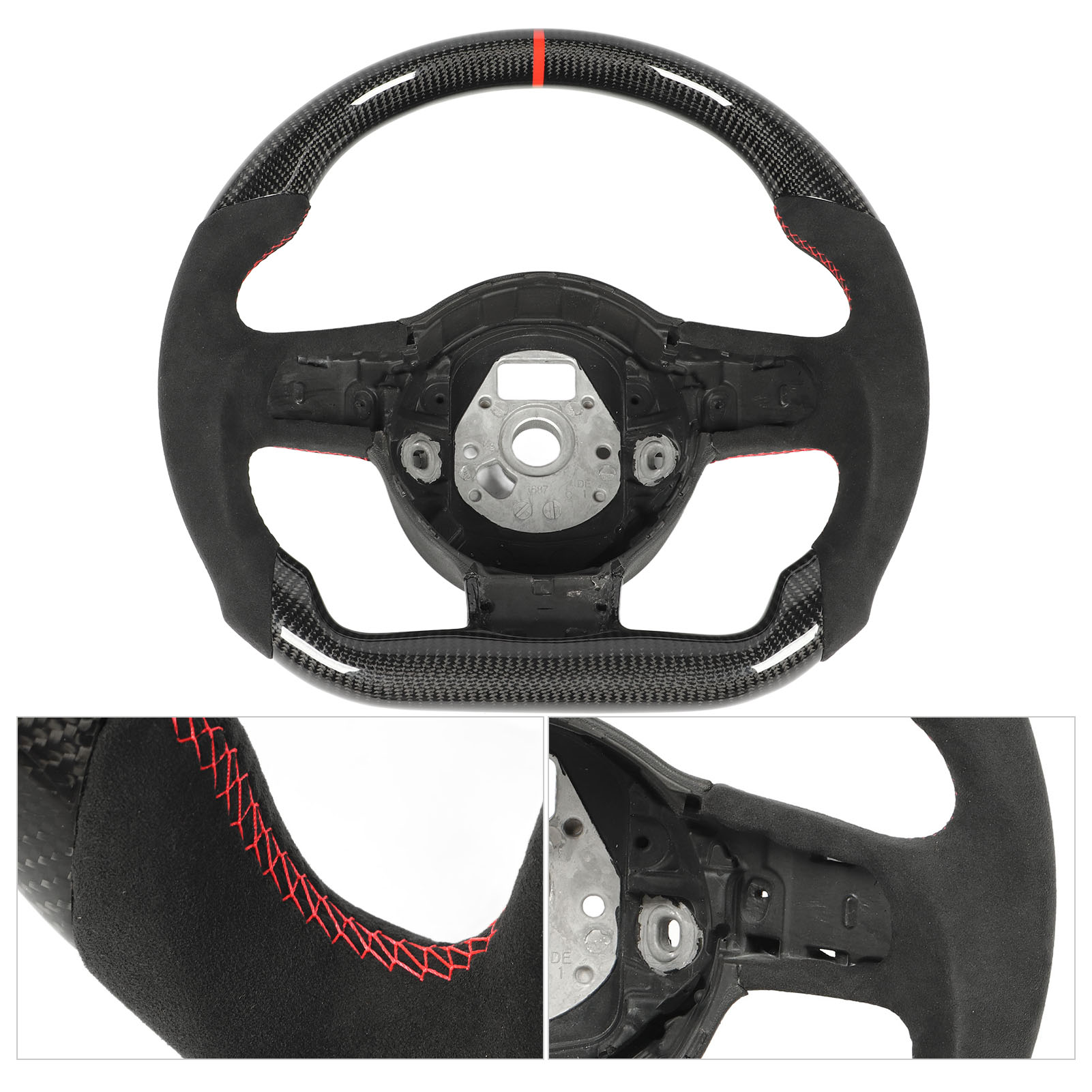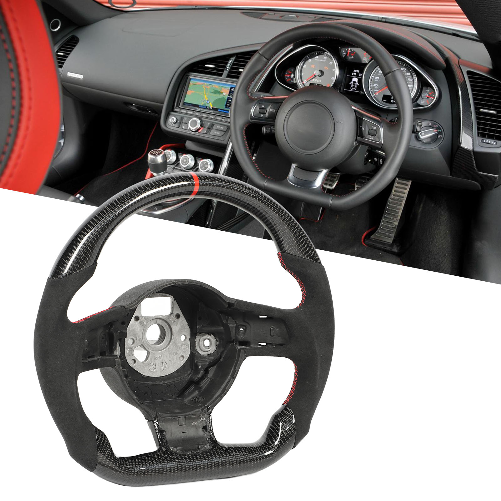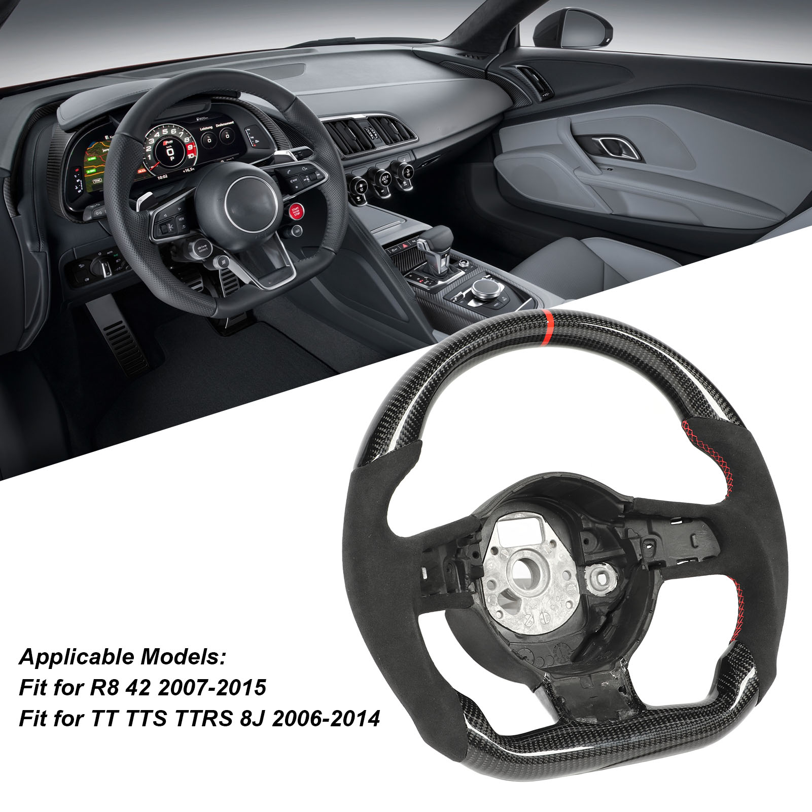 Custom Carbon Fiber Steering Wheel Suede Red Stitching Fit For TT TTRS 8J MK2 R8 MK1 2007 to 2015
