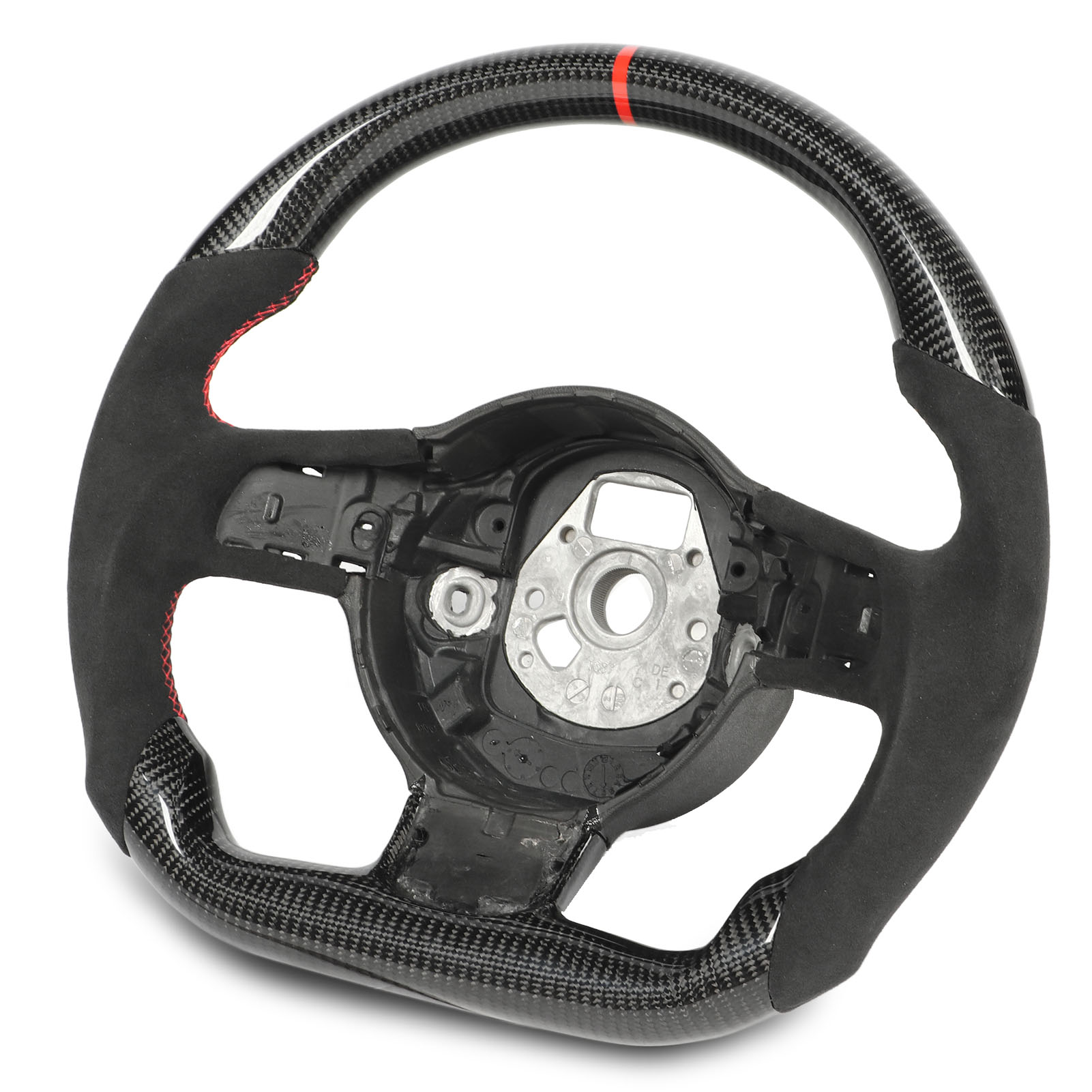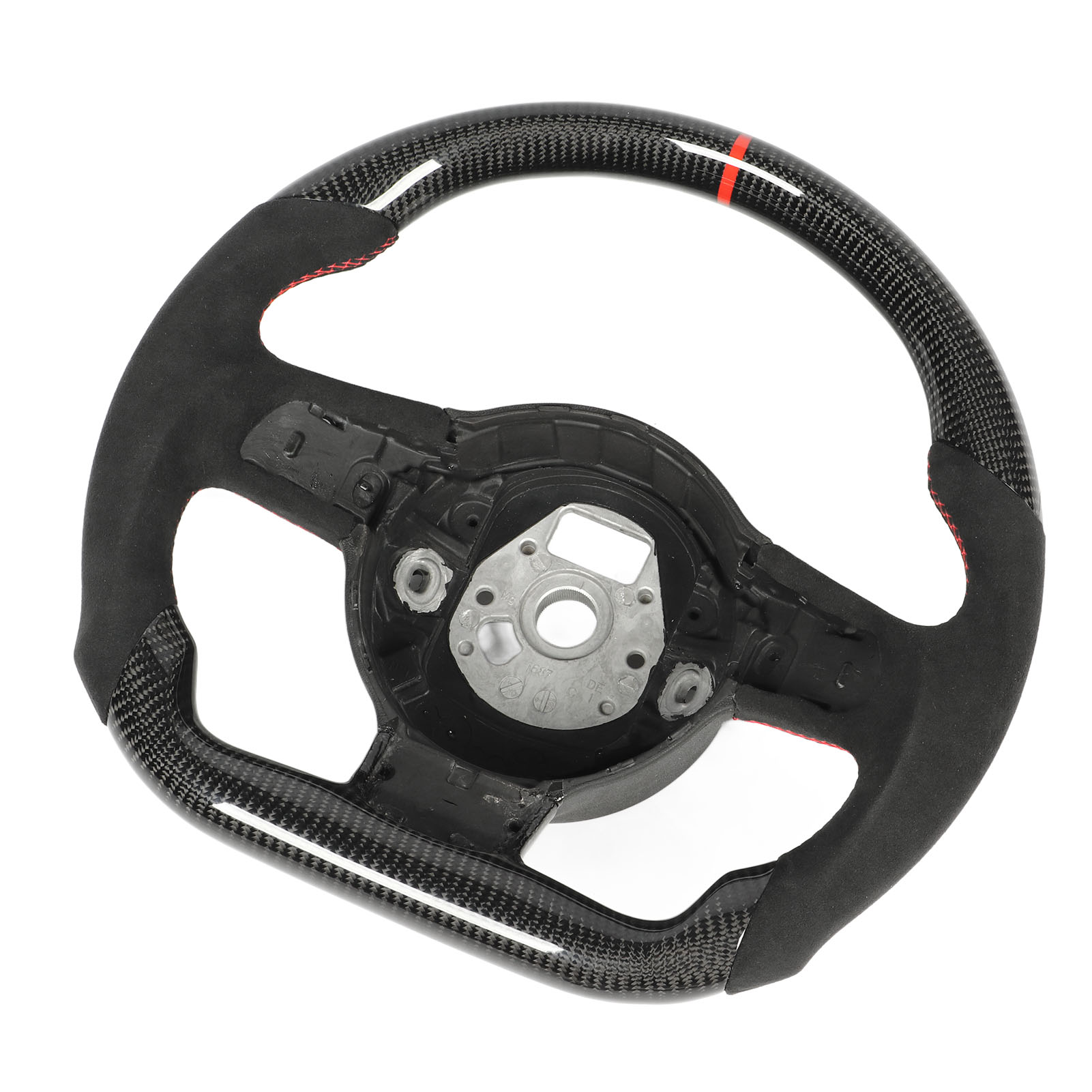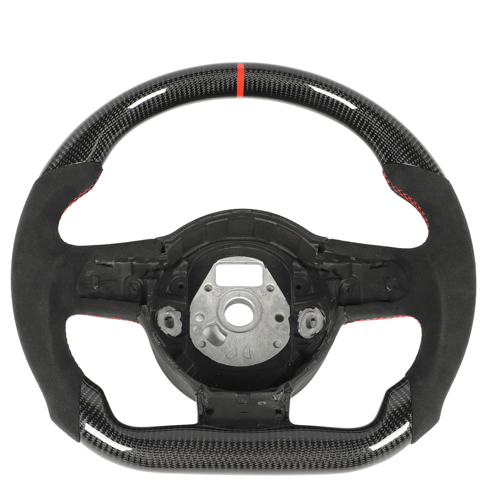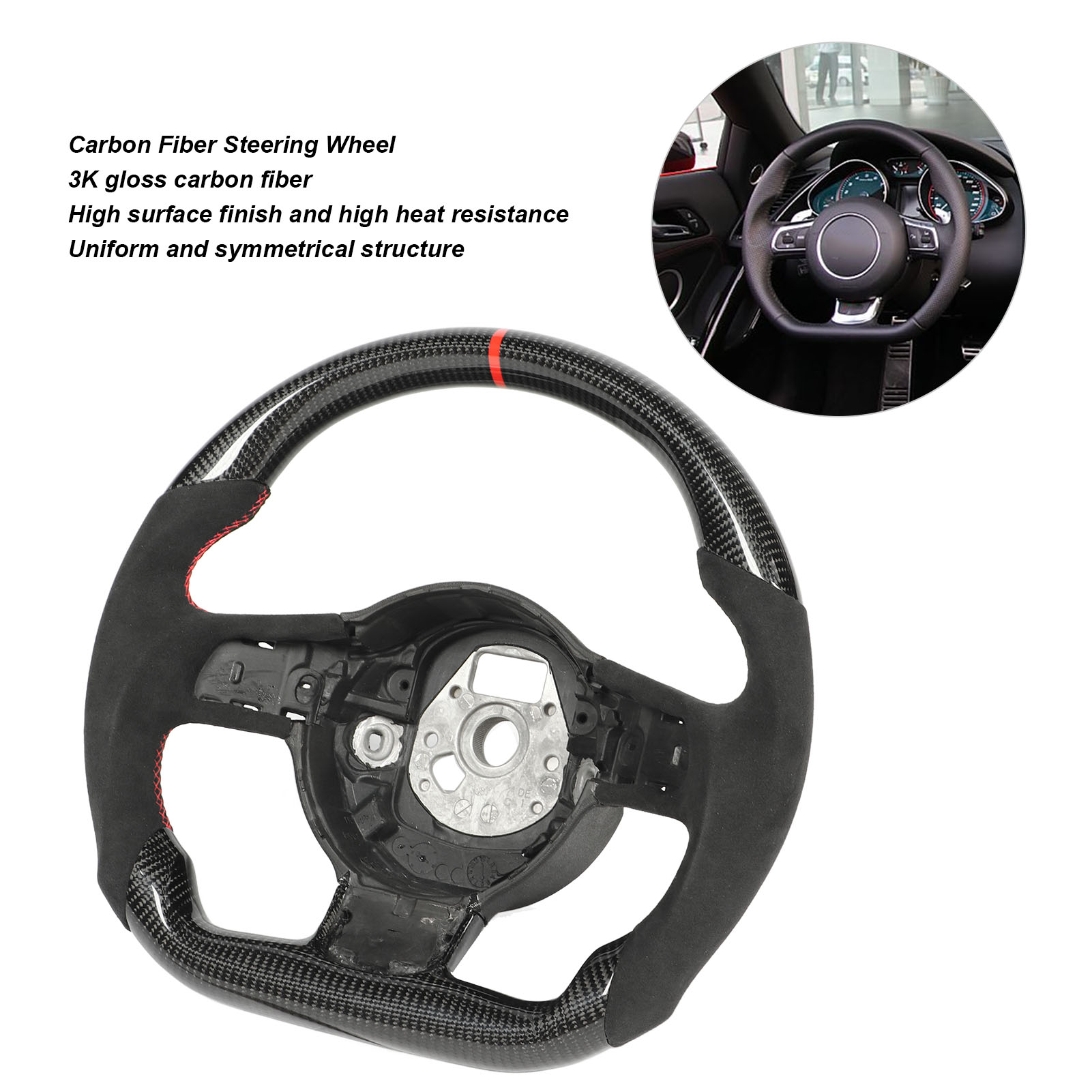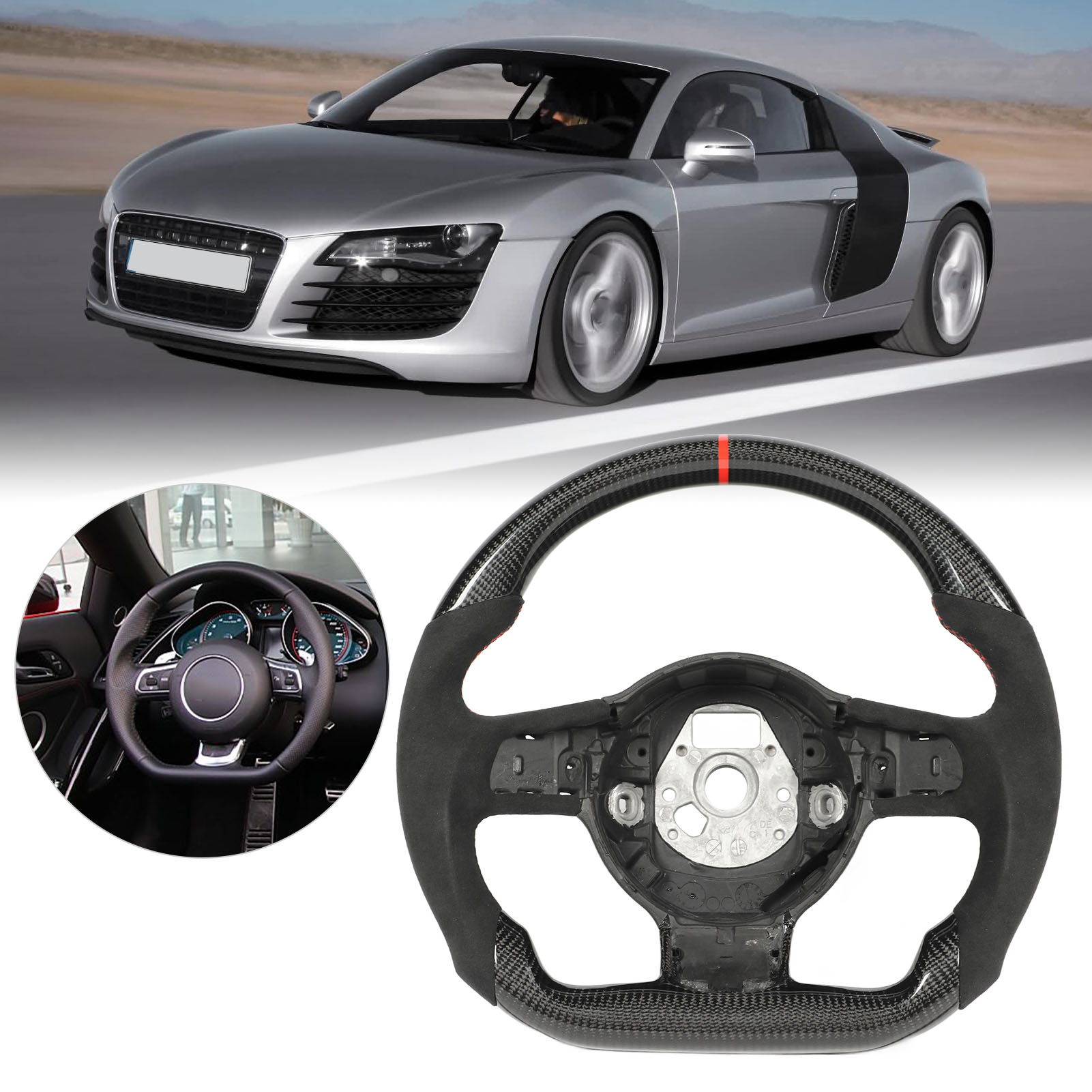 Custom Carbon Fiber Steering Wheel Suede Red Stitching Fit For TT TTRS 8J MK2 R8 MK1 2007 to 2015