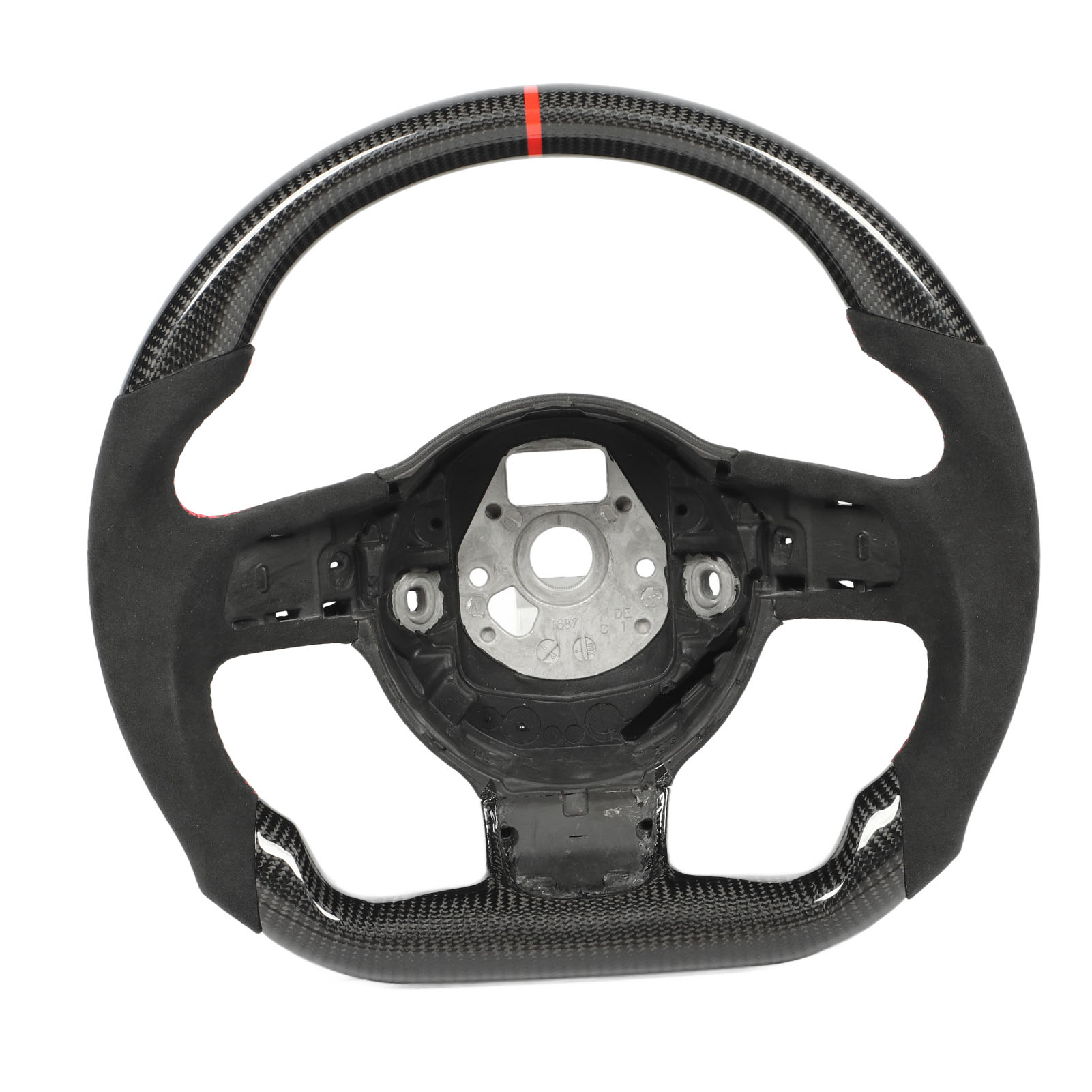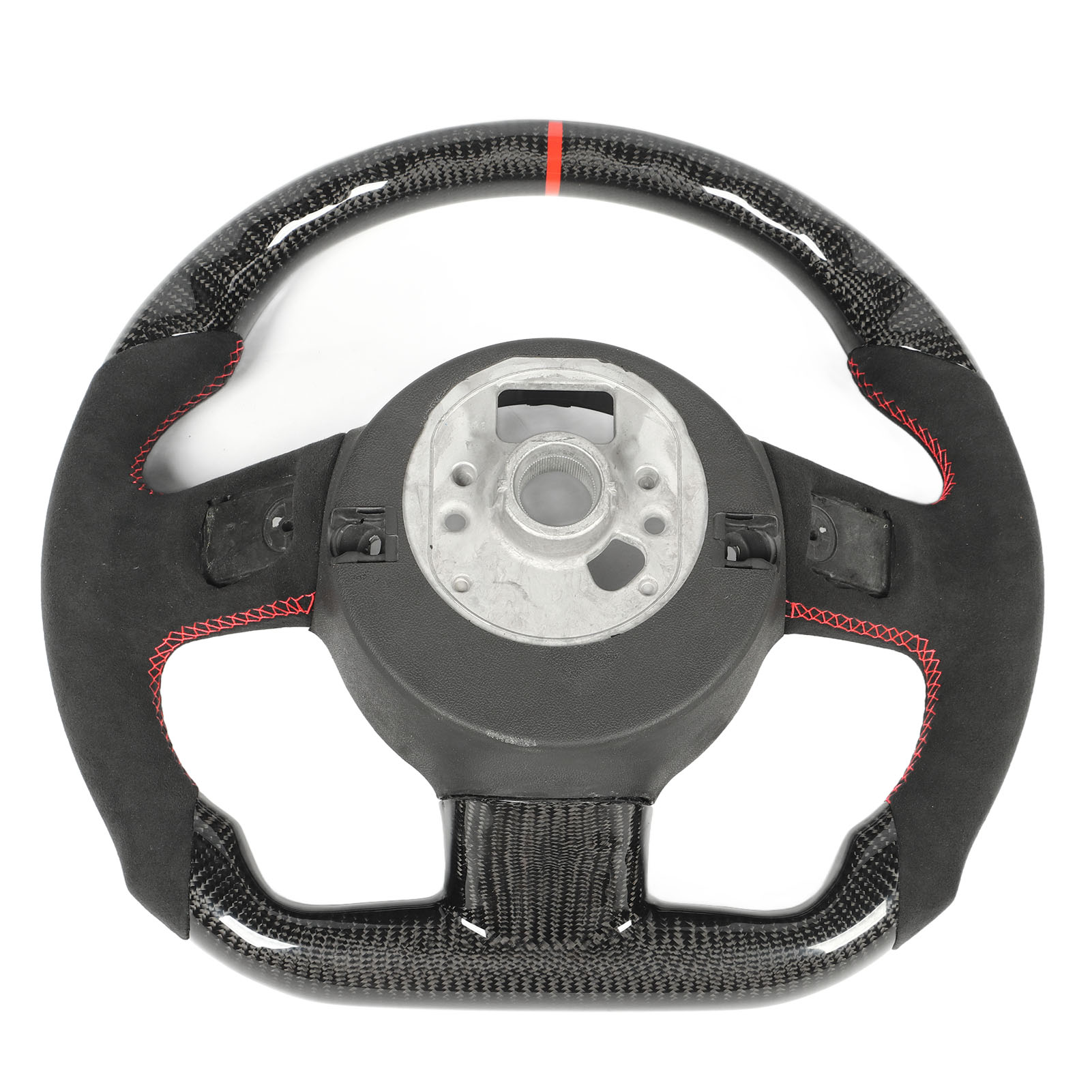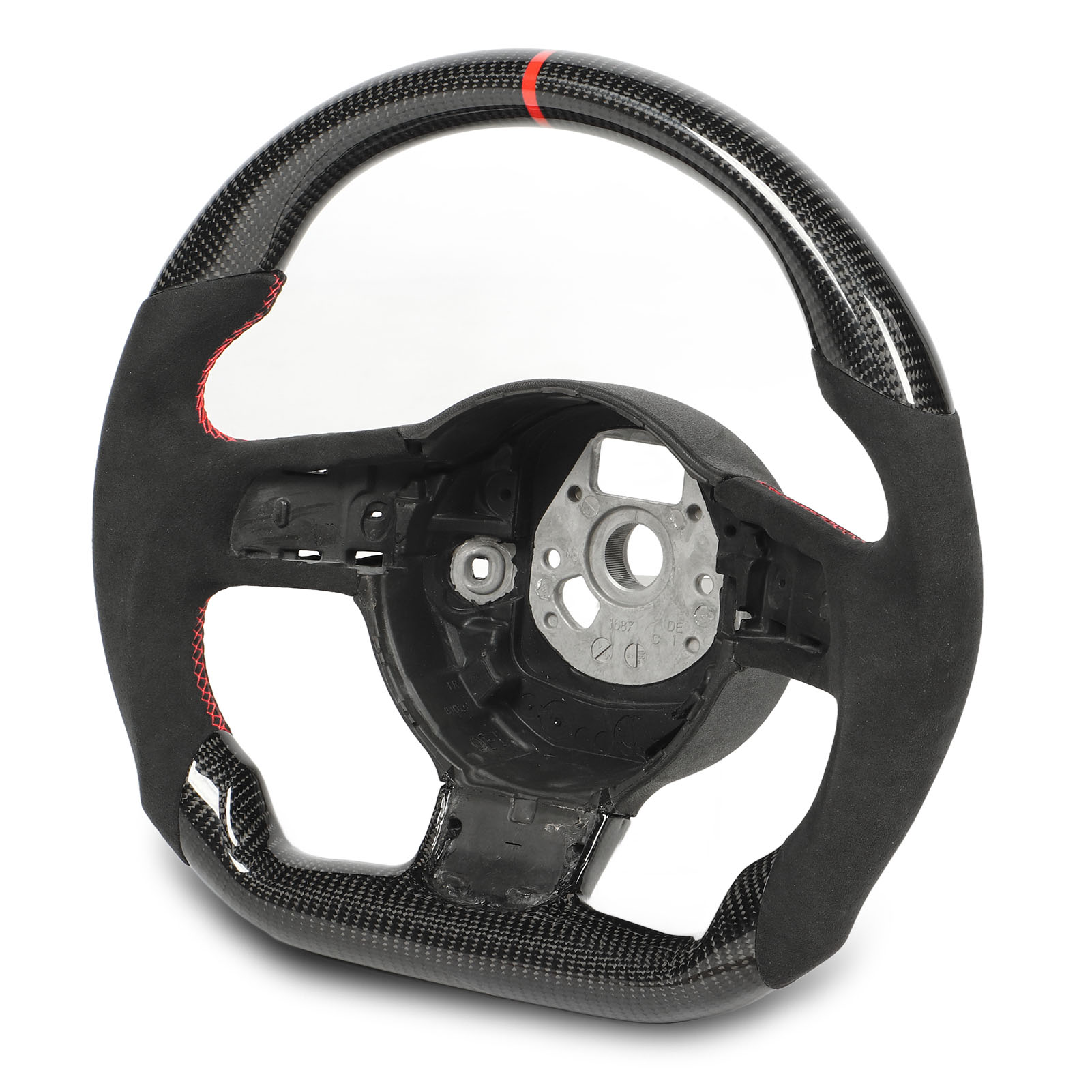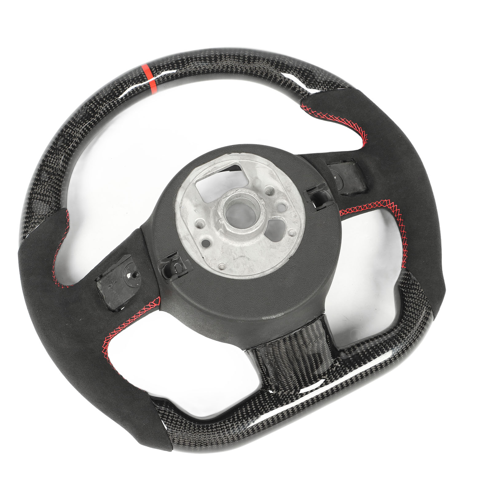 Custom Carbon Fiber Steering Wheel Suede Red Stitching Fit For TT TTRS 8J MK2 R8 MK1 2007 to 2015