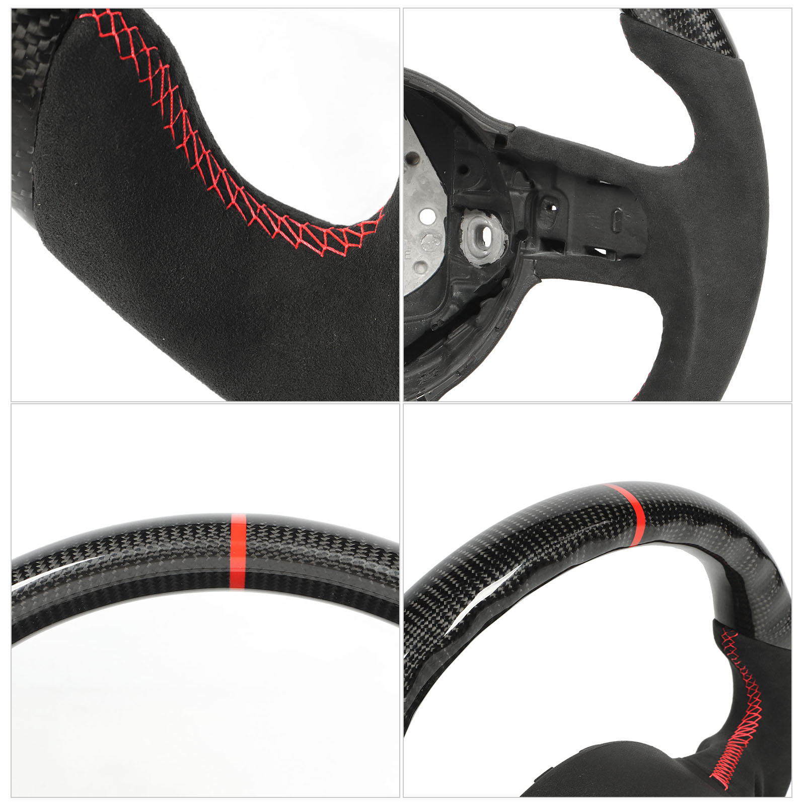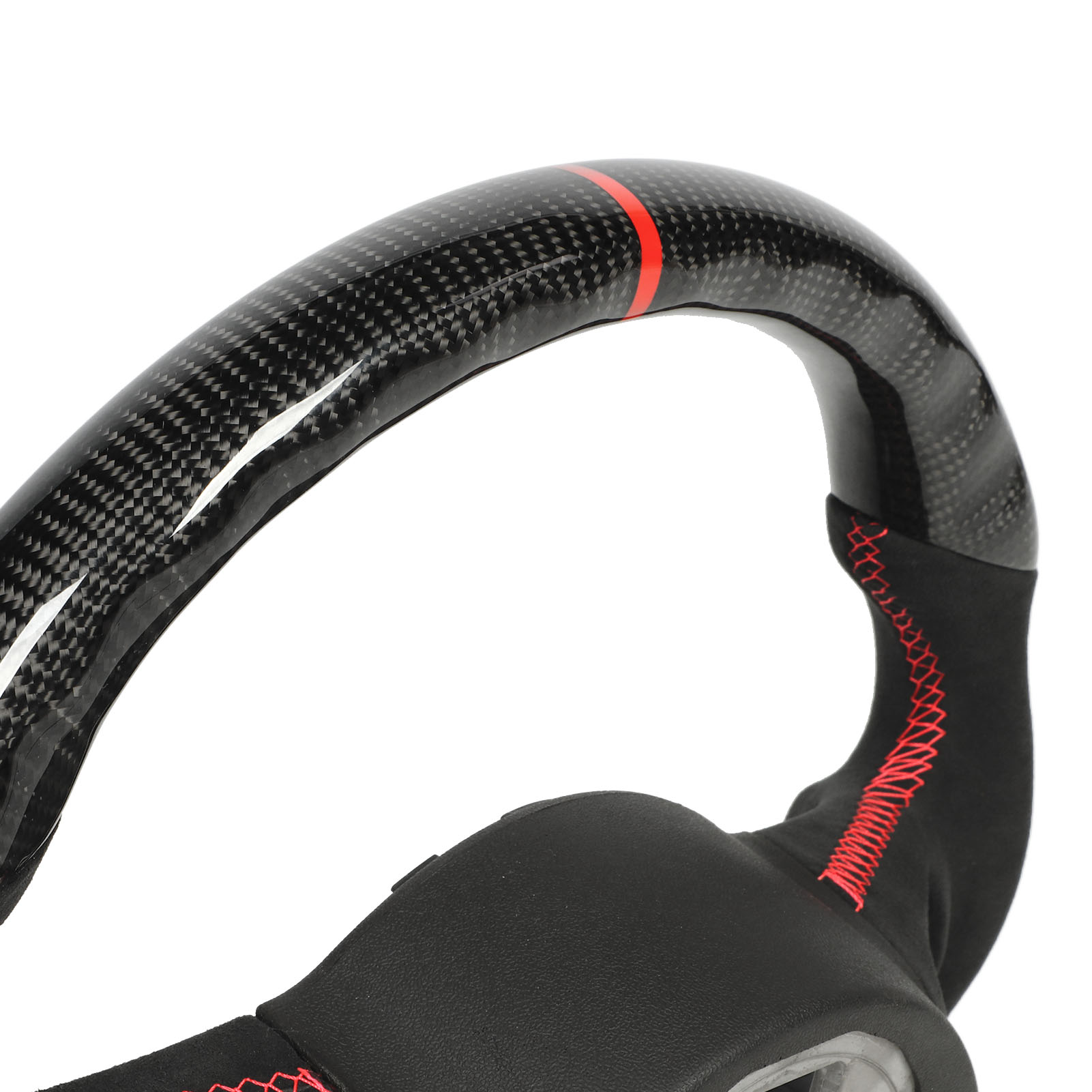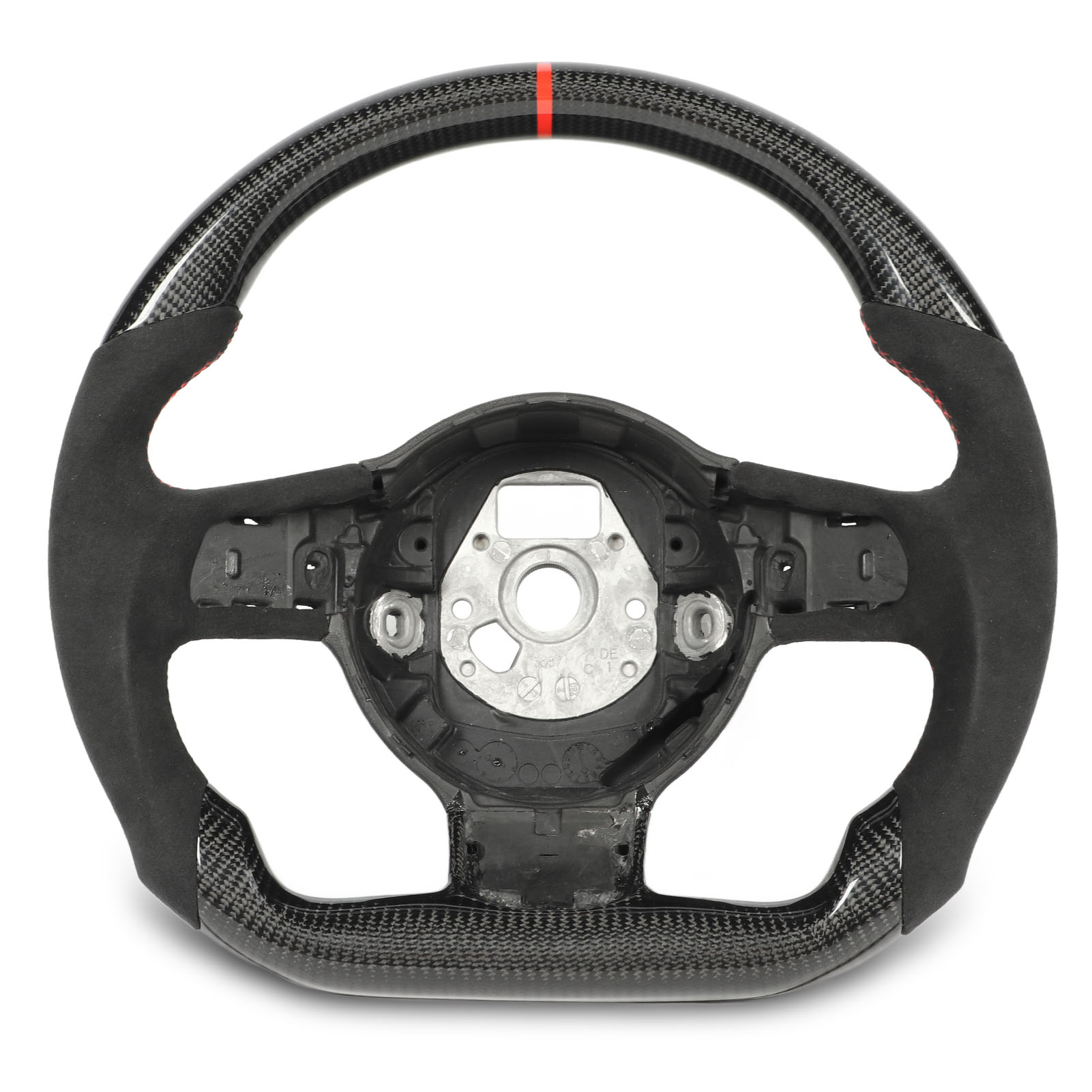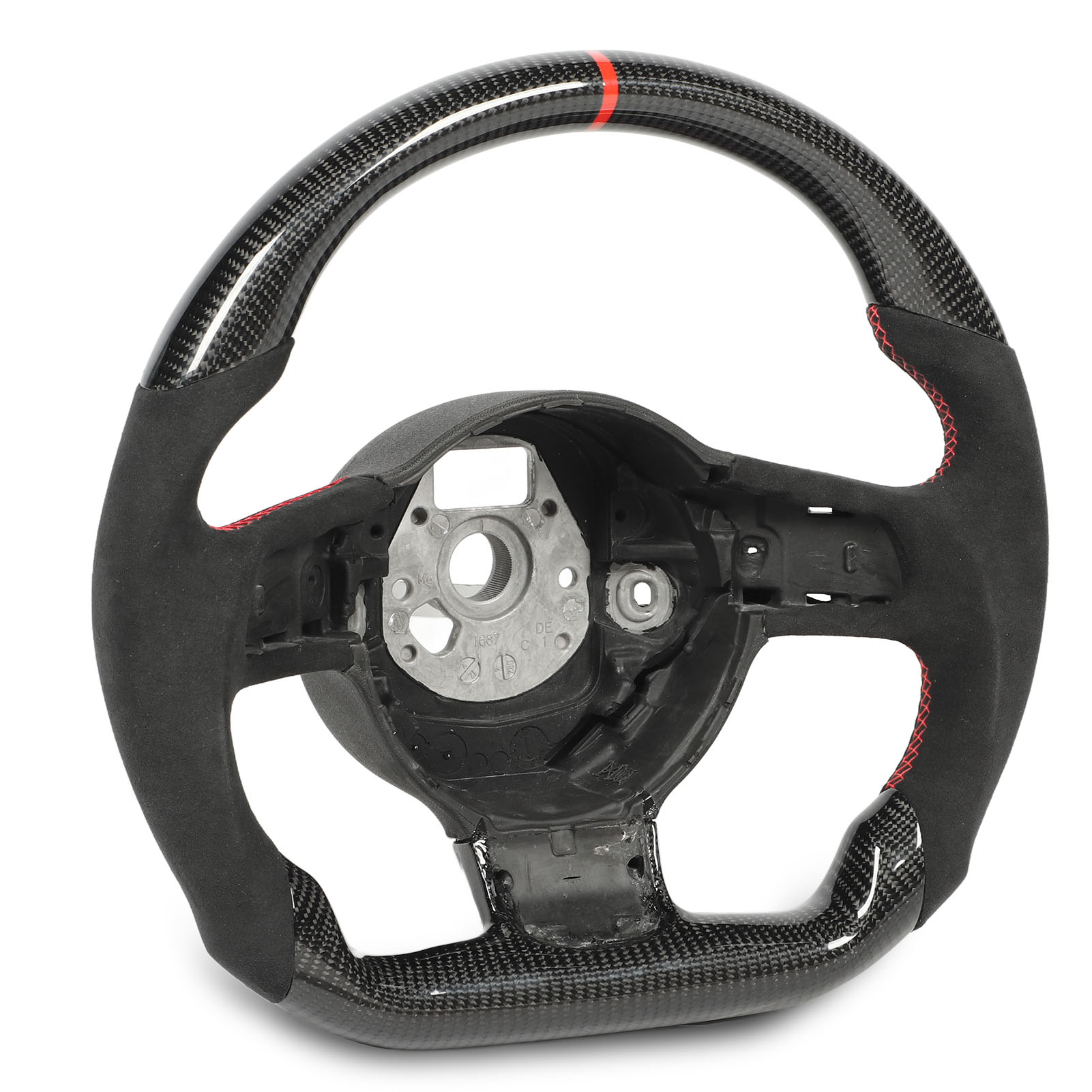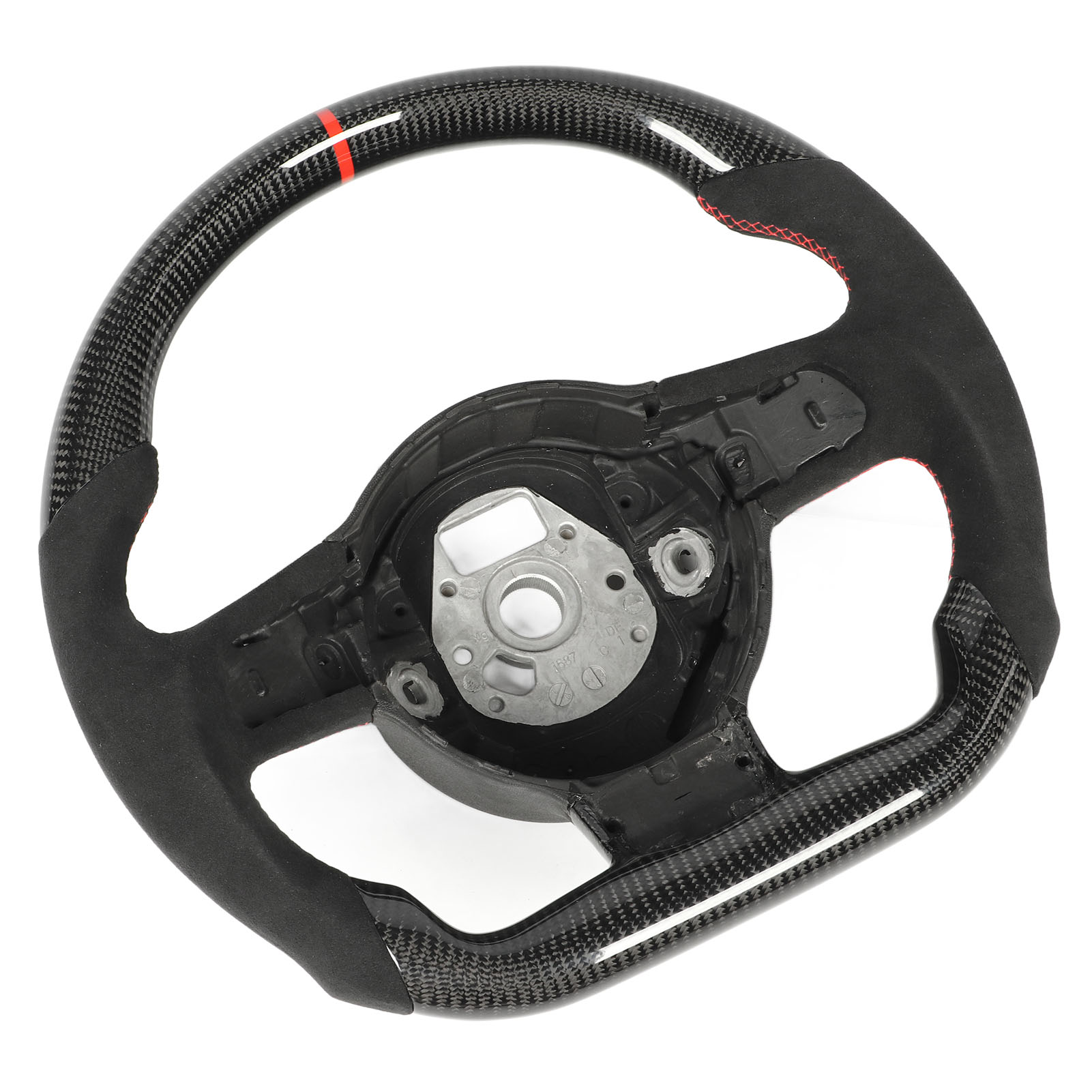 Custom Carbon Fiber Steering Wheel Suede Red Stitching Fit For TT TTRS 8J MK2 R8 MK1 2007 to 2015