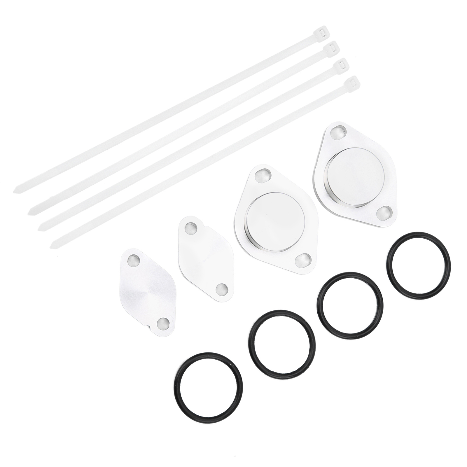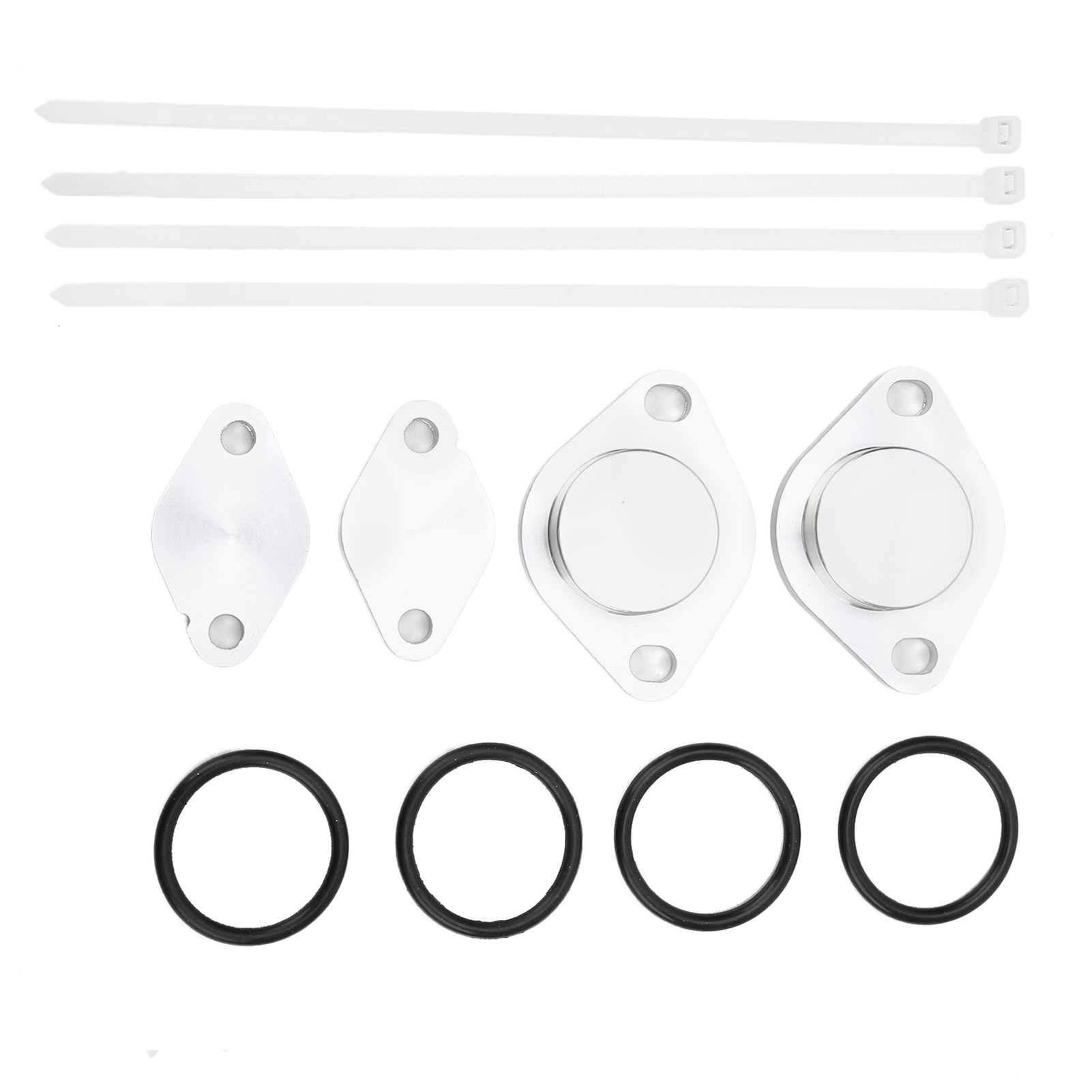 1、EGR blanking kit, including 4pcs plates, 4pcs O‑rings and 4pcs cable ties, easy to assemble. 2、The plate can block EGR tightly. The rubber O‑ring has a good sealing effect, it is not easy to leak. 3、Made of high quality aluminum material, smooth surface without burrs, anti‑corrosion and durable. 4、Original standard, direct replacement for the old or damaged EGR blanking kit, reliable to use. 5、Manufactured according to the original production specifications, in line with strict quality standards.