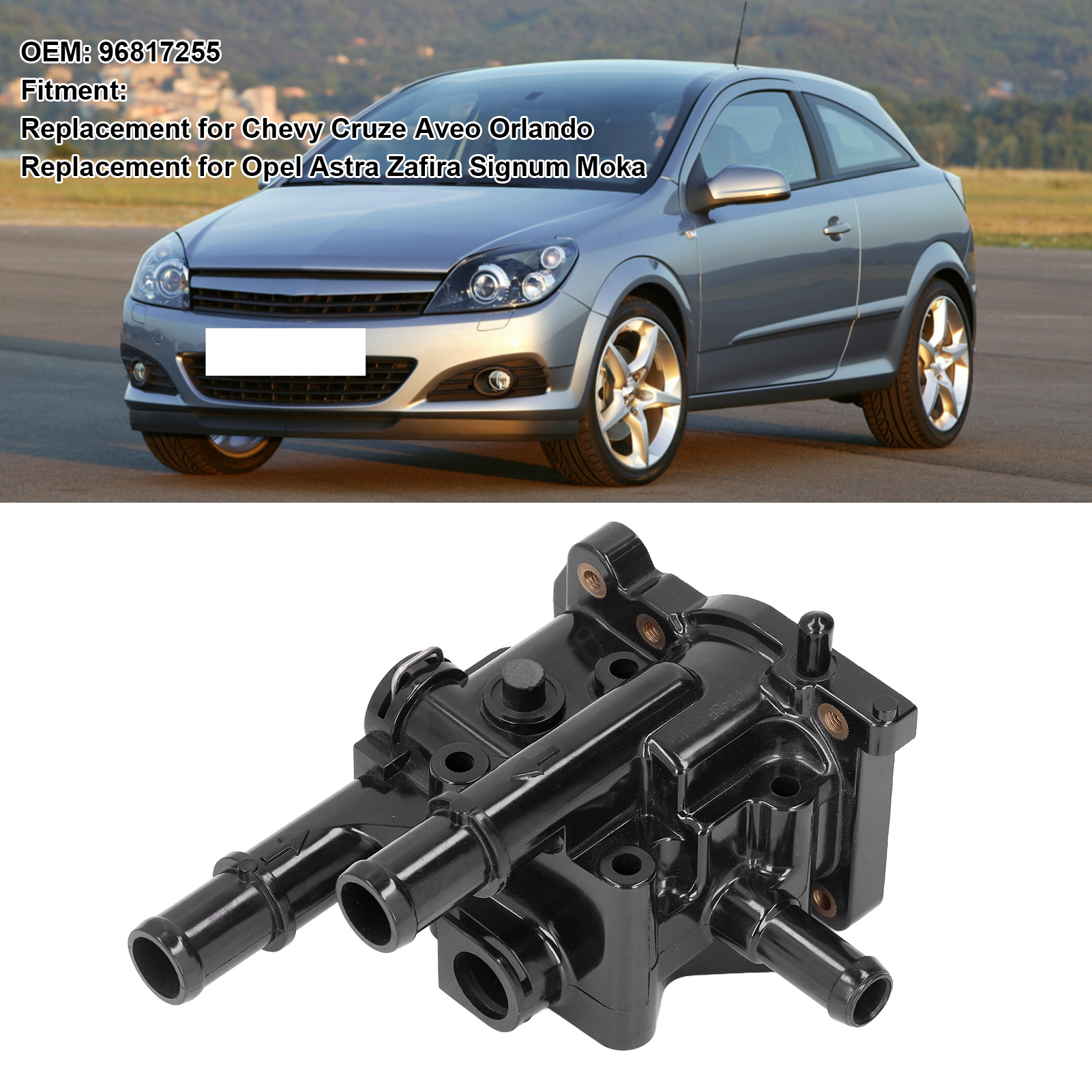 Fitment:1、Part Number: According to the original factory specifications, replacing reference OEM number is 96817255. 2、Applicable Model: Thermostat housing cover, replacement for Chevy Cruze Aveo Orlando, replacement for Opel Astra Zafira Signum Moka. 3、Function: Thermostat controls the temperature levels depending on the vehicle's driving conditions/load,Fix the check engine light issue and no engine hiccups problem and engine overheating or over‑cooling problem. 4、Durable Material: Made of high‑quality plastic, has a good insulation effect and long service life. 5、Original Standard: Direct replacement for the old or broken one. Easy to install, no complicated tools required.