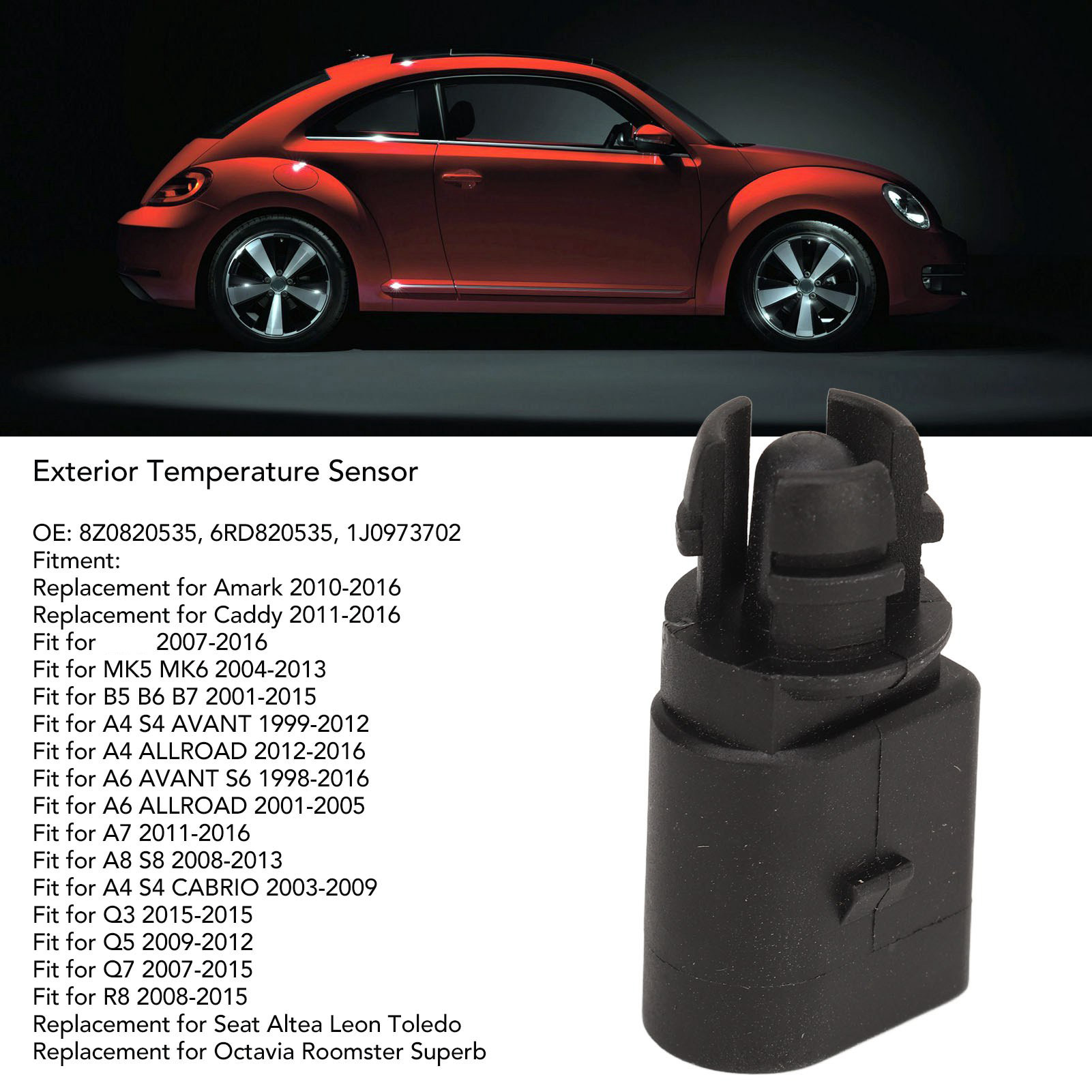 1、Vehicle Fitment: Exterior temperature sensor is replacement for Amark 2010‑2016, replacement for Caddy 2011‑2016, fit for MK5 MK6 2004‑2013, fit for B5 B6 B7 2001‑2015, etc. 2、OE Number: Outside air temperature sensor replace part number are 8Z0820535, 6RD820535, 1J0973702. Please check the number before ordering. 3、Reliable Performance: The car's external temperature sensor provides precise and reliable temperature outside the vehicle, and ensure the safety of the vehicle. 4、Long Durability: Reliable ABS structure sensor ensures stability, compact design is not prone to damage and cracking, and has a long life. 5、Ideal Replacement: Temperature sensor can be used to replace the old and damaged one of the original vehicle to improve the riding experience.