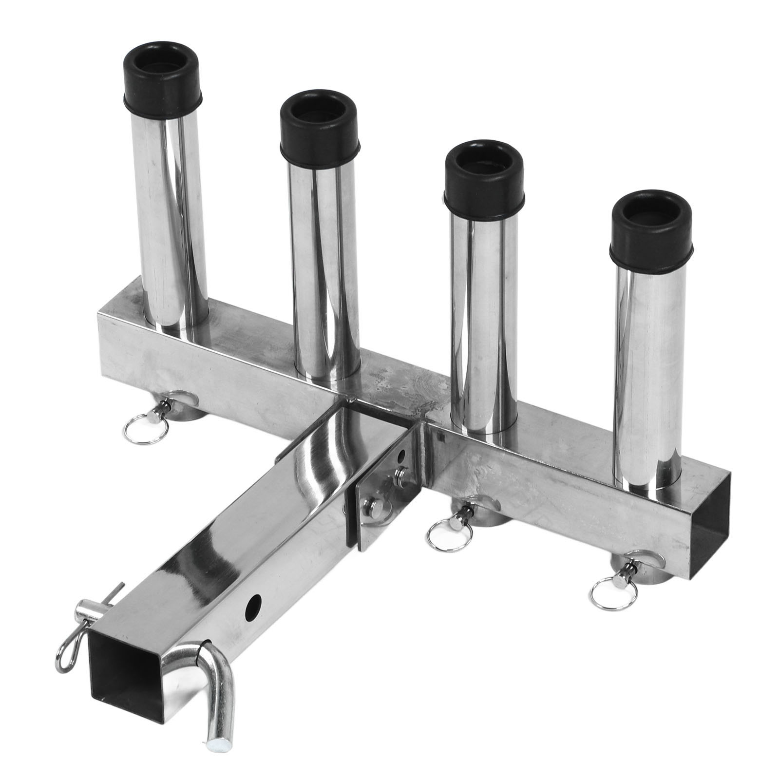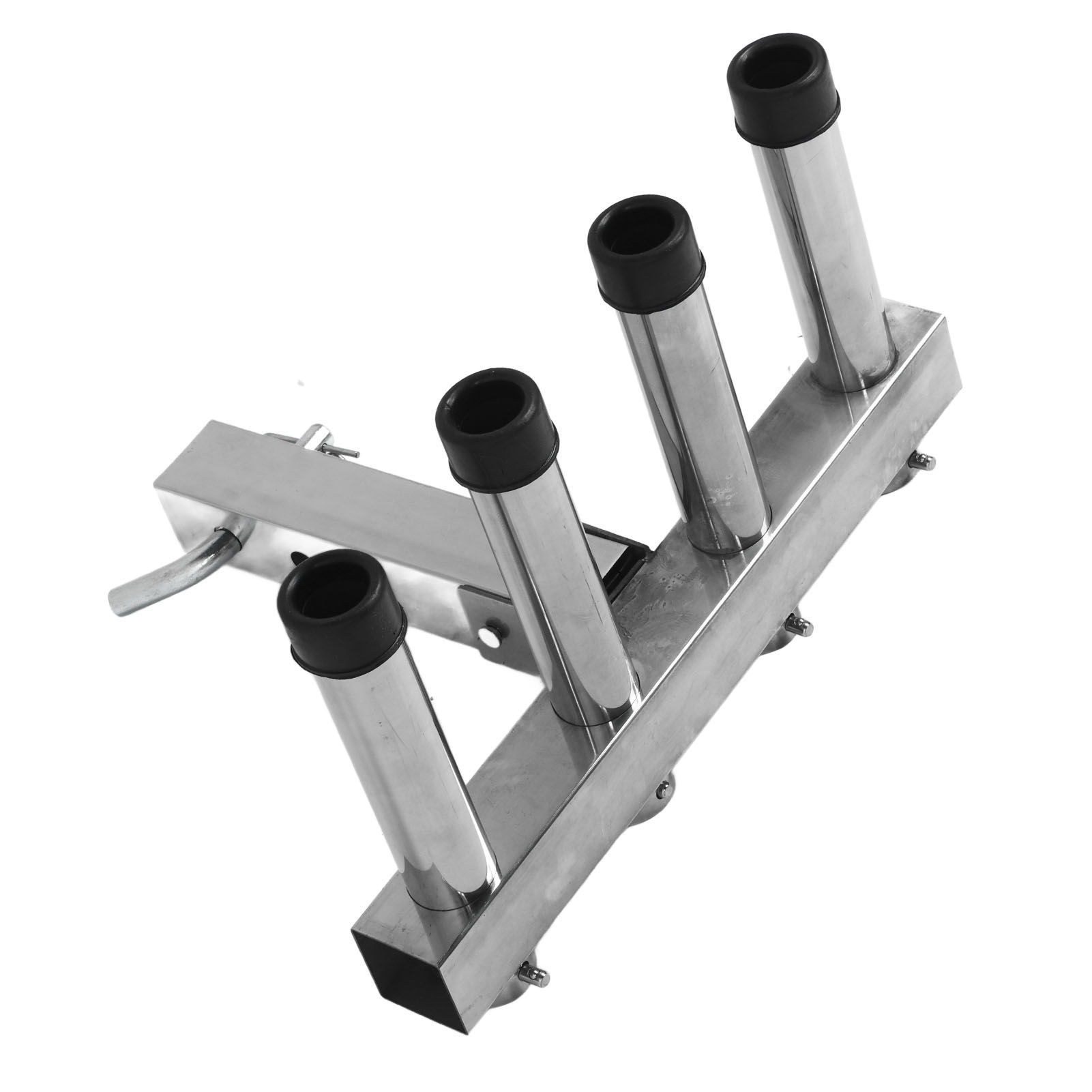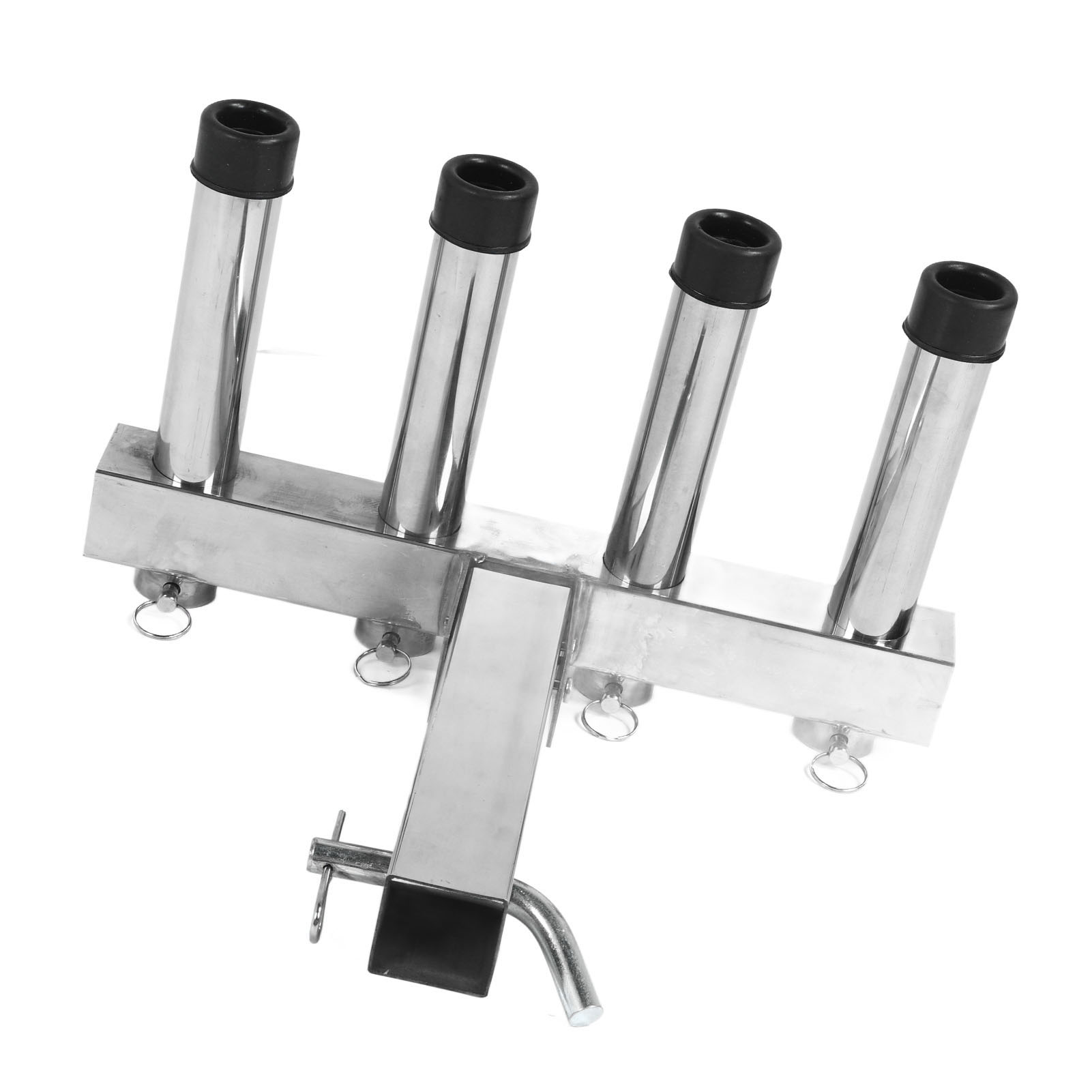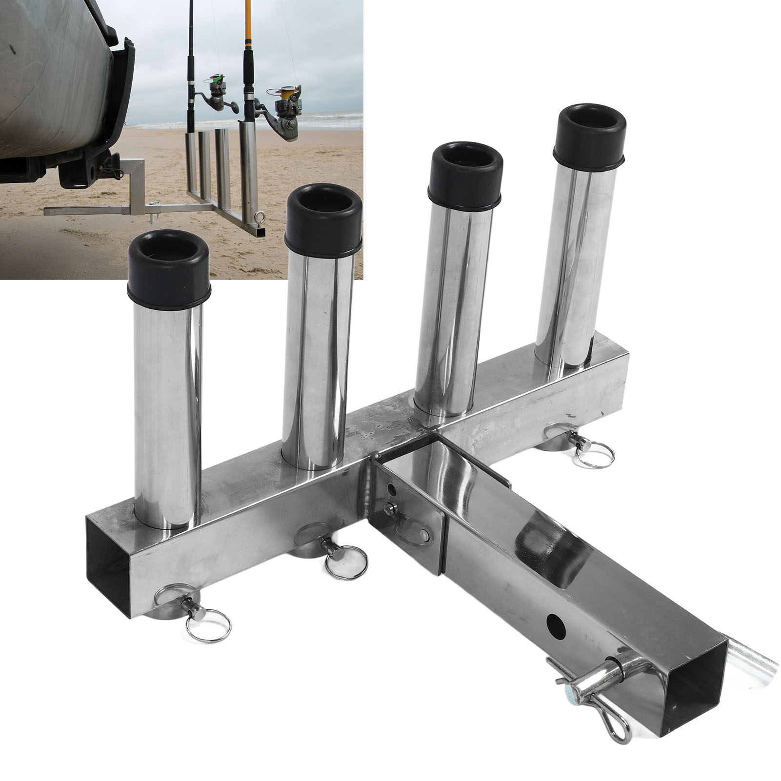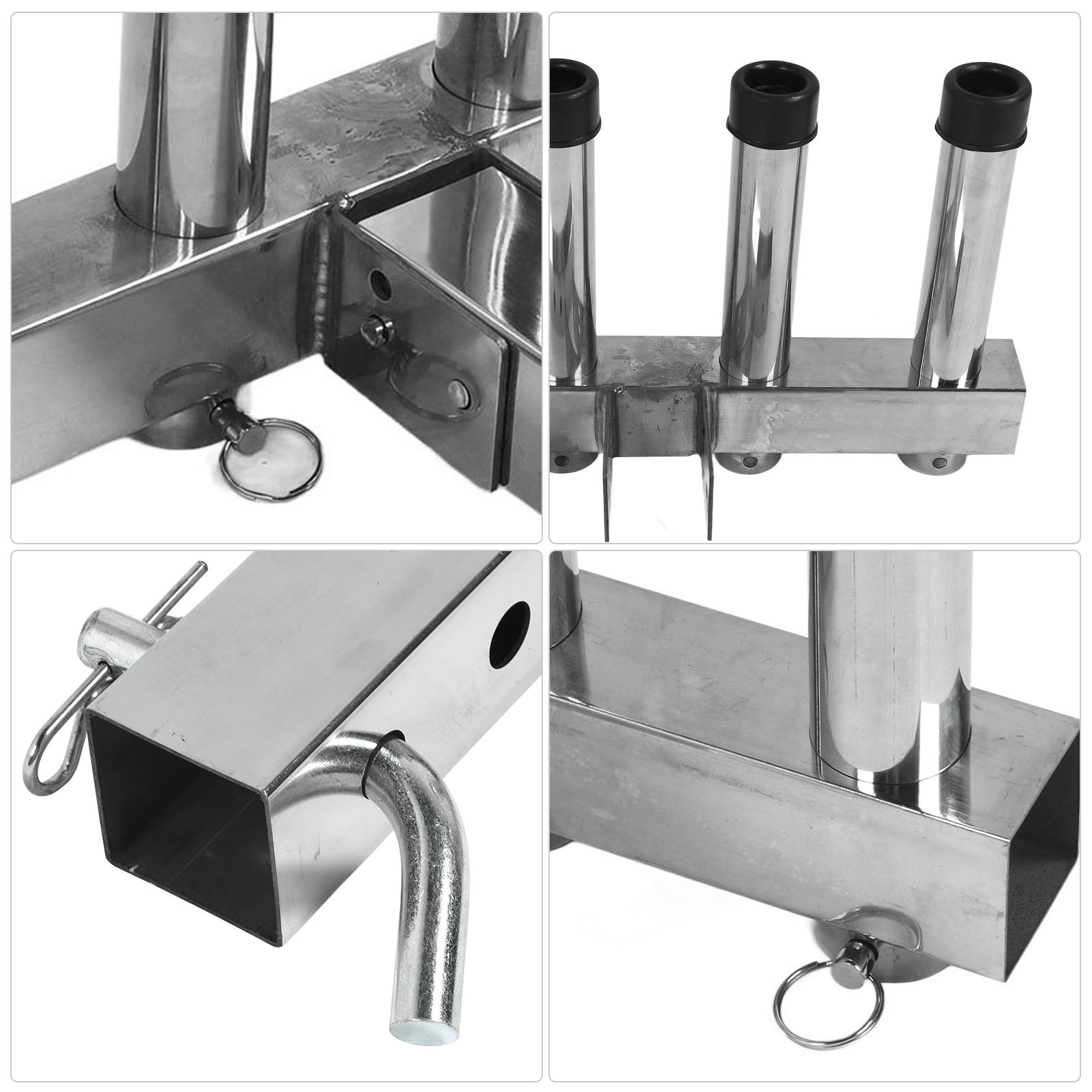 1、Suitable Scene: Adjustment fishing rod holder is suitable for 2 inch trailer connector with quick release pin and suitable for trucks and trailers ensuring a stable and secure connection during use. 2、Adjustable and Convenient Storage: The fishing rod holder features 4 adjustable pipes that allow you to easily organize and secure your fishing rods according to your needs, greatly reducing the hassle of carrying and storing them. 3、Space Saving: The fishing rod holder effectively utilizes space by securely holding multiple fishing rods in an organized manner, making it ideal for both storage and transportation purposes. 4、Durable Material: Made from high class stainless steel material, the fishing rod rack offers excellent durability. It can withstand any weather conditions and maintain a long lifespan. 5、Easy to Use: Truck adjustment fishing rod rack is designed to be easy to use, so you can use it easily, which is convenient and practical for you.