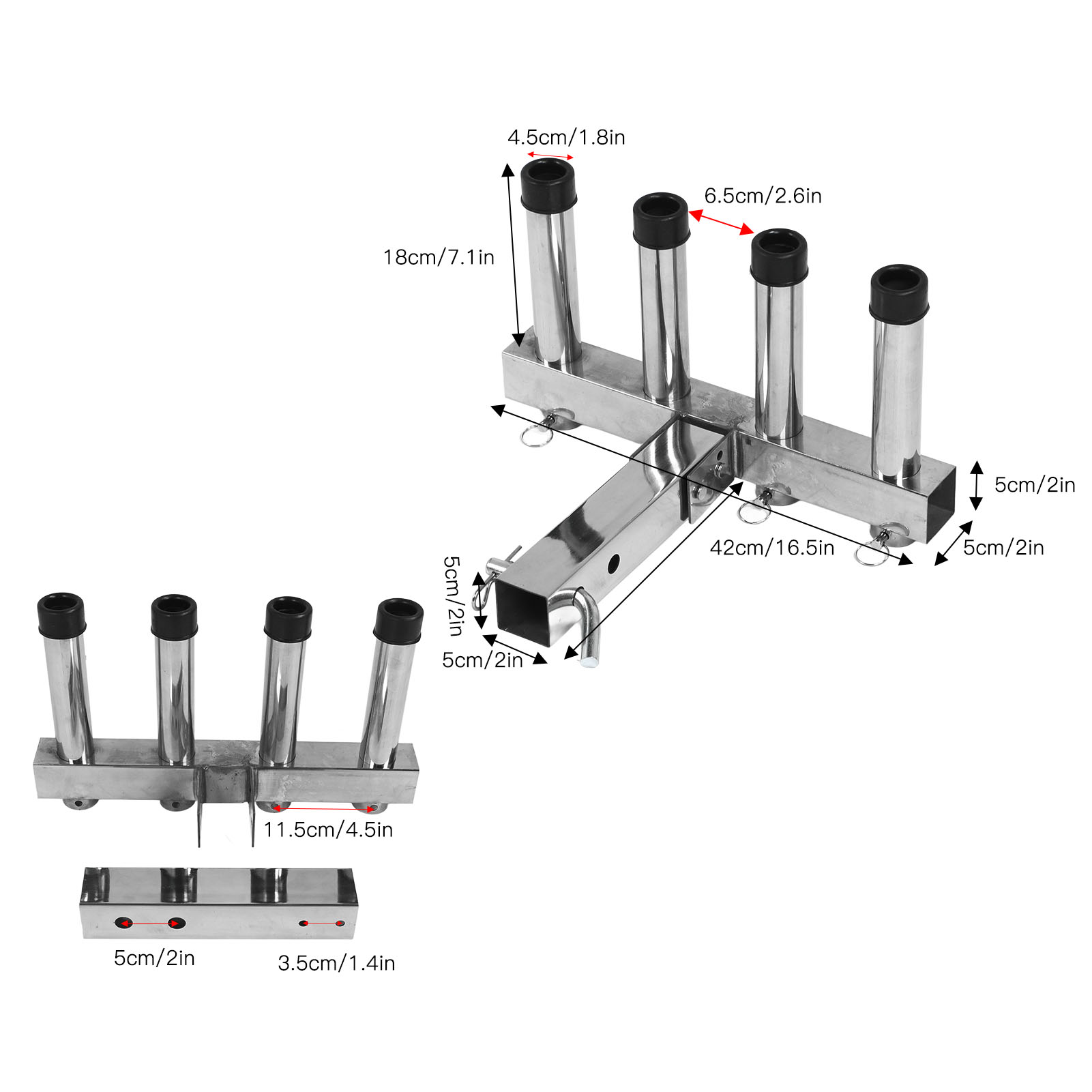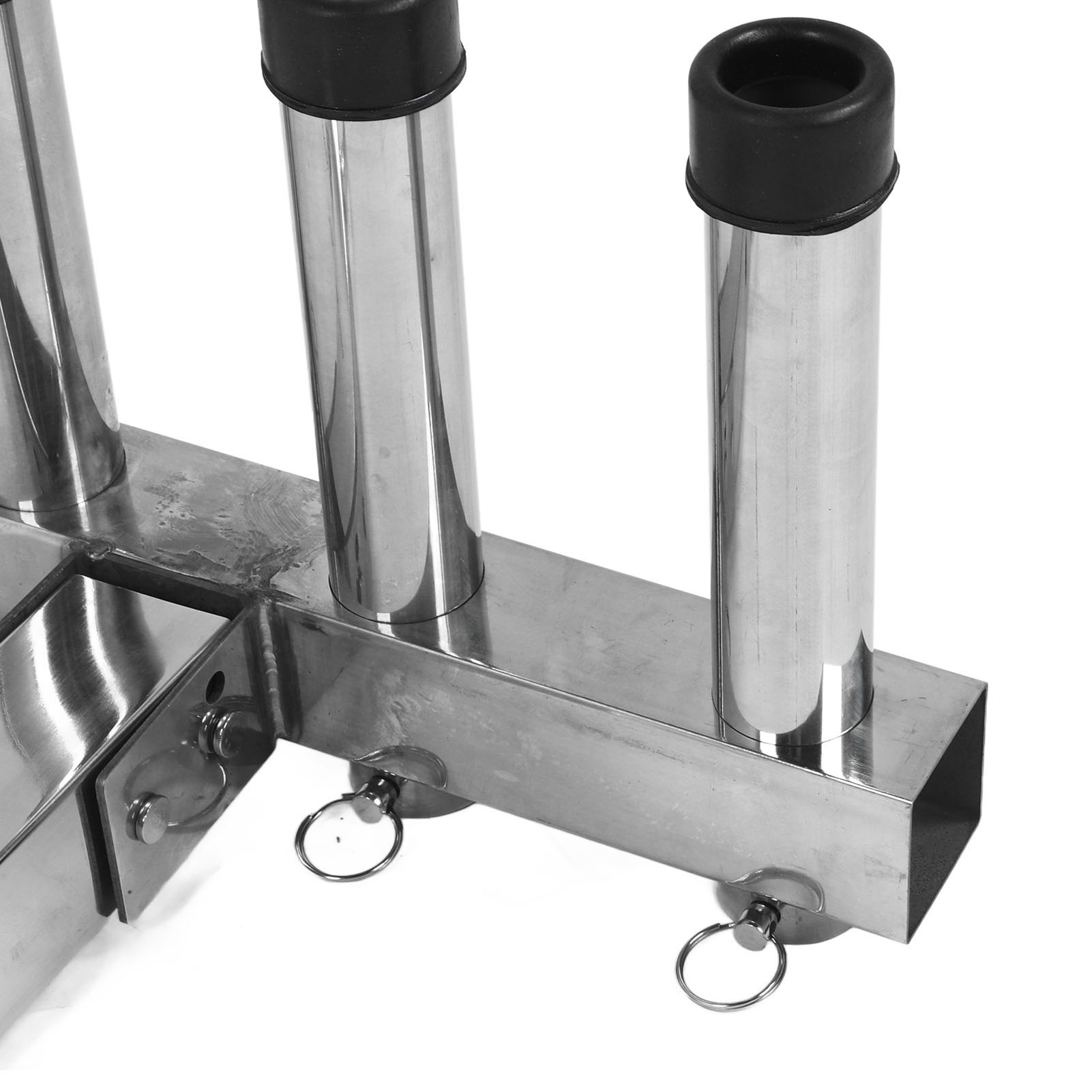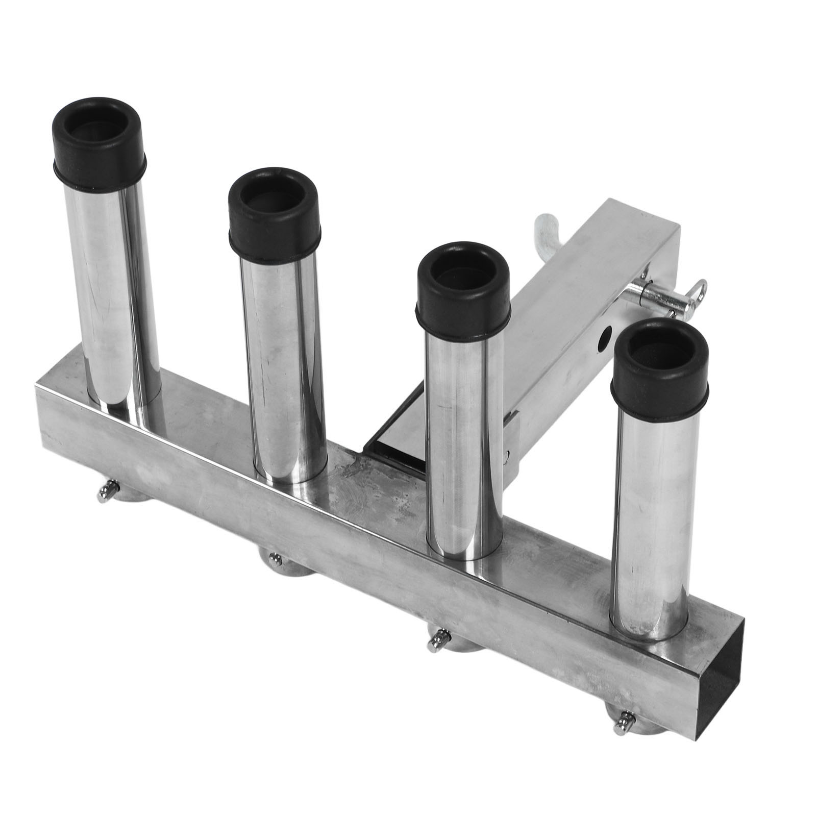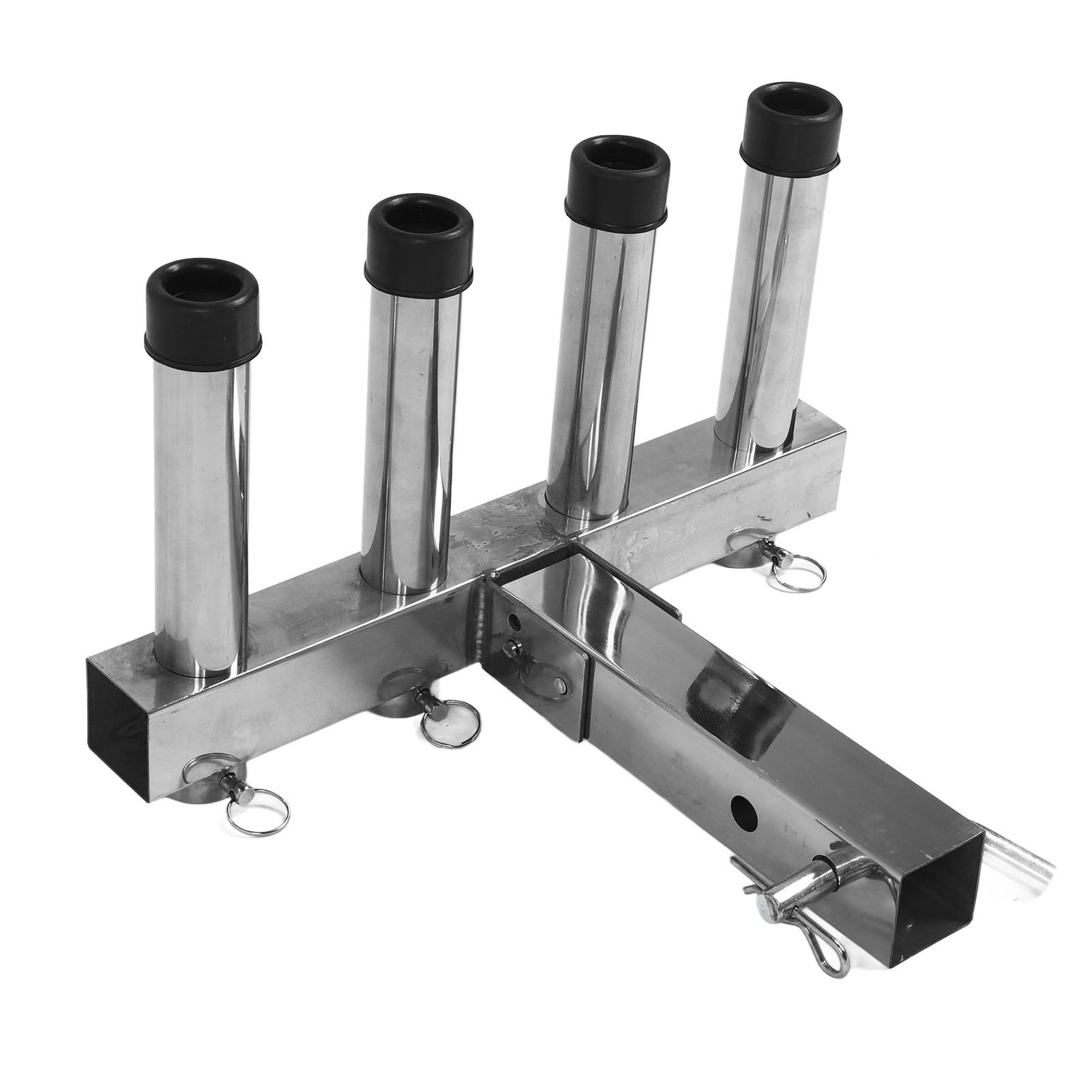 1、Suitable Scene: Adjustment fishing rod holder is suitable for 2 inch trailer connector with quick release pin and suitable for trucks and trailers ensuring a stable and secure connection during use. 2、Adjustable and Convenient Storage: The fishing rod holder features 4 adjustable pipes that allow you to easily organize and secure your fishing rods according to your needs, greatly reducing the hassle of carrying and storing them. 3、Space Saving: The fishing rod holder effectively utilizes space by securely holding multiple fishing rods in an organized manner, making it ideal for both storage and transportation purposes. 4、Durable Material: Made from high class stainless steel material, the fishing rod rack offers excellent durability. It can withstand any weather conditions and maintain a long lifespan. 5、Easy to Use: Truck adjustment fishing rod rack is designed to be easy to use, so you can use it easily, which is convenient and practical for you.