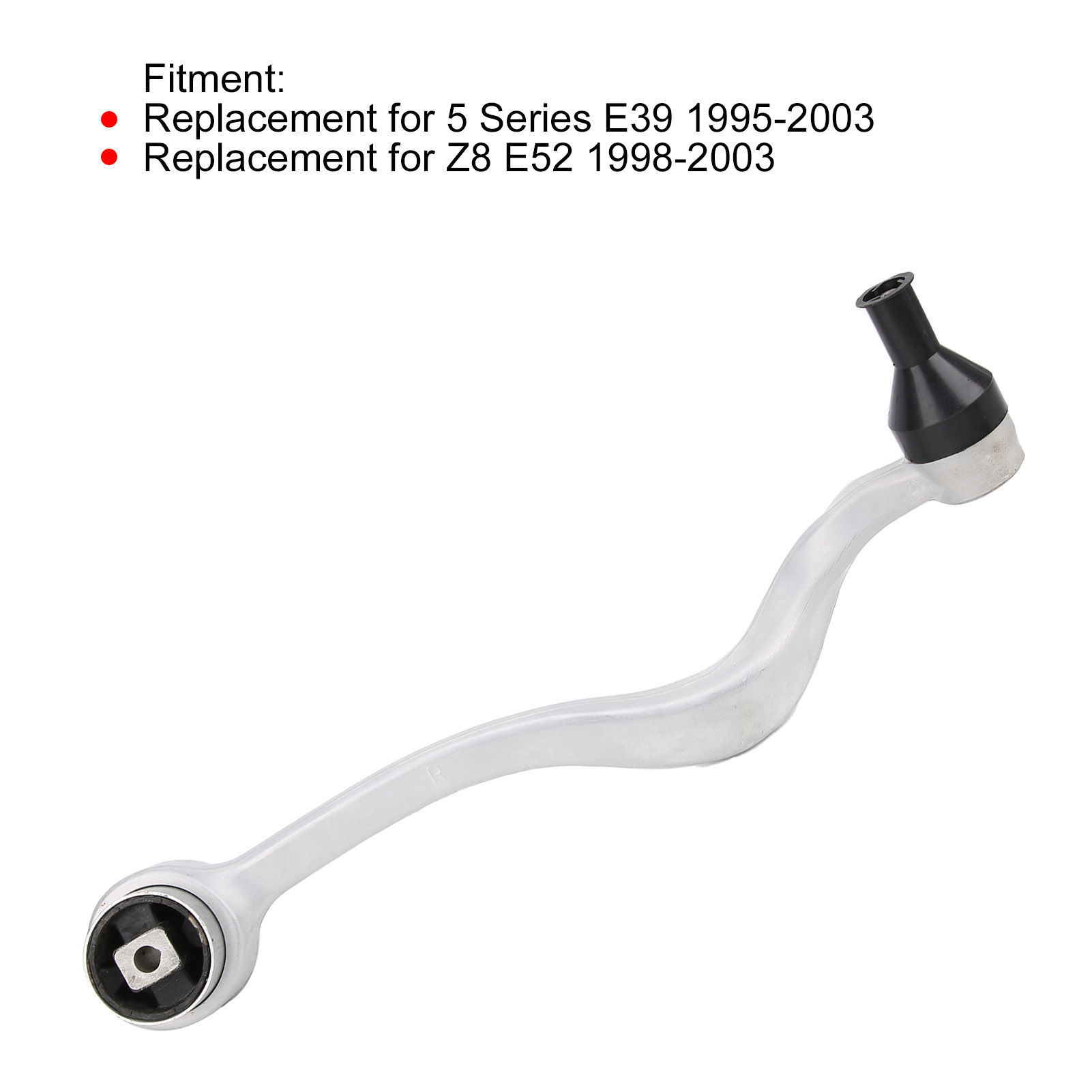 1、OEM numbers for reference: 31121141718, replacement for 5 Series E39 Z8 E52. 2、Used to enhance the ride comfort and handling stability of the car, strong practicality. 3、Made of premium alloy steel, it has strong rigidity, high strength and long service life. 4、The installation is simple and does not require complicated operations, convenient to use. 5、Original standard, direct replacement for the old or damaged front right lower control arm.
