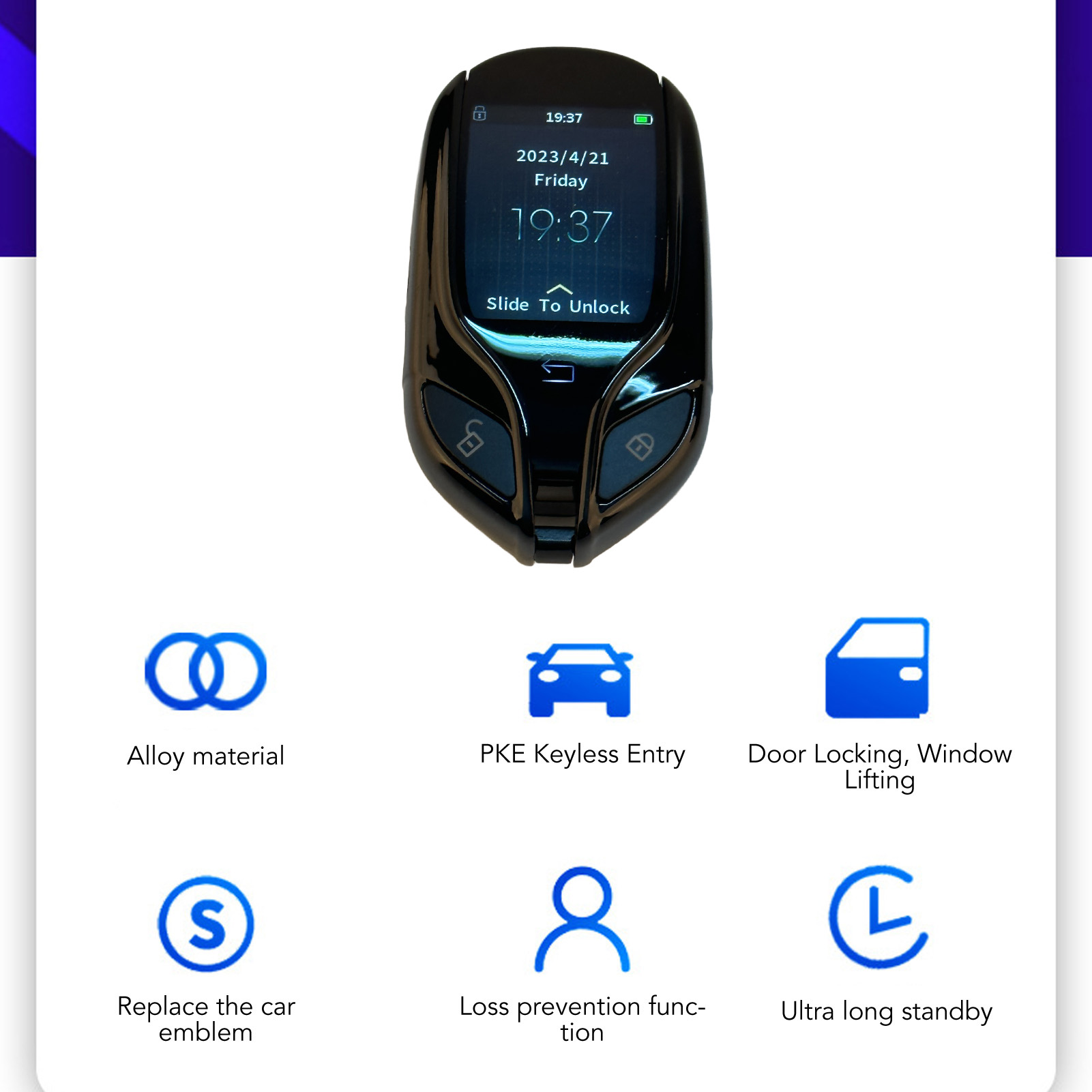 Functions: Touch sreen car control, keyless entry function, physical button remote control, phone number page.
