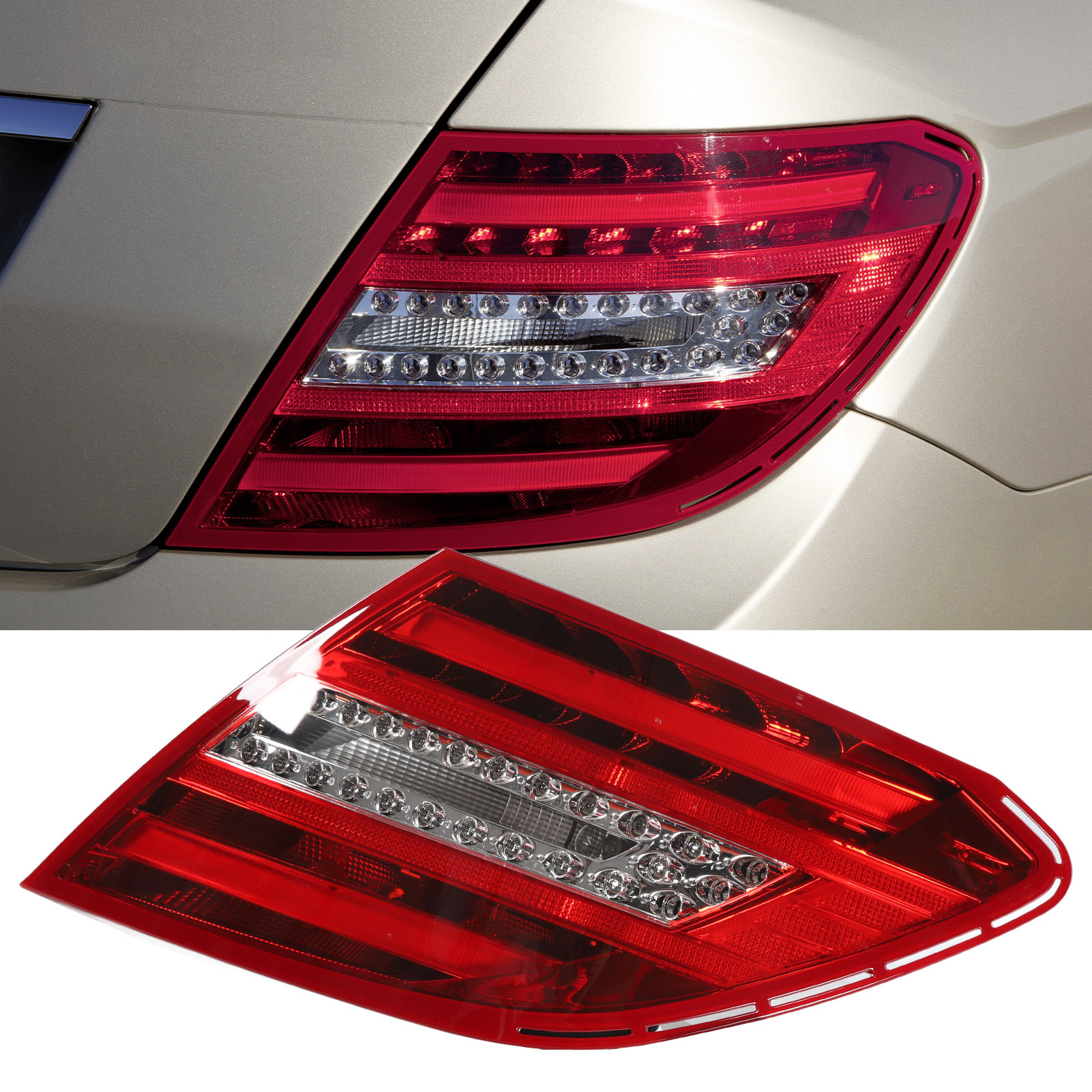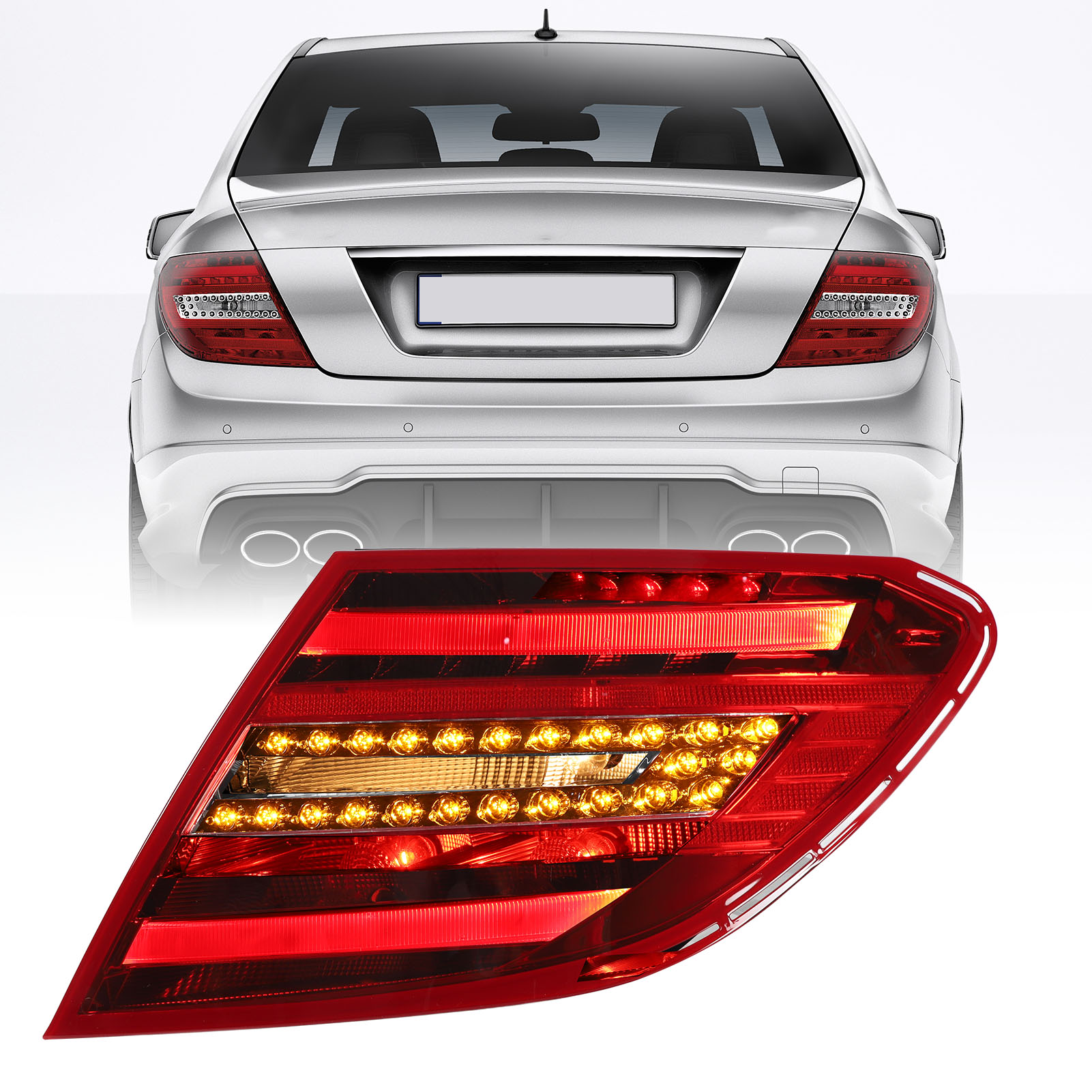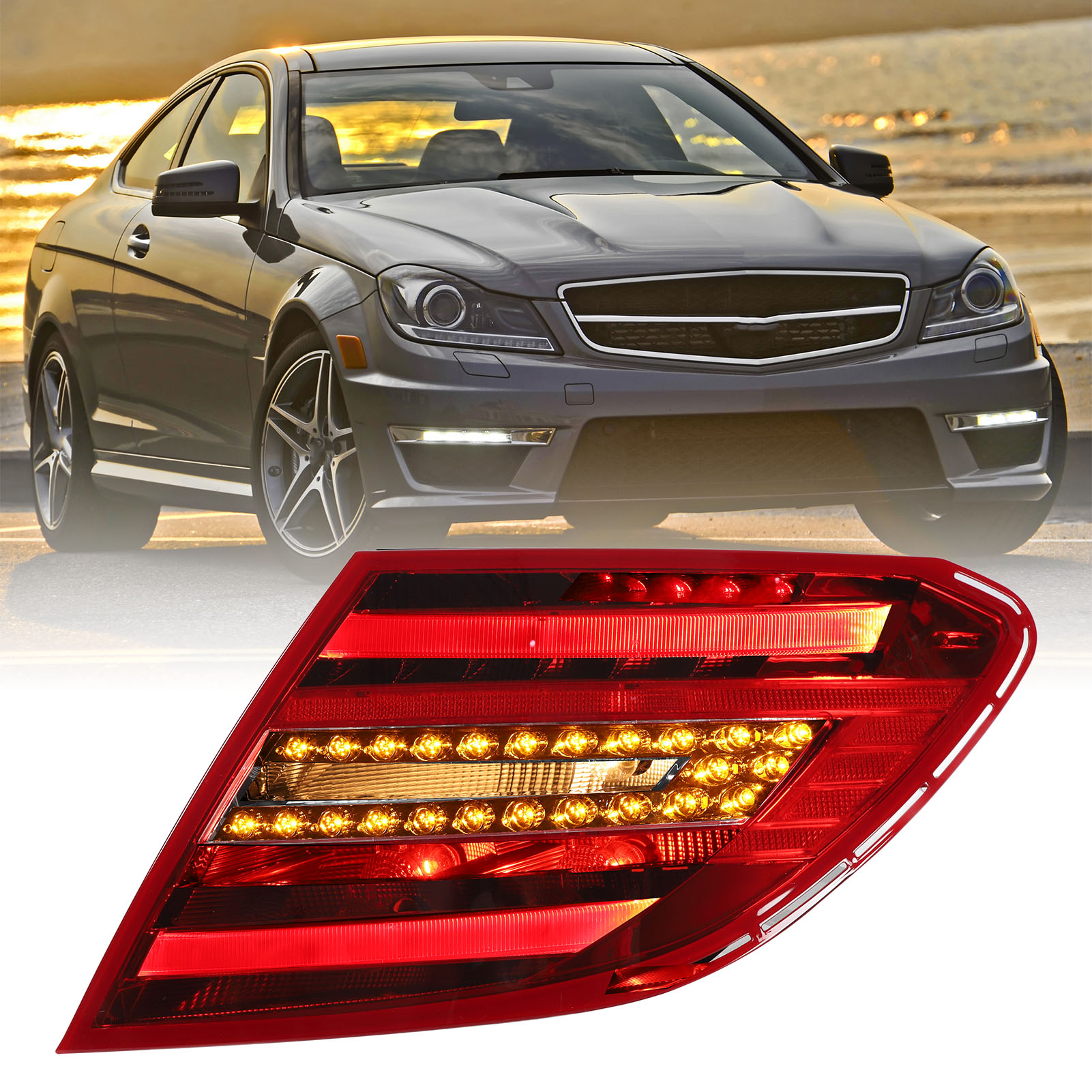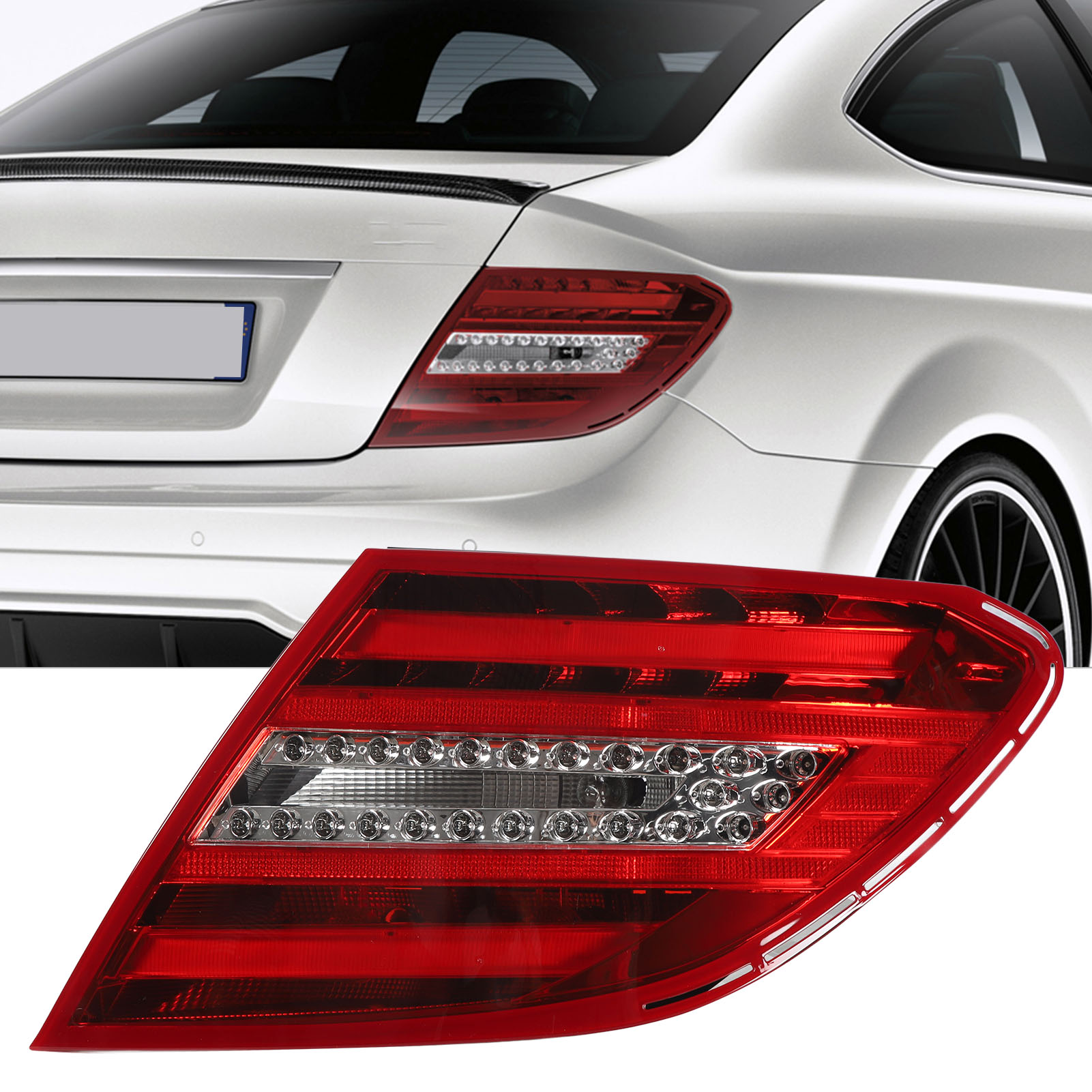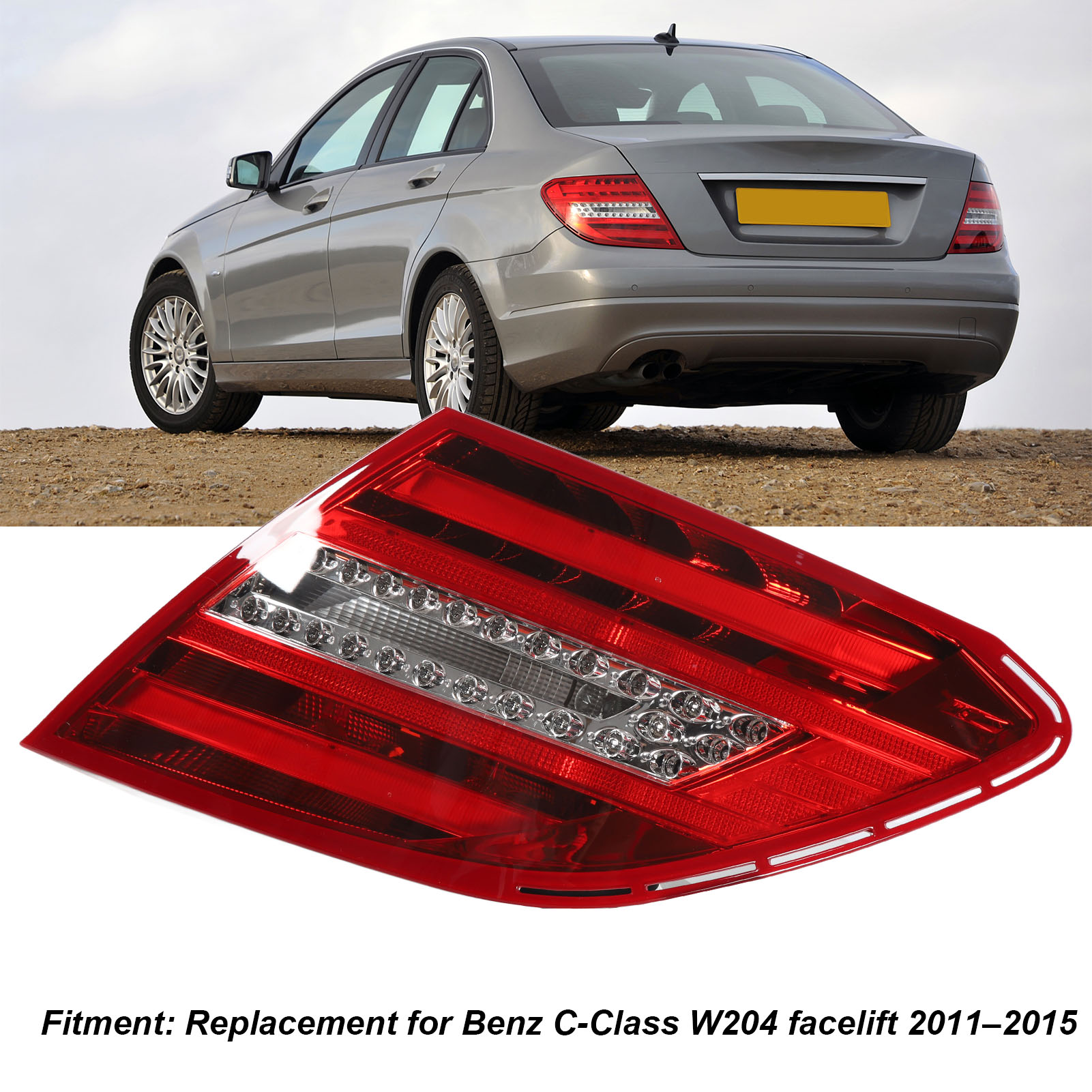 1、Vehicle Fitment: Replacement for Benz C‑Class W204 facelift 2011‑2015. Please confirm whether your model is applicable before buying. 2、Multi Functional: Rear brake light has multifunctions, including LED red running light, LED red brake light, LED amber turn signals, LED white reverse light. 3、Improved Visibility and Safety: The LED tail lights offers improved visibility, making your vehicle stand out on the road, increasing your driving safety. 4、Long Lifespan: Rear light lens is finely crafted, impact resistant, with superior heat dissipation to prolong the service life of the lamp. 5、Plug and Play: LED rear lamp is quick and easy to install, no wiring or coding, direct bolt on OE fitment or replacement for the stock unit.
