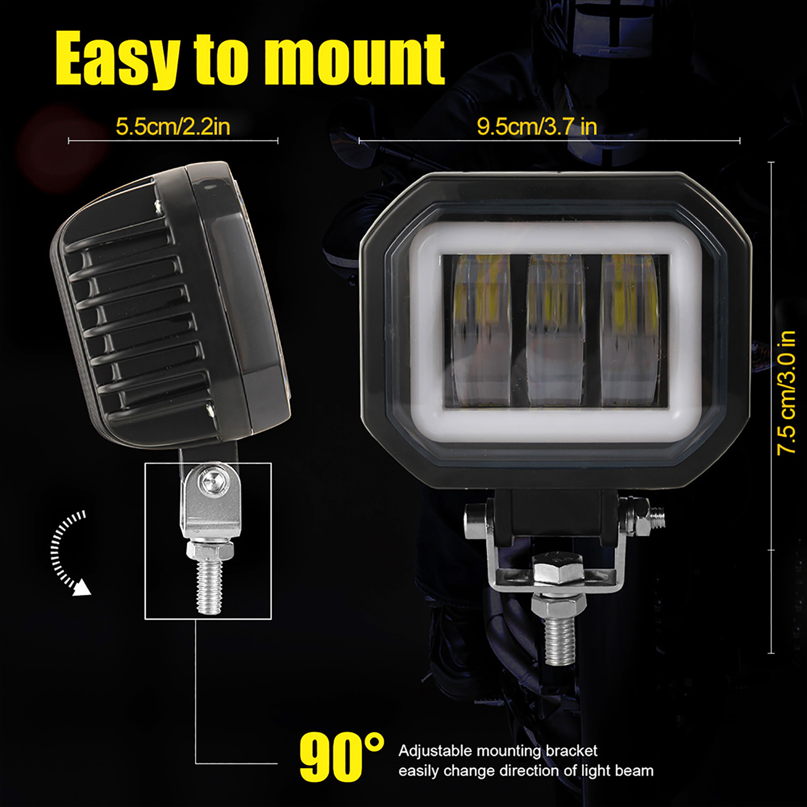 1、The LED light bar is equipped with 6pcs 5W high‑intensity LED chips to make your night brighter. 2、Bright light, color temperature 6000K white light, DRL angel eyes light with optional cold white light, amber light, red light, blue light, multi‑function (strong light is suitable for normal situations, angel eyes lights can be used as DRL, mixed light is more suitable for rainy and foggy days) make your driving more comfortable. 3、The die‑cast aluminum shell has high strength and durability. IP67 waterproof, dustproof, shockproof and corrosion resistant, suitable for harsh environments. 4、LED spotlights have a lifespan of 50,000 hours, and upgraded D‑type lenses help achieve the best light effect. 5、The aviation aluminum alloy shell and sharp aluminum fan design make the heat dissipation faster and more effective. 6、Using the supplied adjustable mounting accessories, the LED spotlight can be adjusted to approximately 90 degrees. This makes it easy to change the direction of the beam. After installation, the bulb can slide. 7、Various uses, compatible with almost all motorcycles, 4x4, trucks, tractors, trailers, pickup trucks, cars, motorcycles, SUVs, ATVs and boats. 8、In addition, there are many indoor and outdoor uses: garden lighting, backyard lighting, reversing lights, off‑road lighting, reversing lights, architectural lighting and so on.