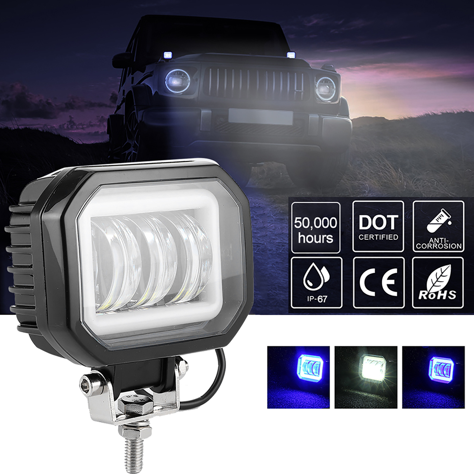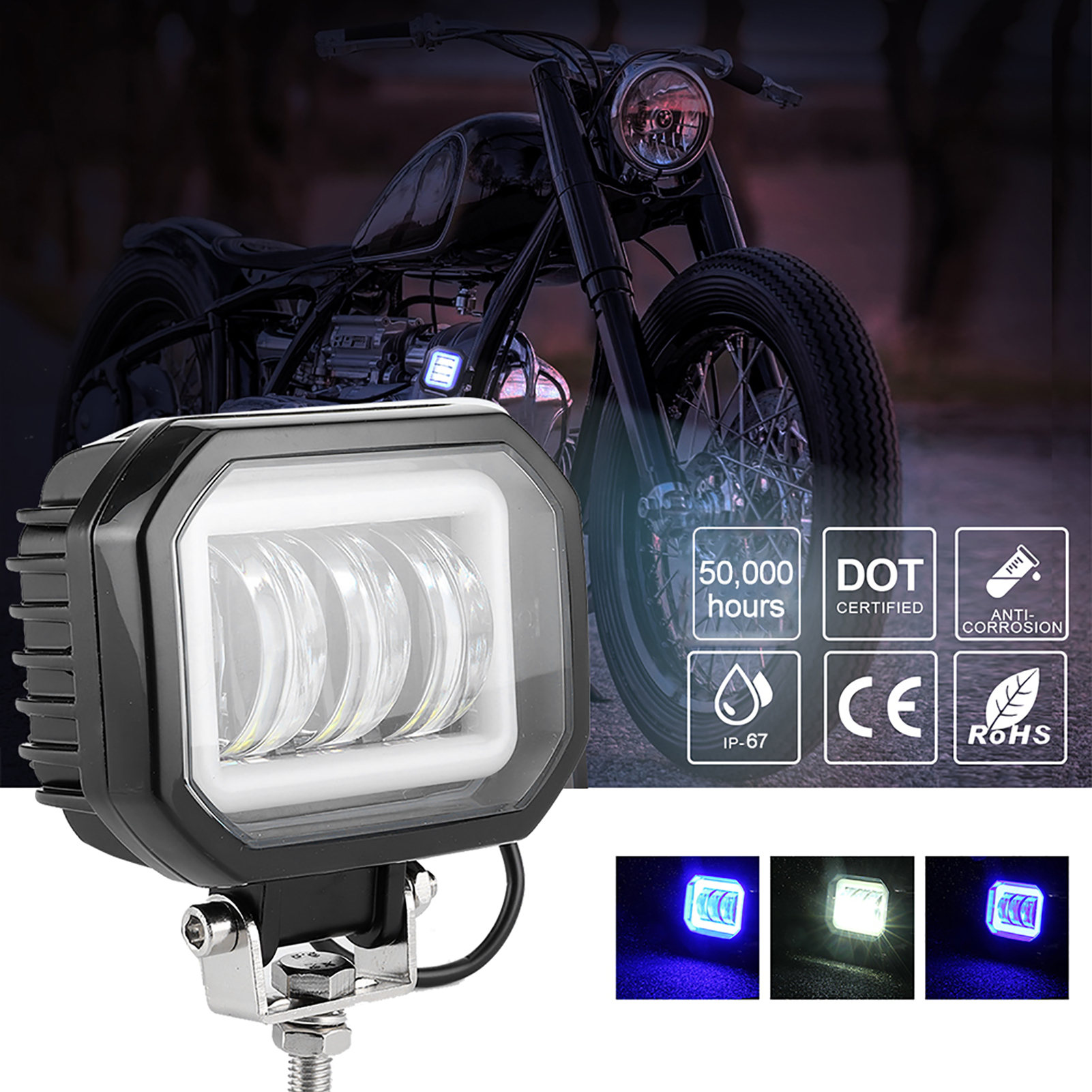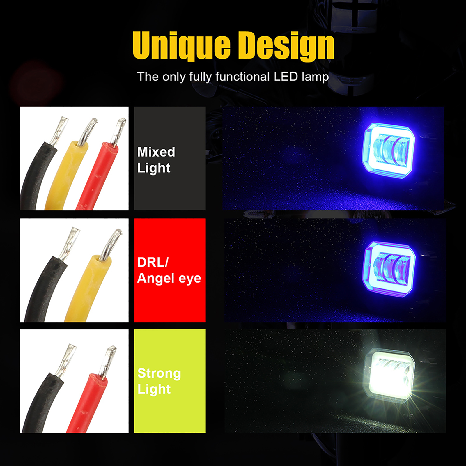 Mode: Glare/DRL (Angel Eyes)/Mixed Light (Better Penetration in Rain and Fog Day)