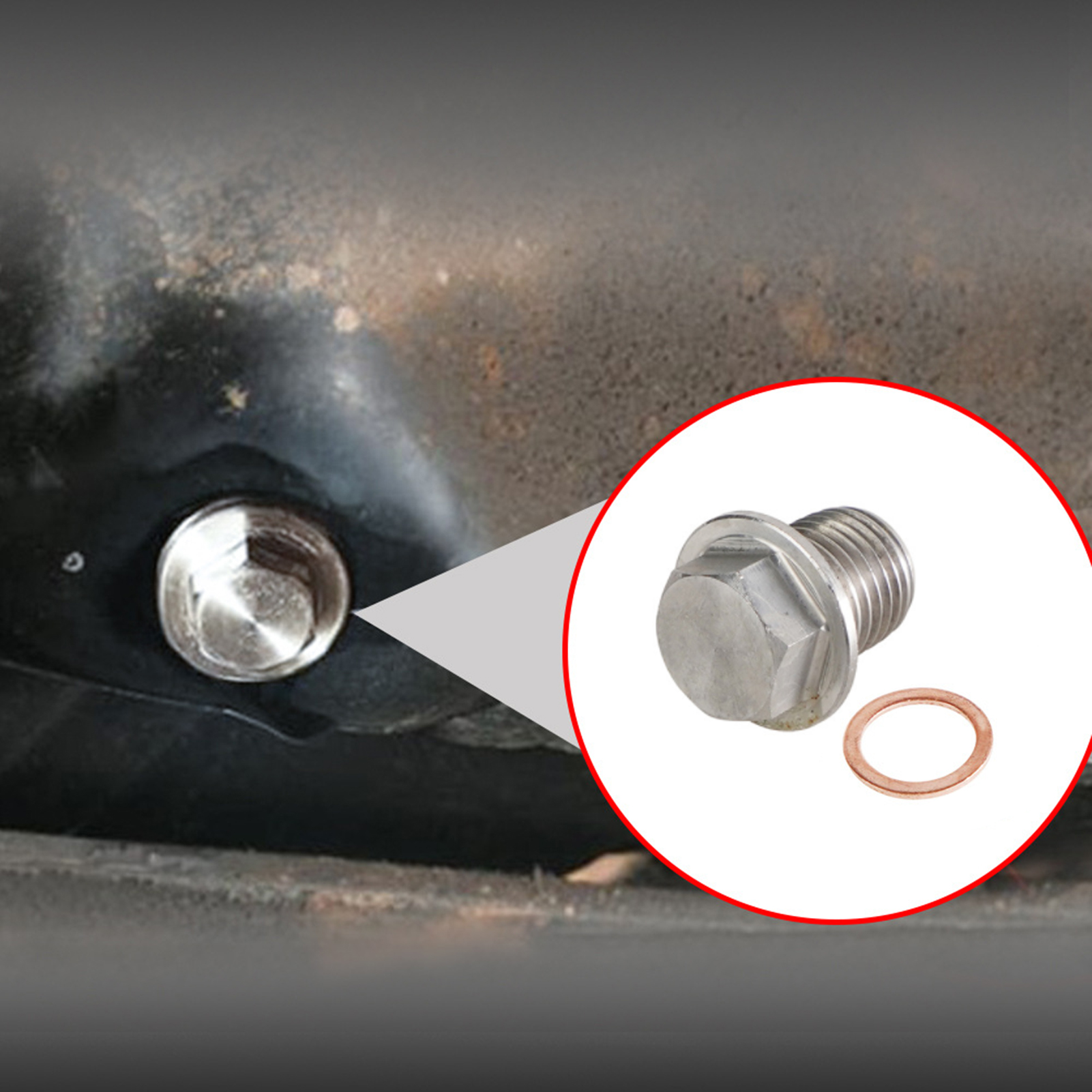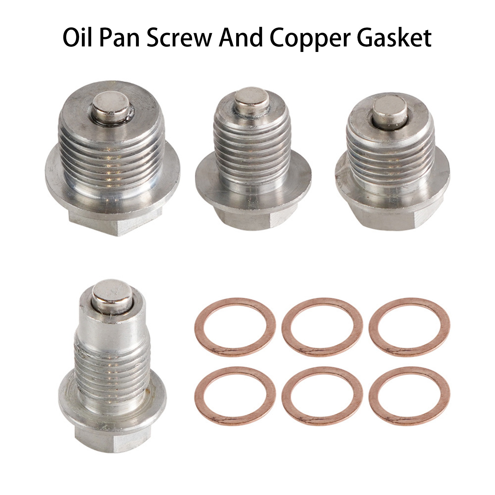 1、Made of premium quality stainless steel material, solid and durable to last years. 2、The magnetic drain plug absorbs metal shavings from the oil to reduce wear on the engine\u0027s moving parts. 3、The copper gasket provides good sealing performance. 4、Easy installation. Our drain plug will be installed in the position of your current drain plug. Wipe the metal debris off the magnet while changing the oil. 5、The package includes 1 pcs oil pan screw and 1 pcs copper gasket.